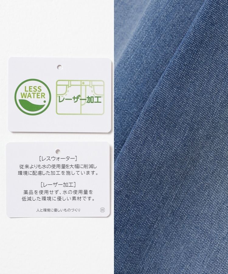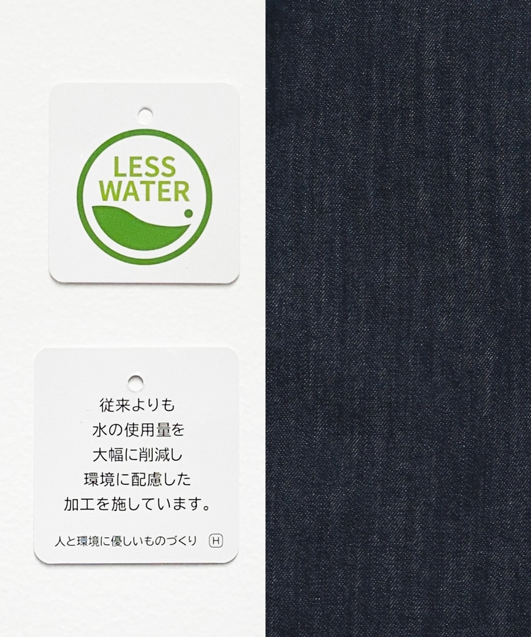 水の使用量を削減し環境に配慮して作られた、綿混デニム素材。