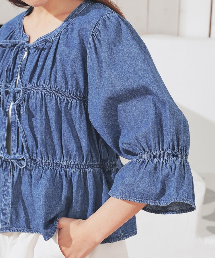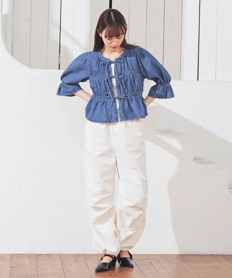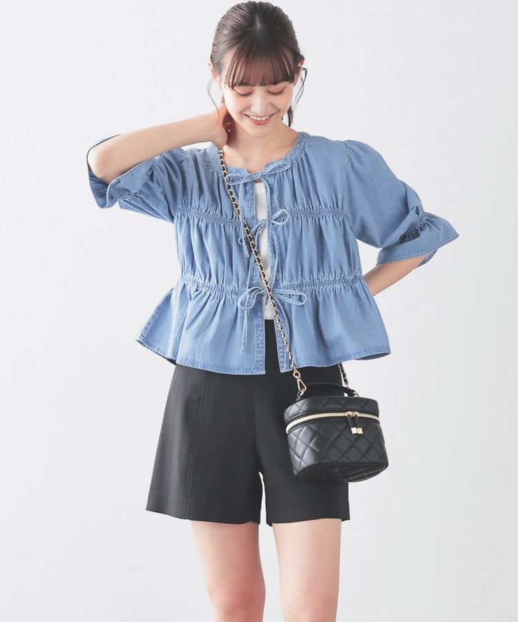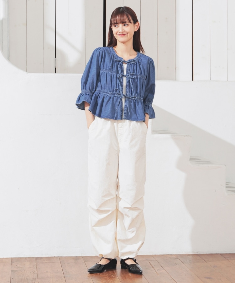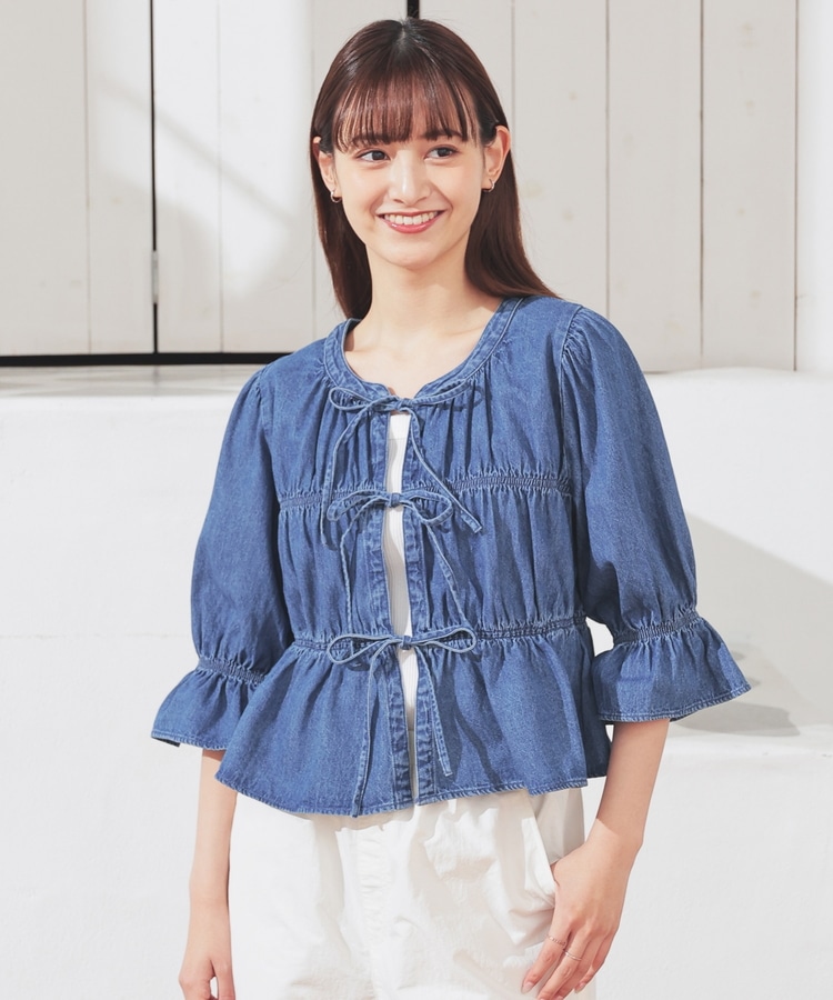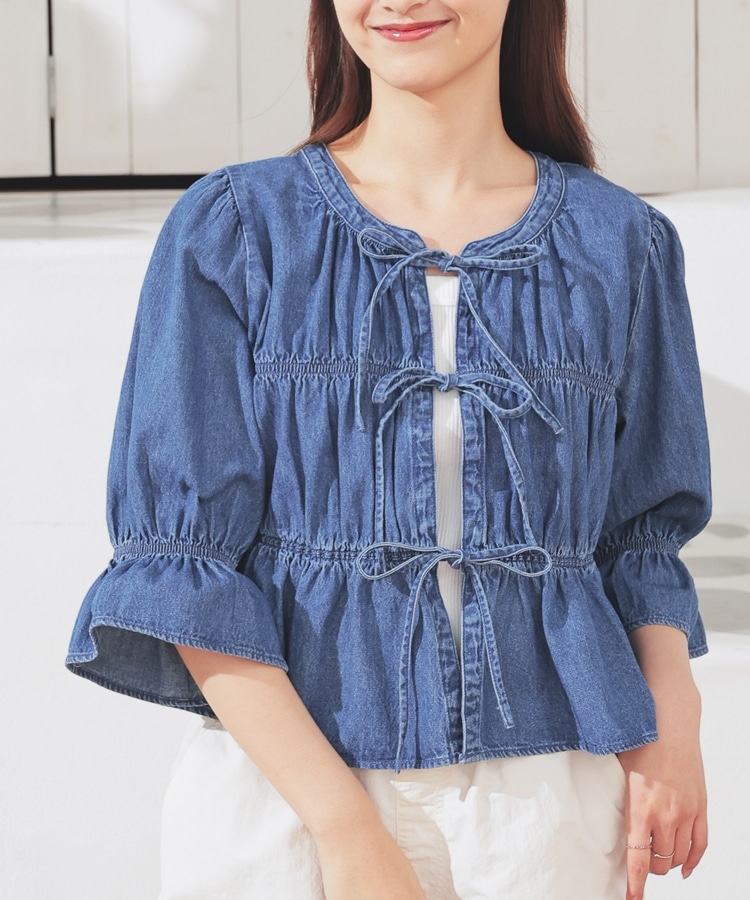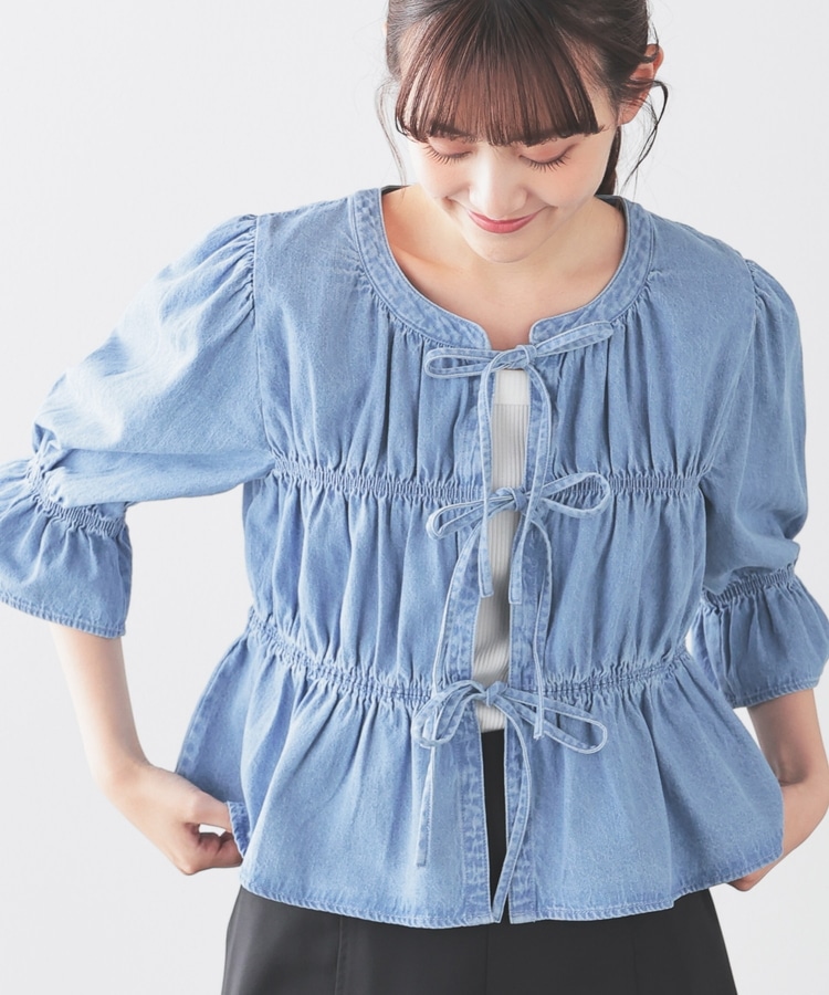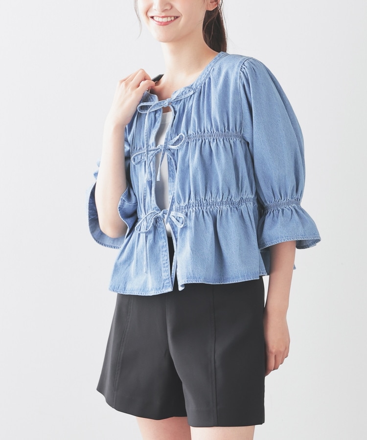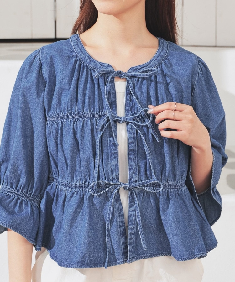 リボンを結んでトップスとしてはもちろん、前を開けて羽織としても活躍。