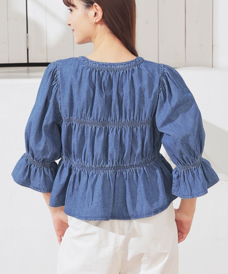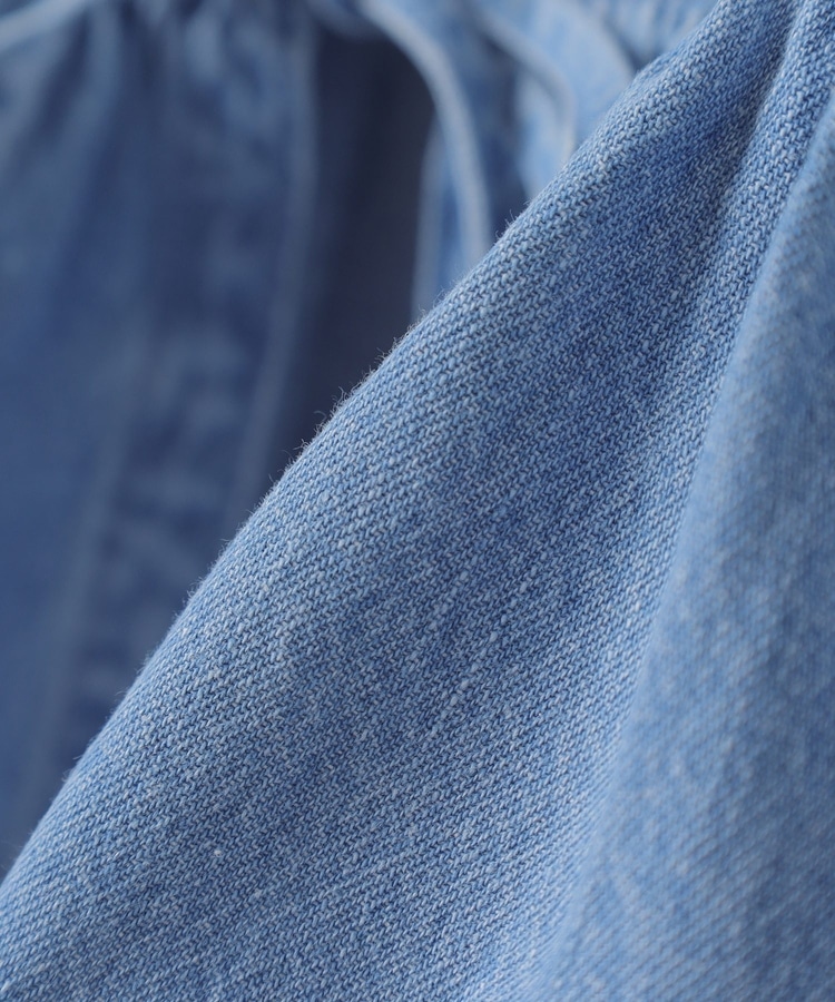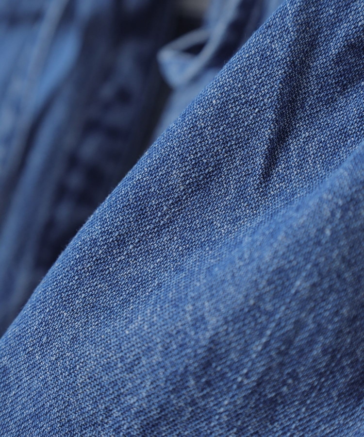 水の使用量を削減し環境に配慮して作られた、薄手で軽くロングシーズン使える綿100%のデニム素材。