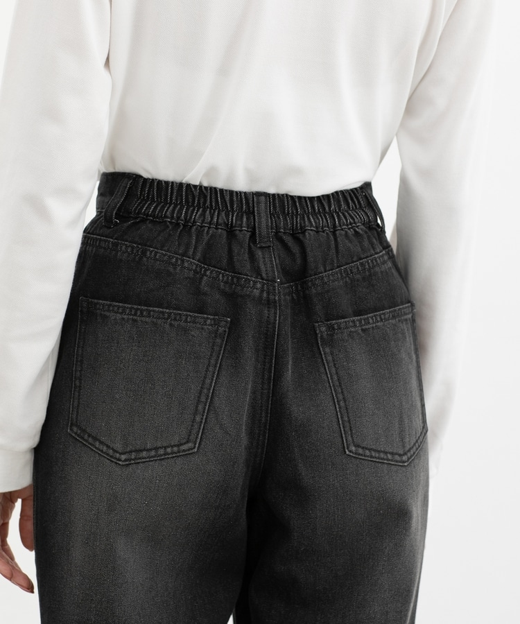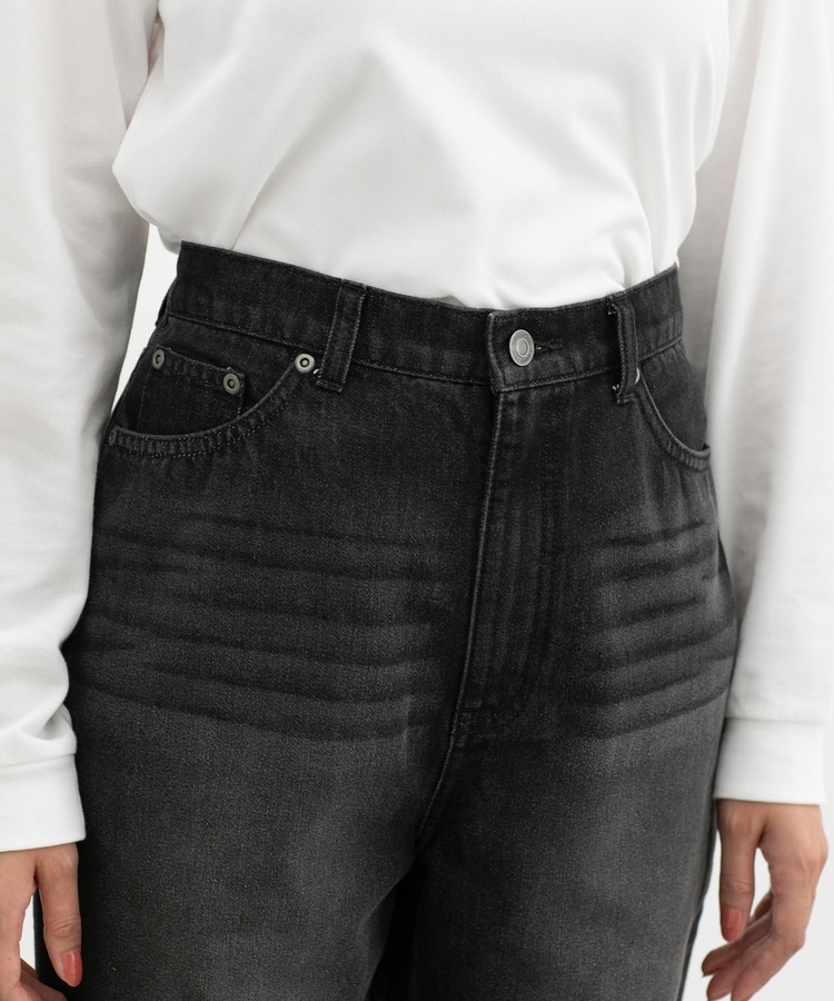 水の使用量を削減し、レーザーによるダメージ加工で薬品を使用せず、環境に配慮して作られた、柔らかめで洗濯後も乾きやすい綿混デニム素材。