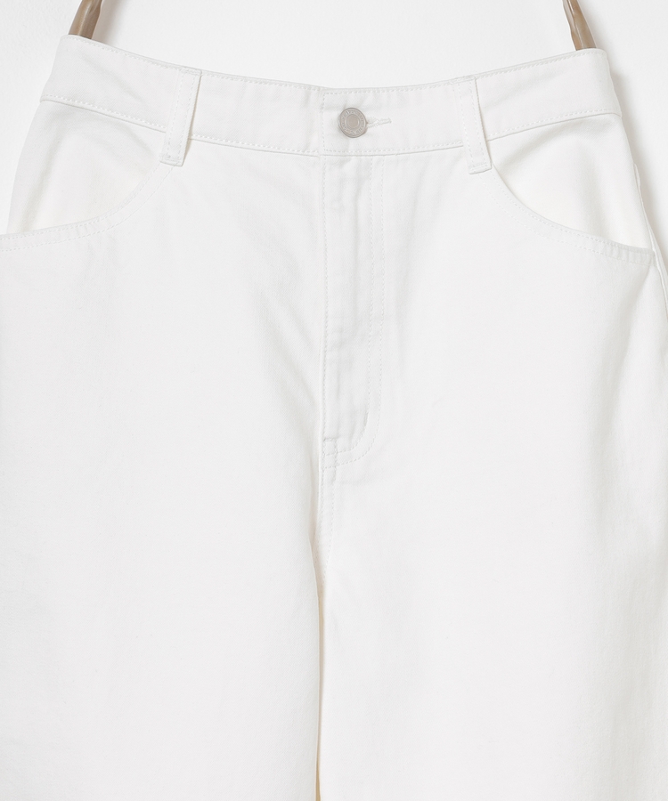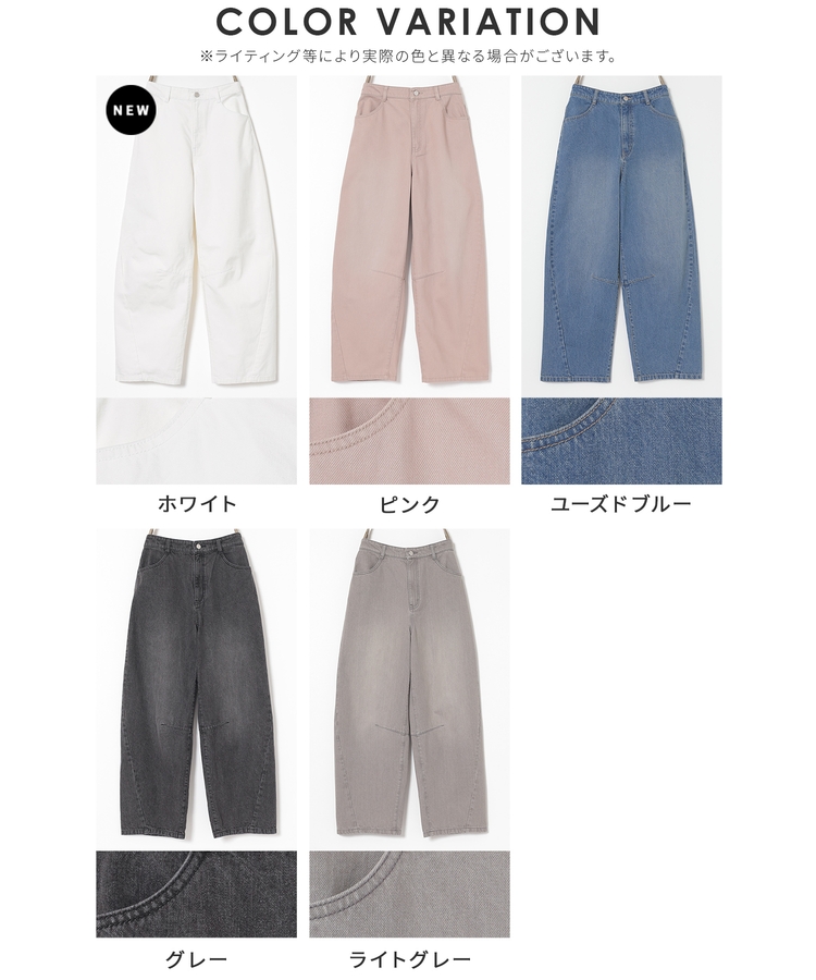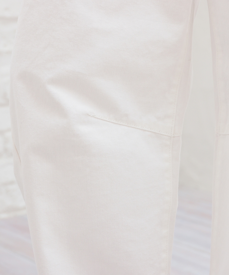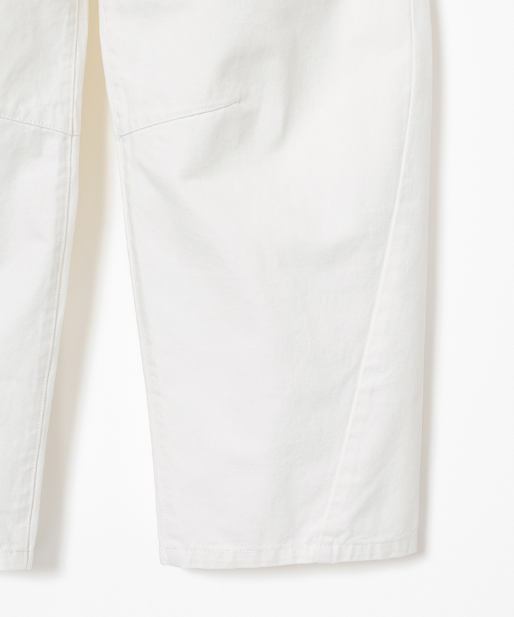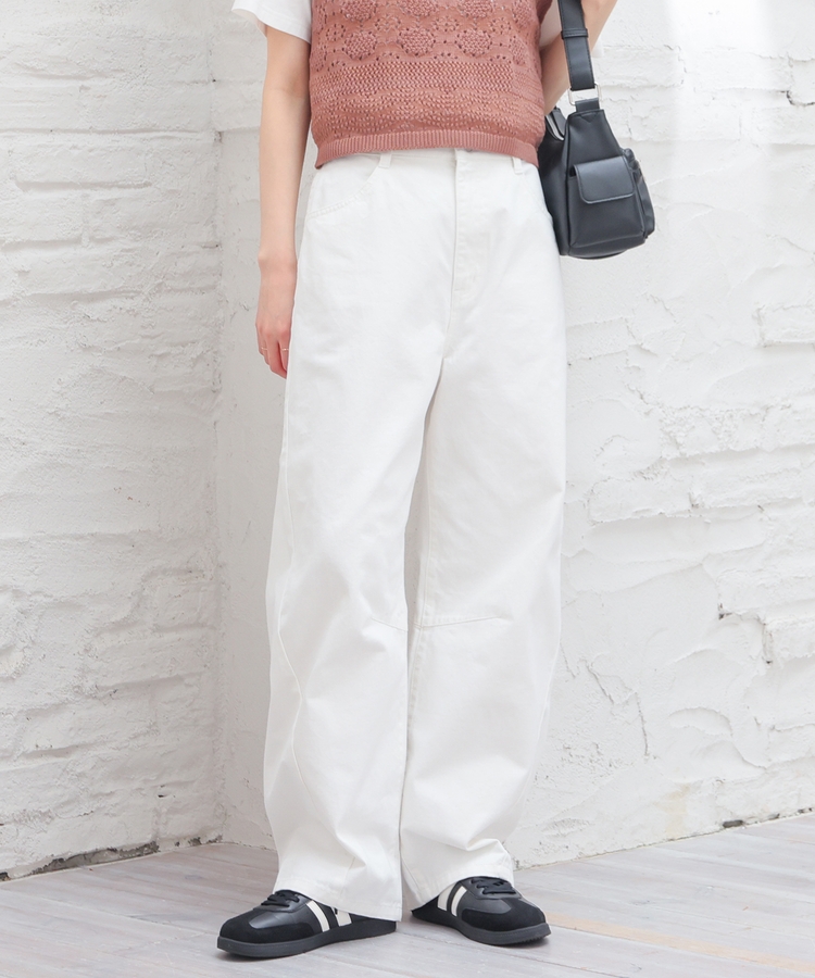 ひざの内側にダーツを入れた、ゆったりしたもも周りから裾に向かって緩くカーブするシルエットのトレンドライクなデザイン。