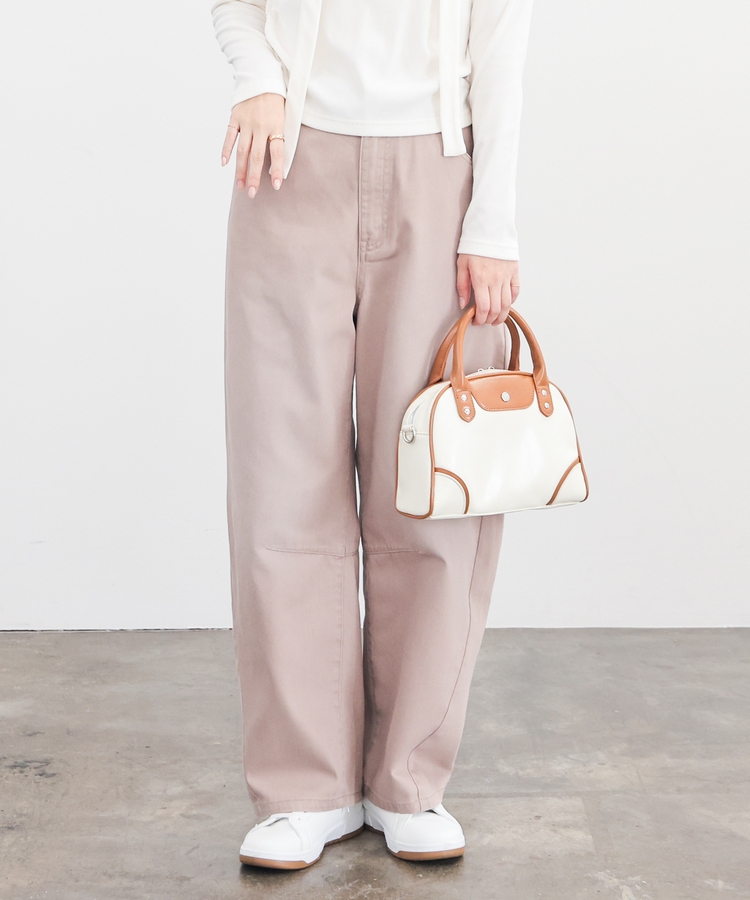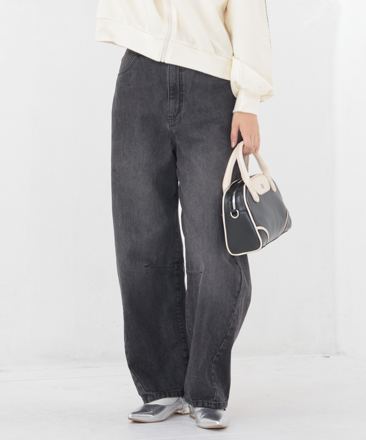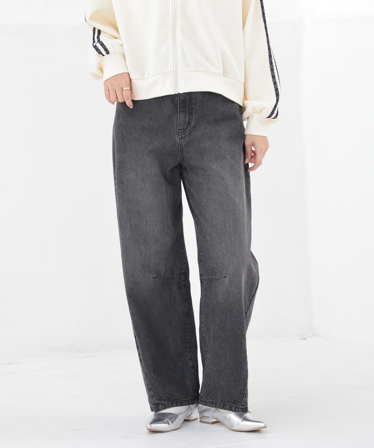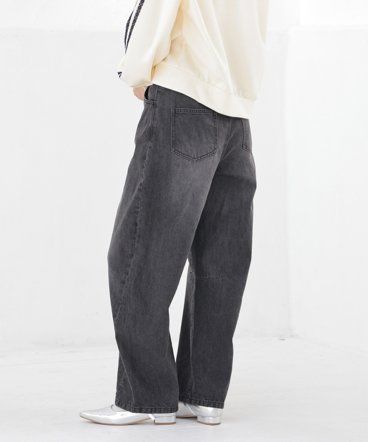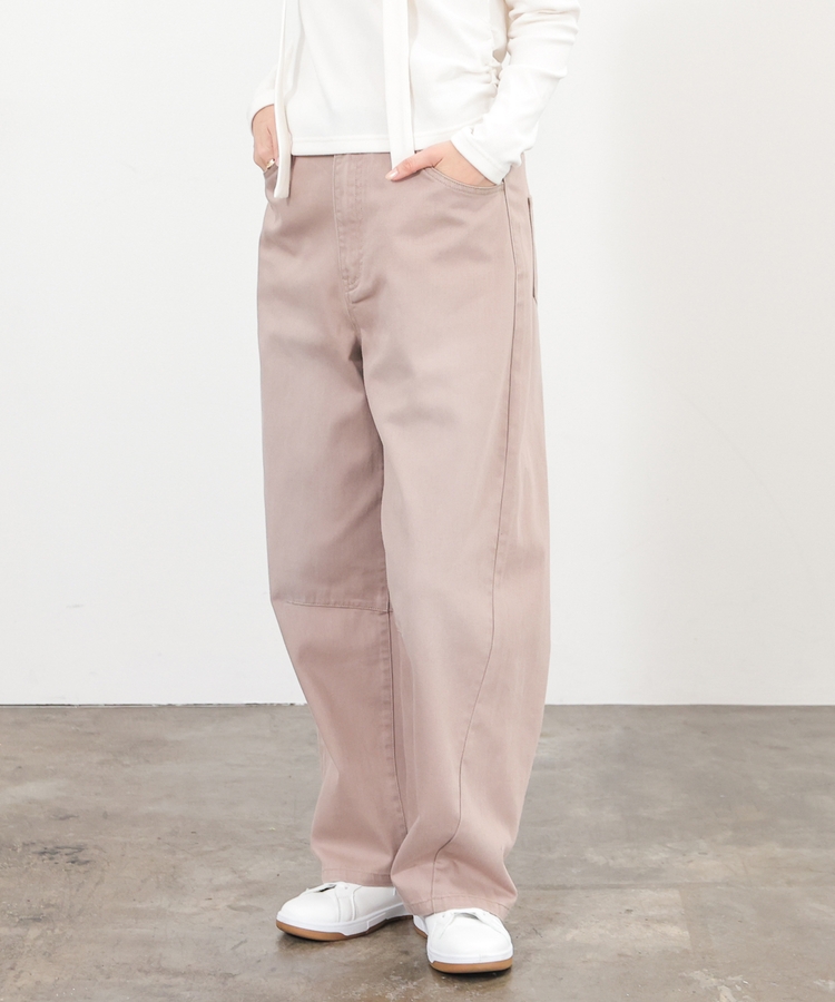 ひざの内側にダーツを入れた、ゆったりしたもも周りから裾に向かって緩くカーブするシルエットのトレンドライクなデザイン。
