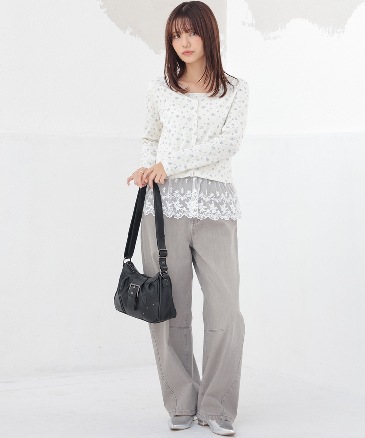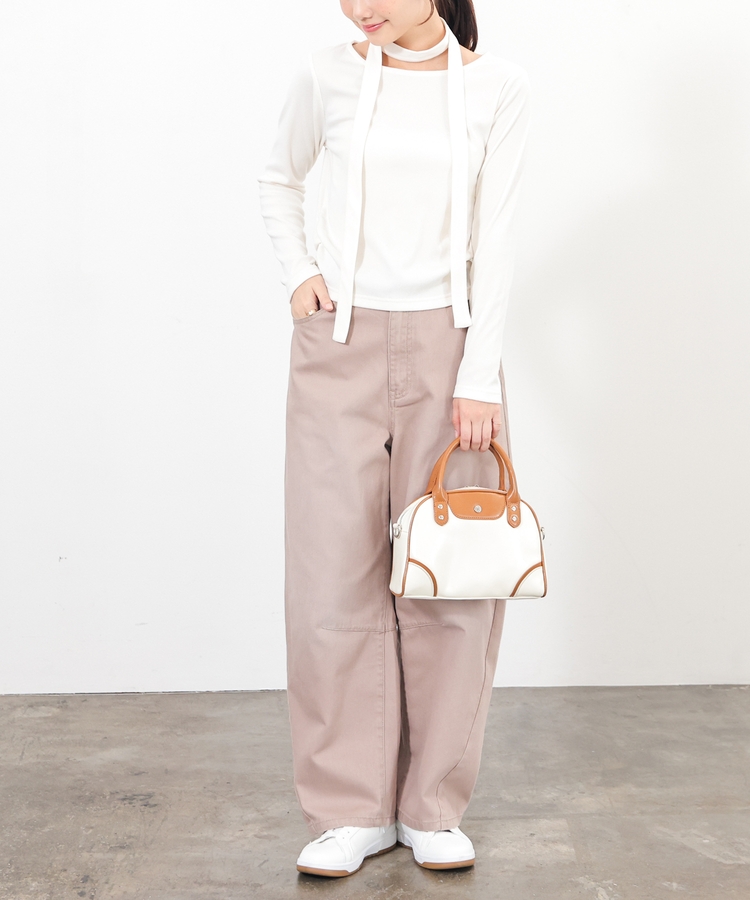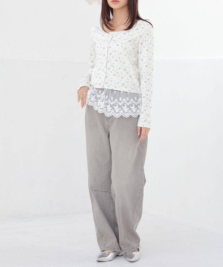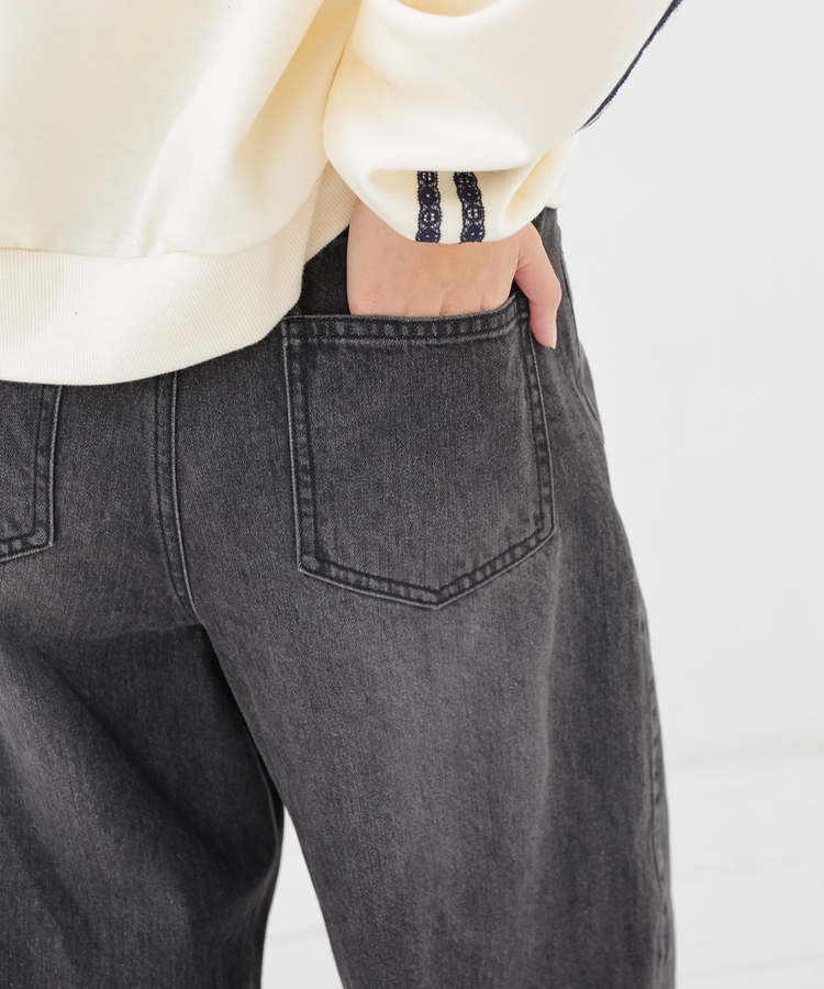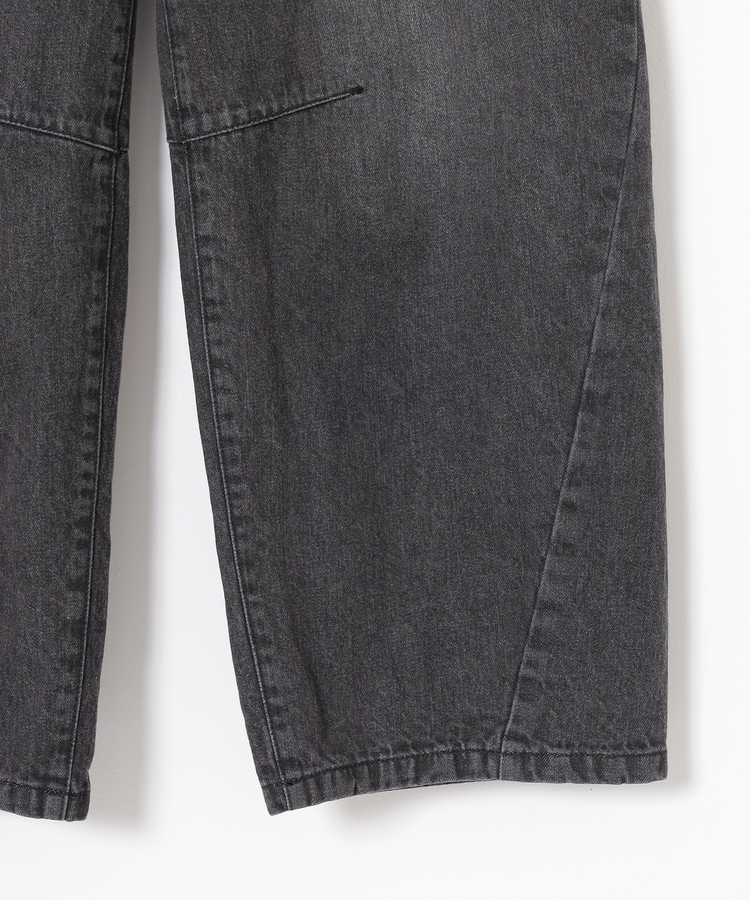 ひざの内側にダーツを入れた、ゆったりしたもも周りから裾に向かって緩くカーブするシルエットのトレンドライクなデザイン。