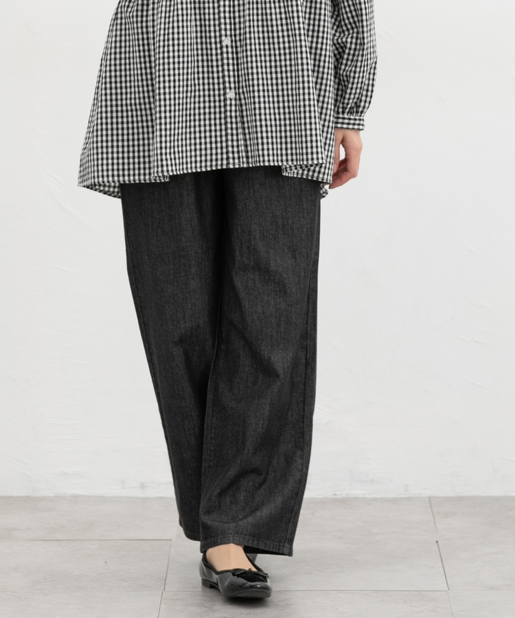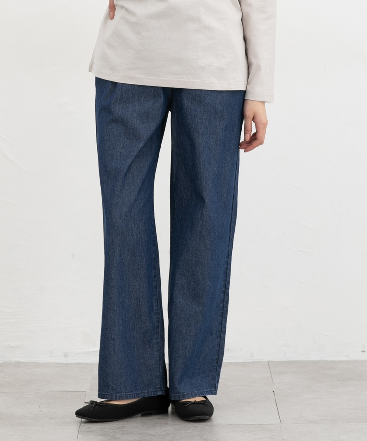 脚のラインを拾わないゆったりシルエットながら、すらっとストレートでスタイルアップも叶うデザインの股下66cmタイプ。