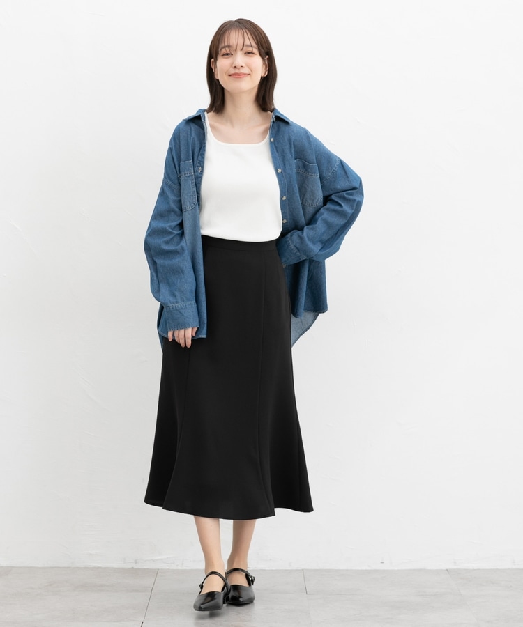 広がりすぎない、程よいフレア感のマーメイドシルエット。