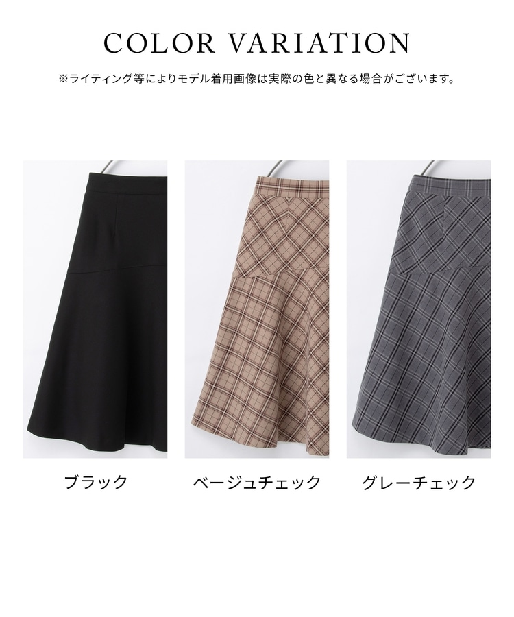 広がりすぎない、程よいフレアシルエットの上品なひざ丈デザイン。