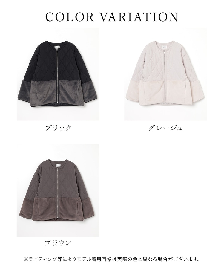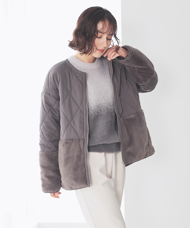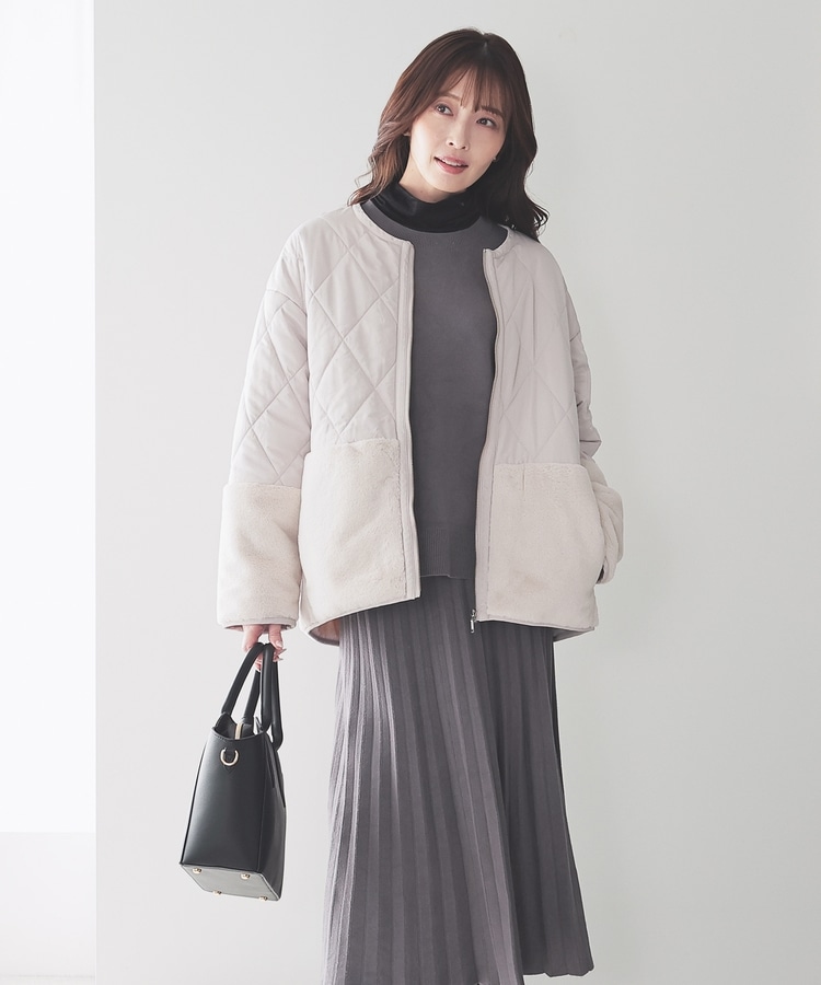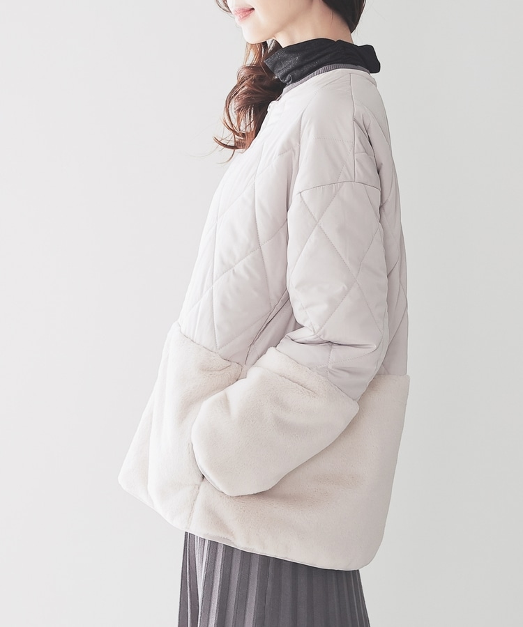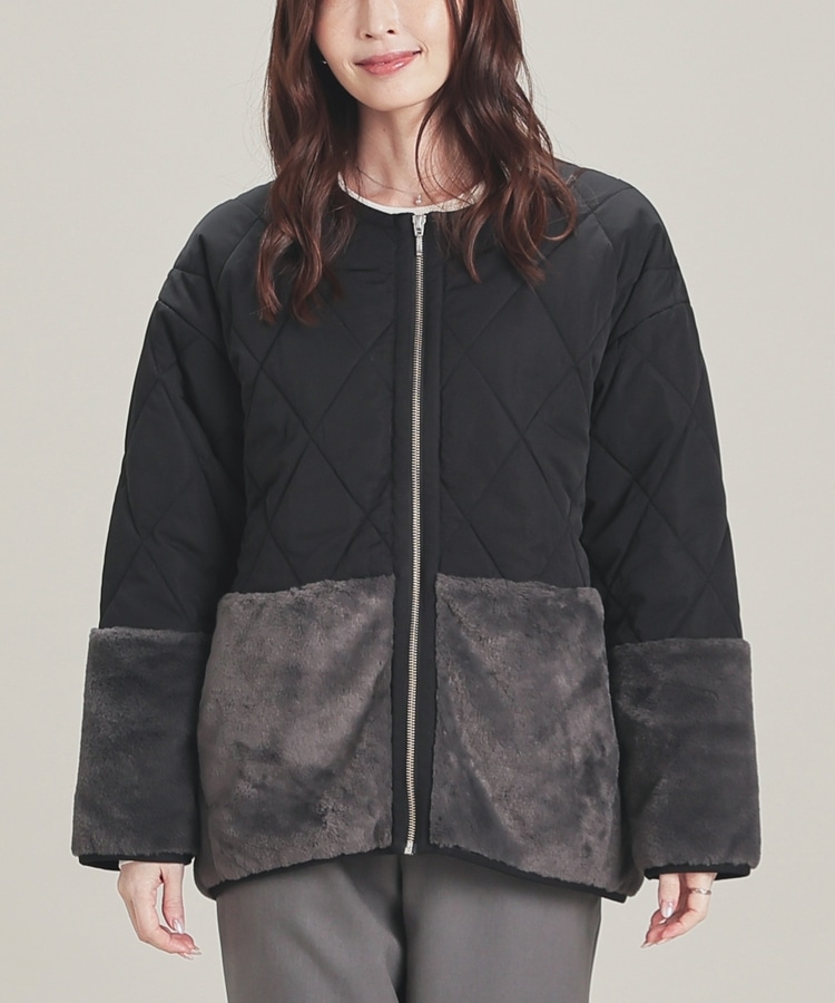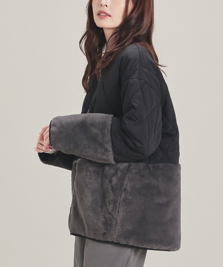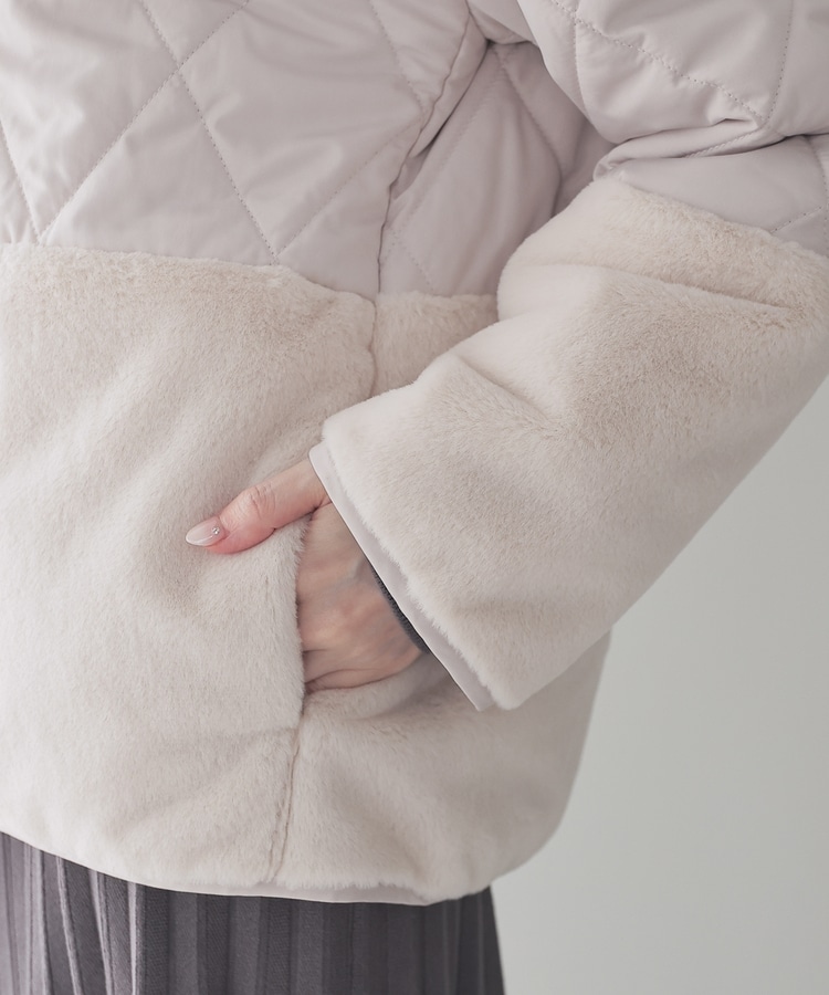 袖口と裾を肌触りの良いフェイクファーで切り替えた、存在感がありながら上品なデザイン。