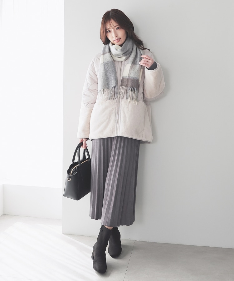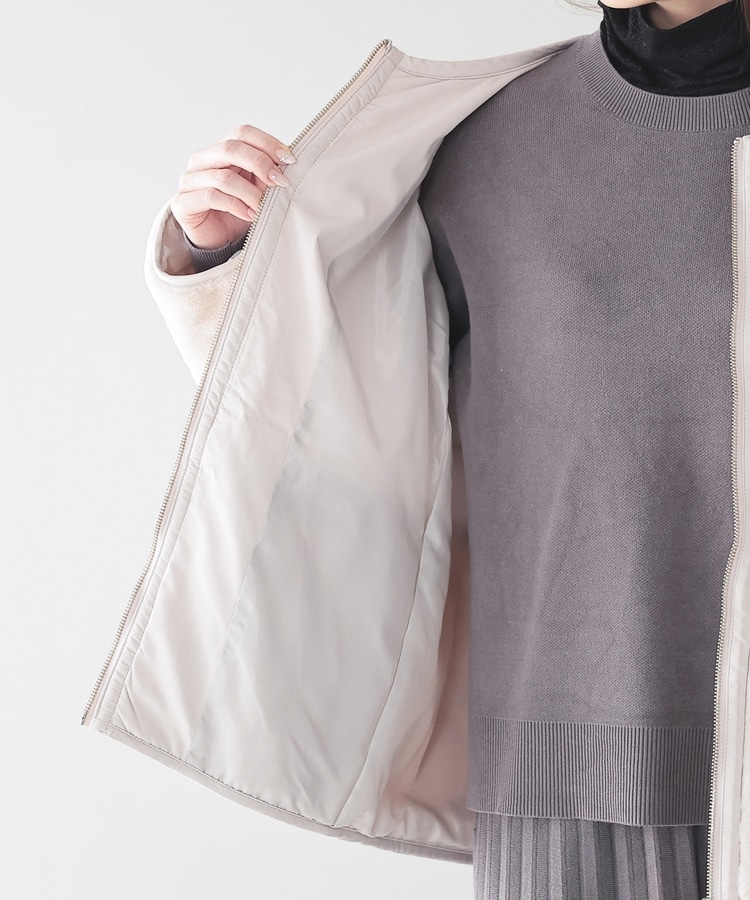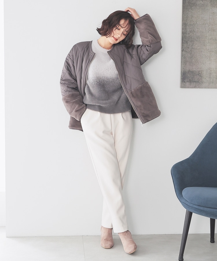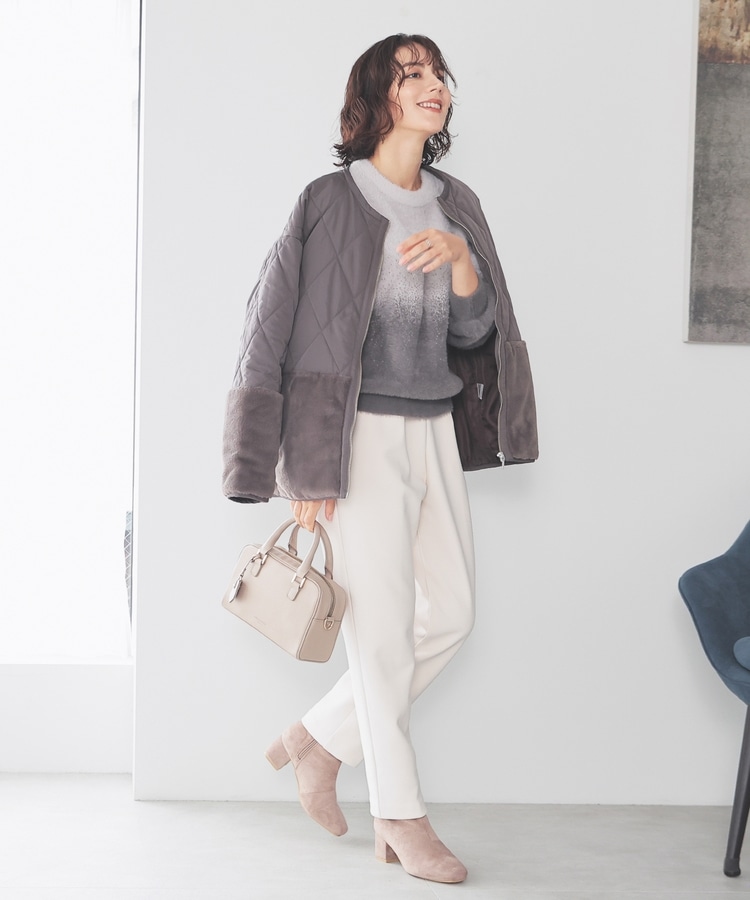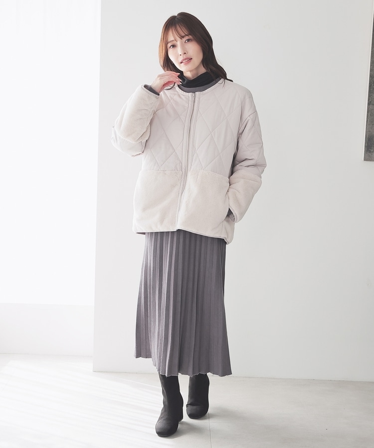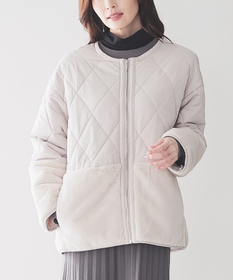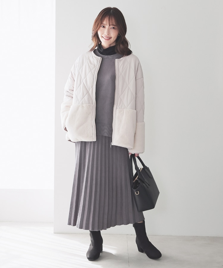 袖口と裾を肌触りの良いフェイクファーで切り替えた、存在感がありながら上品なデザイン。