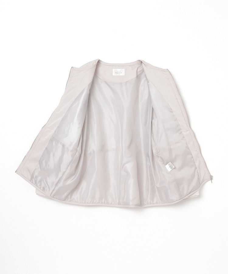 ストールやアクセサリーで首元のアレンジがしやすい、開きすぎないシンプルなノーカラー。