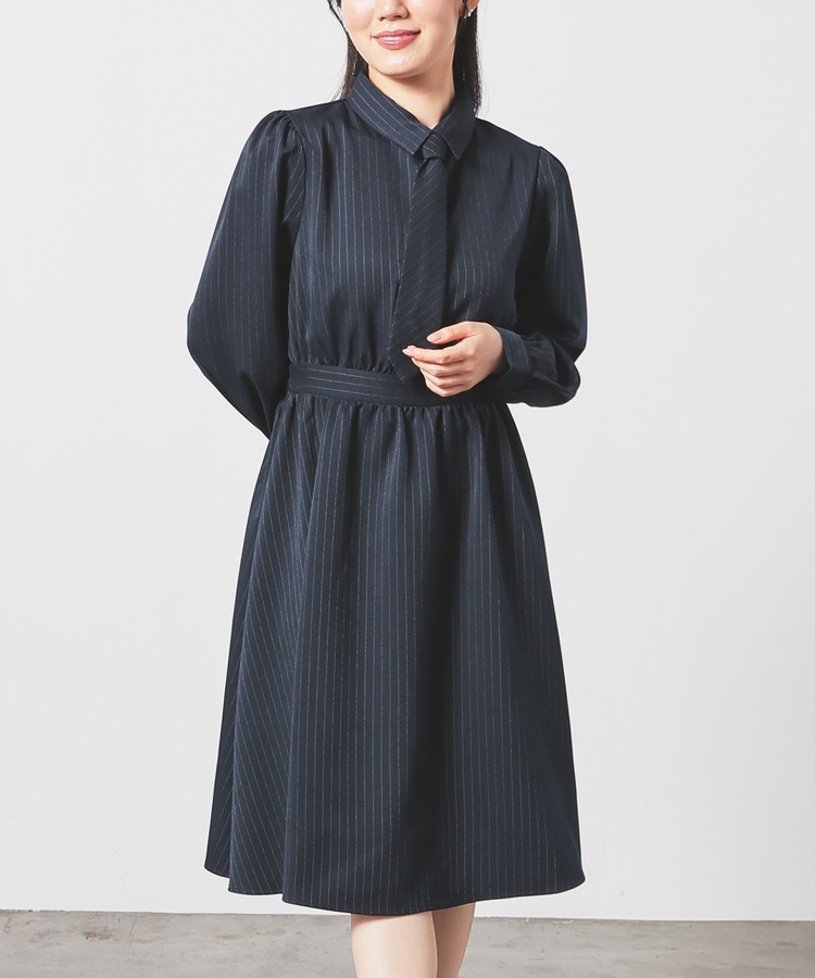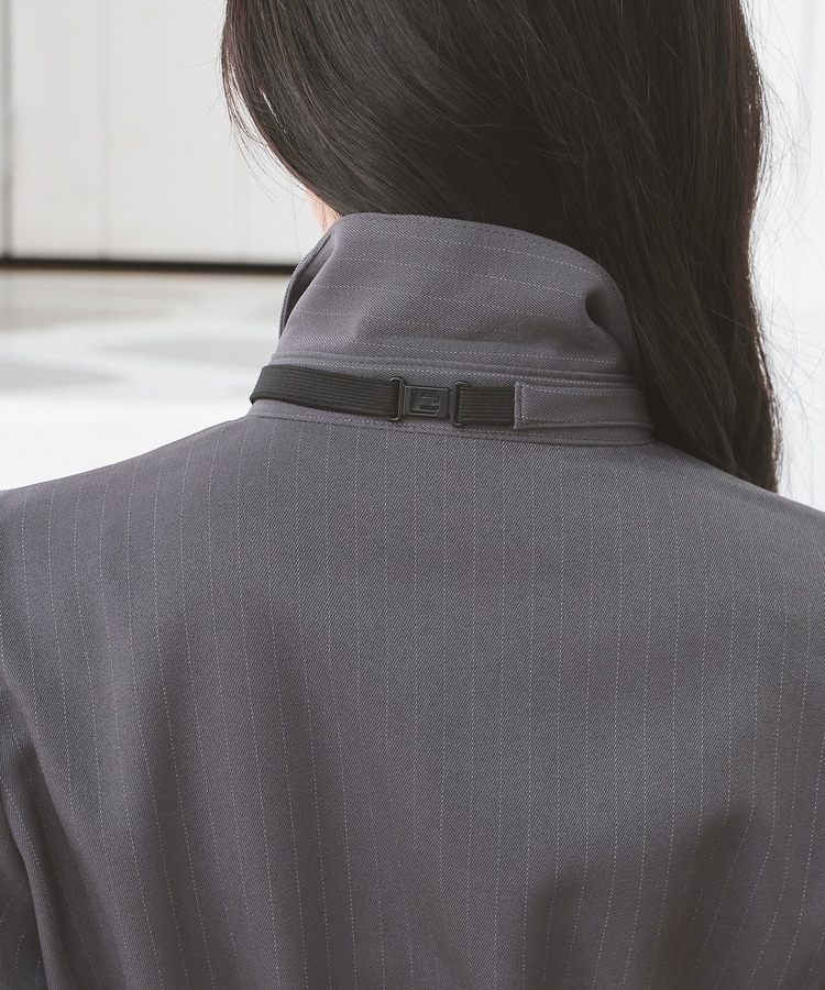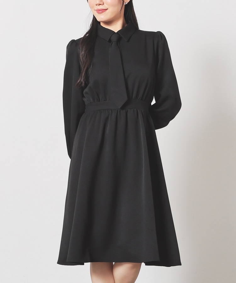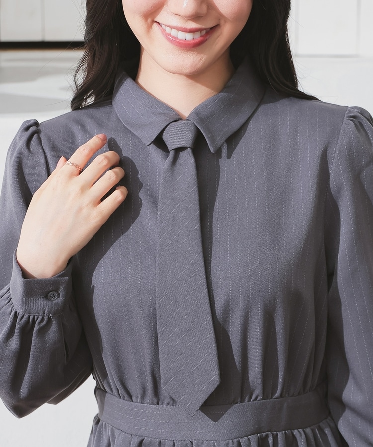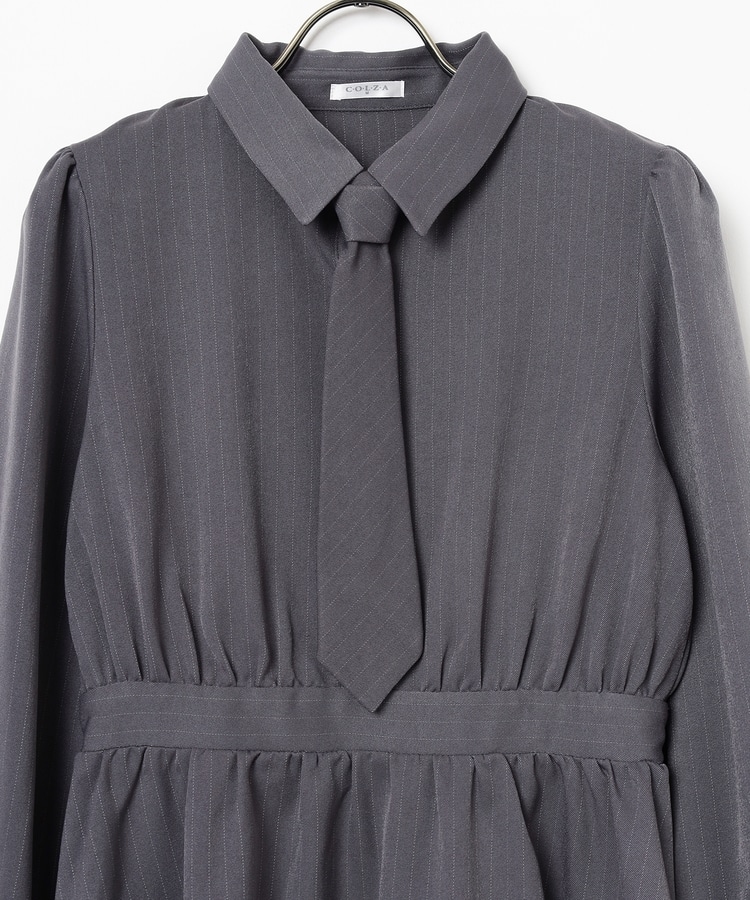 ネクタイはワンタッチプラ具で簡単に着け外しできる結び目固定タイプ。