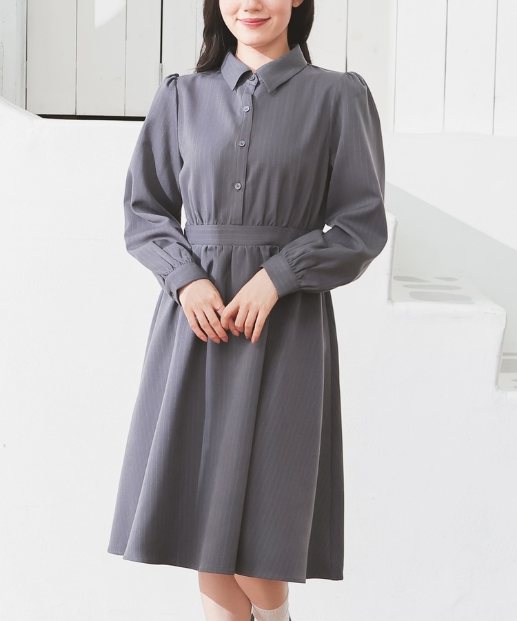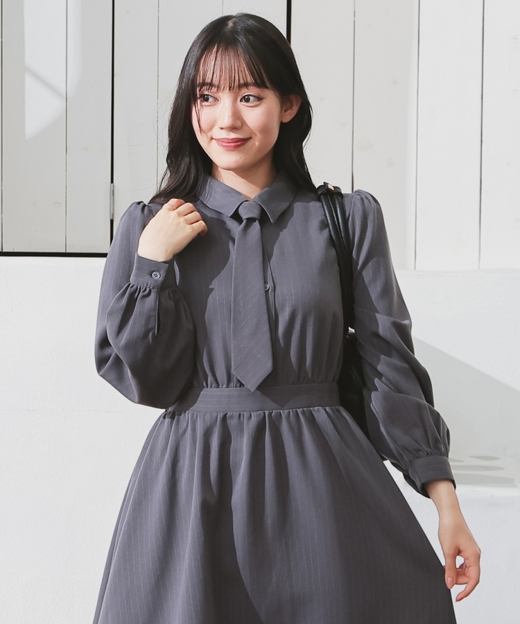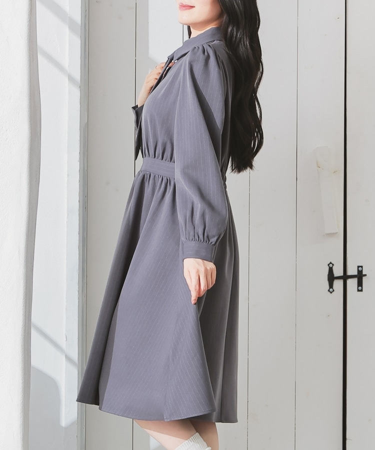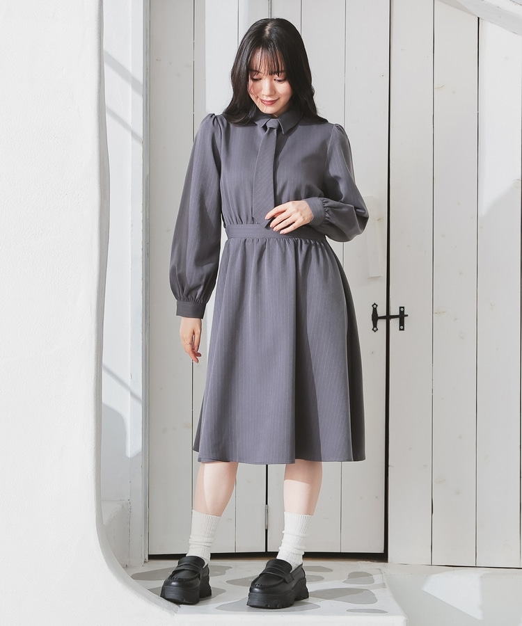 ふんわり広がるフレアシルエットとボリューム袖で、可愛らしさをプラス。