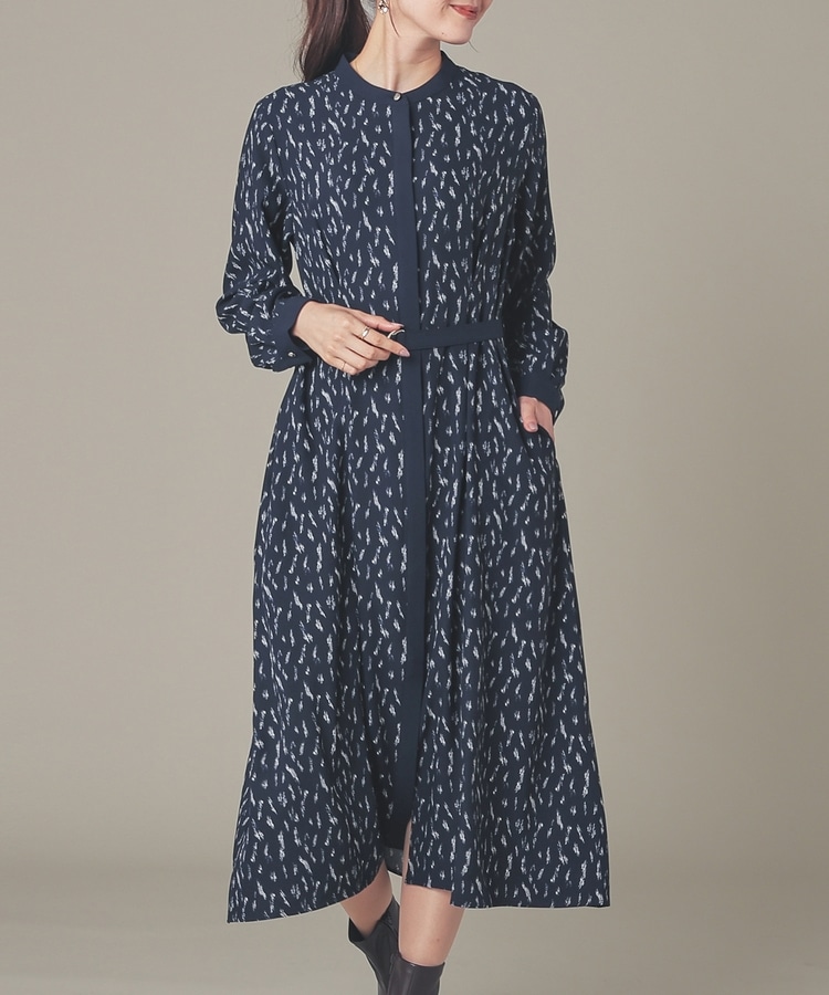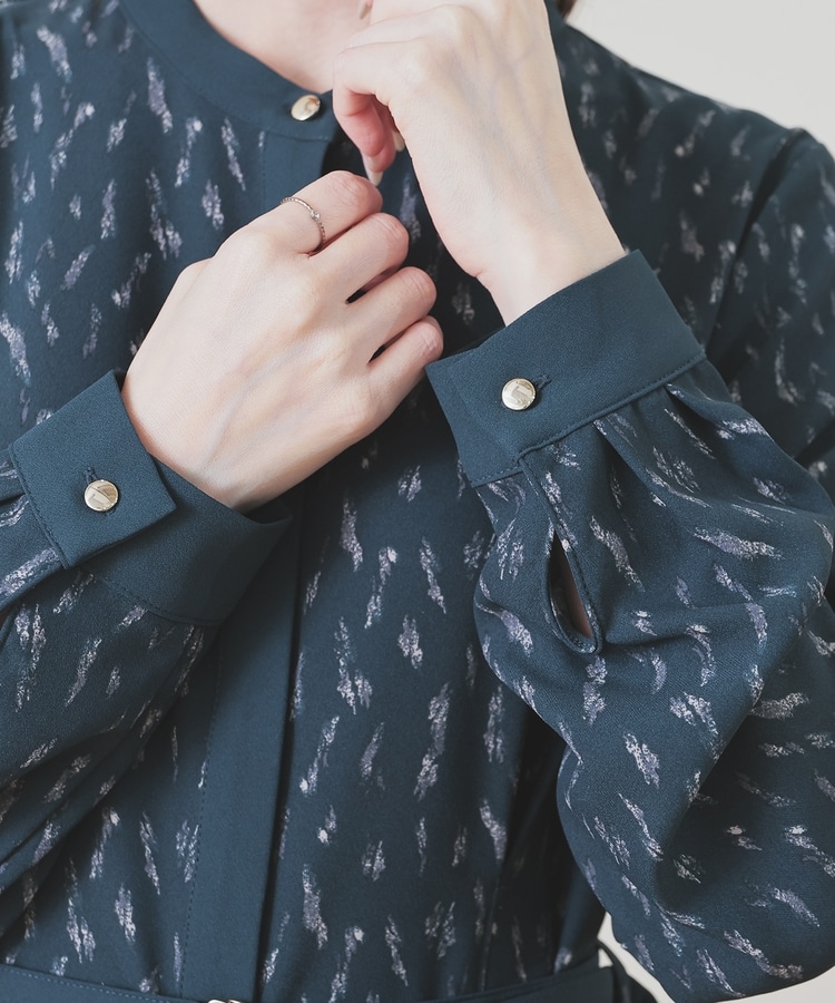 お洒落なアート柄の、すっきりとしたバンドカラーデザイン。