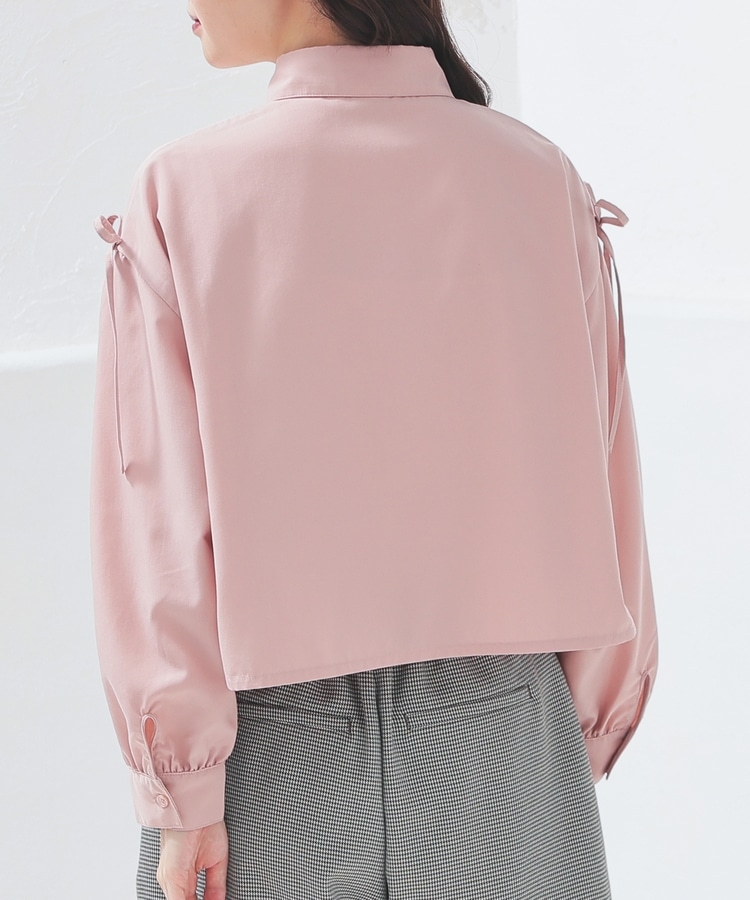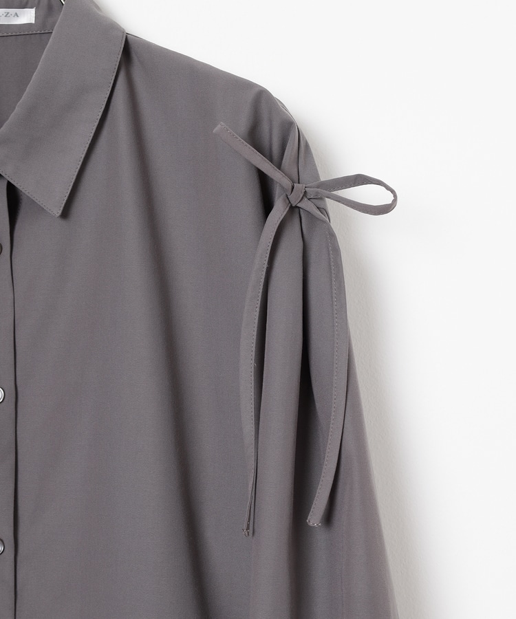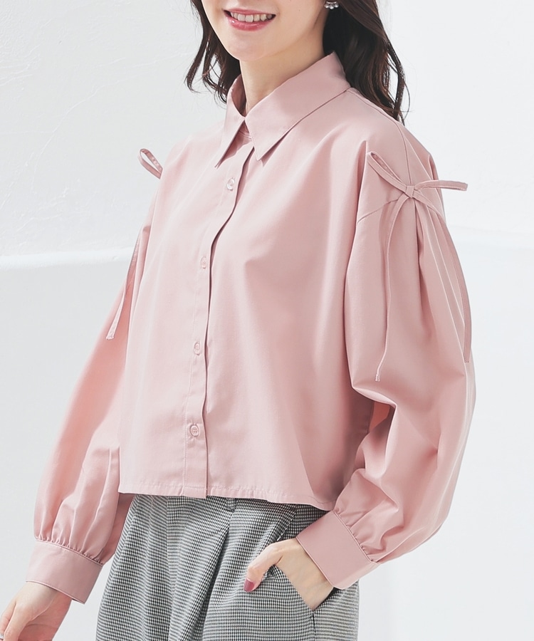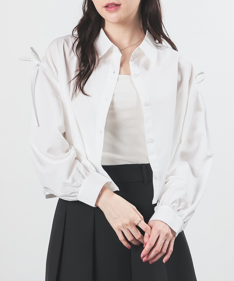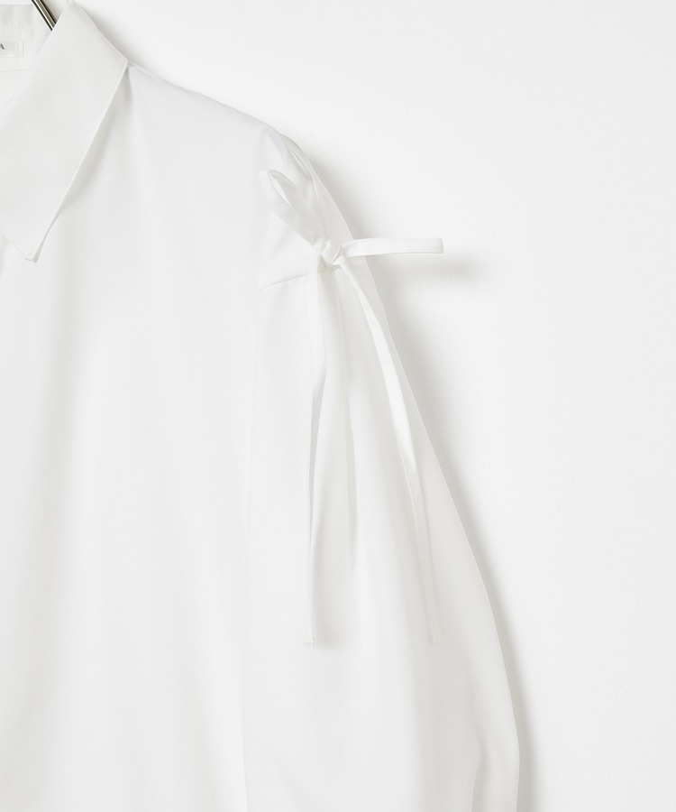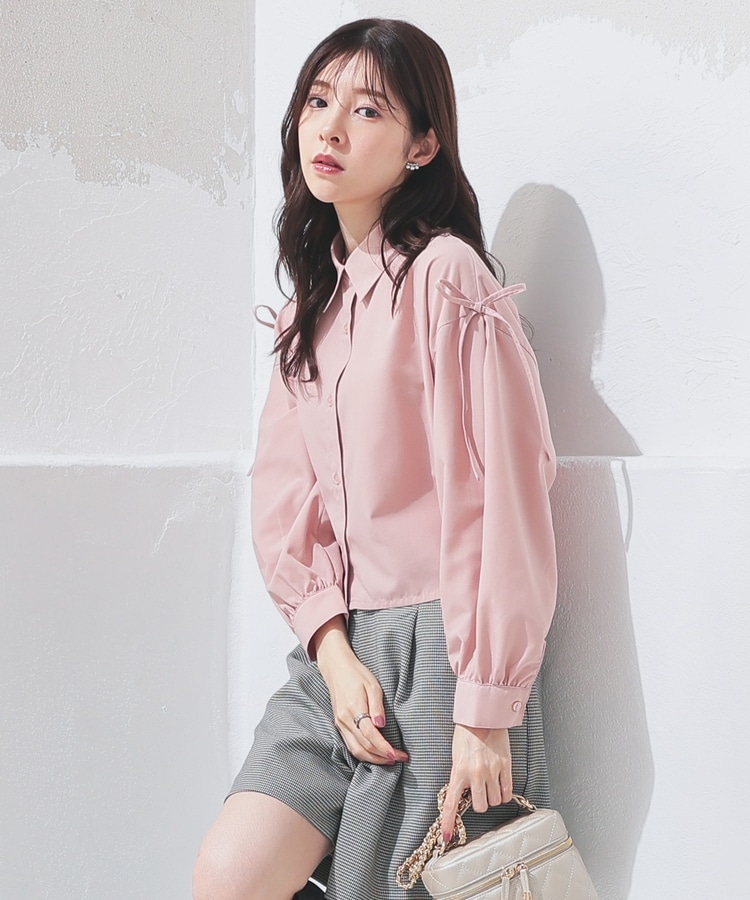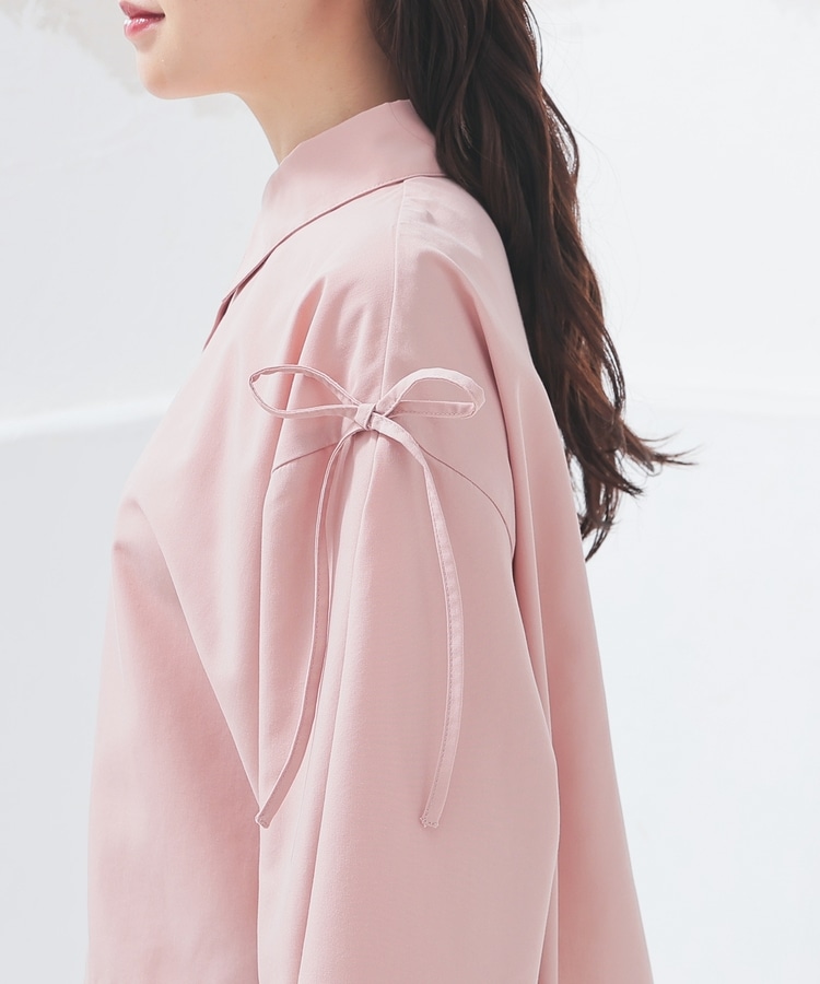 シンプルなレギュラーカラーに肩のリボンがキュートなデザイン。