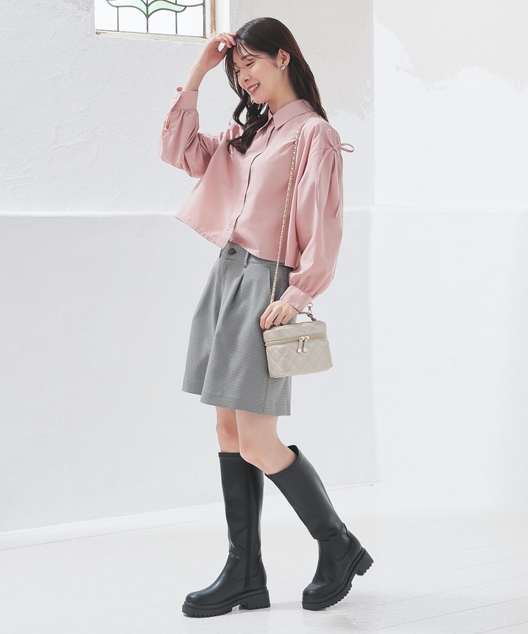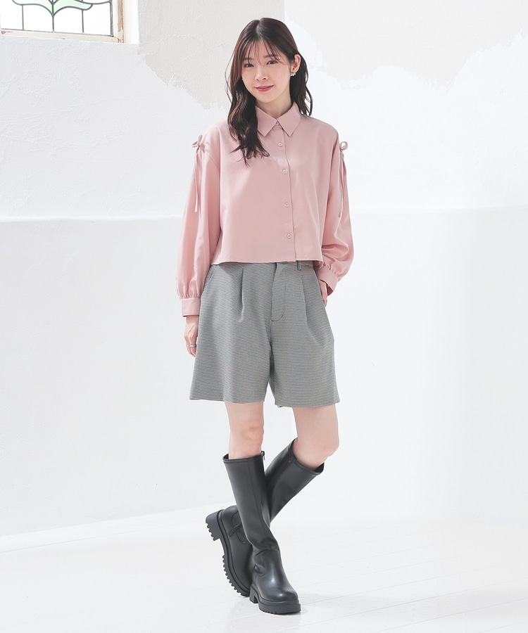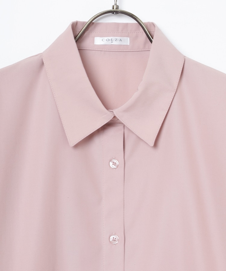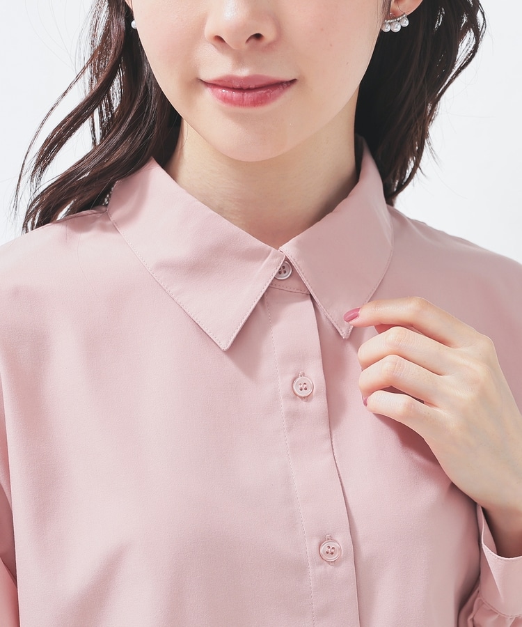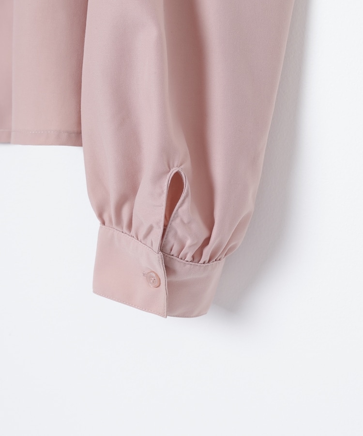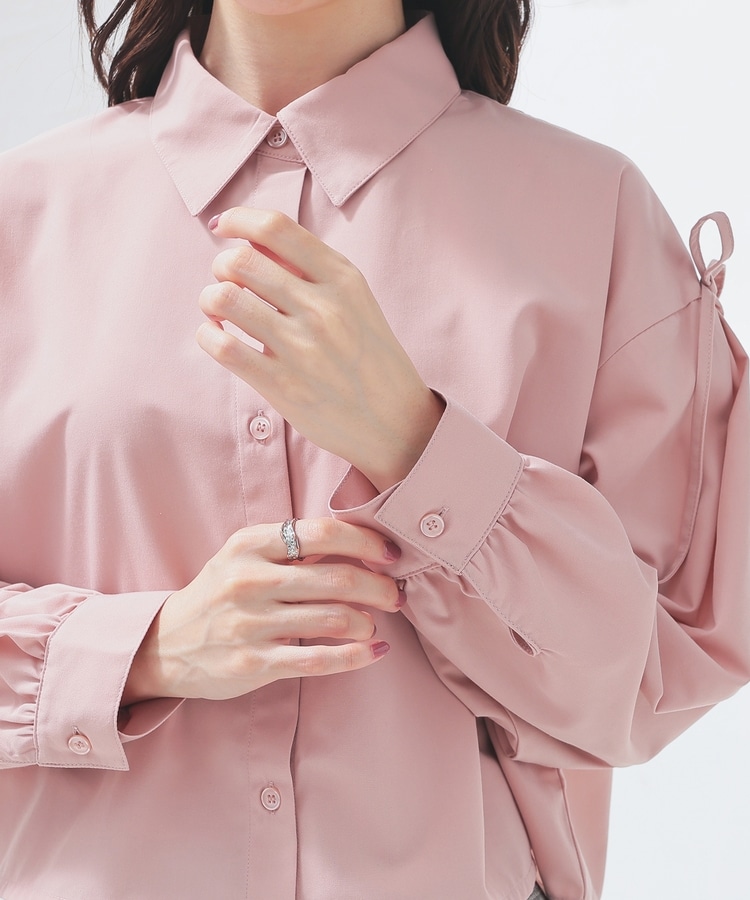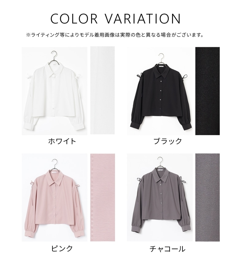 シンプルなレギュラーカラーに肩のリボンがキュートなデザイン。
