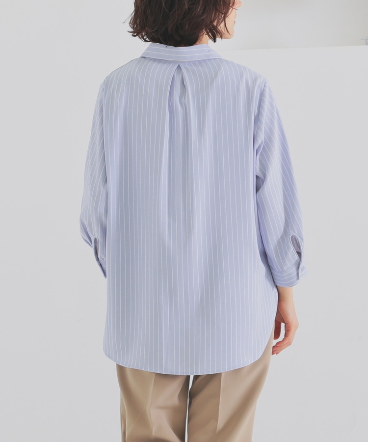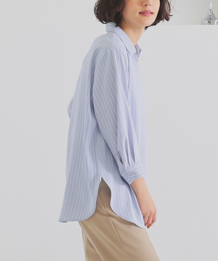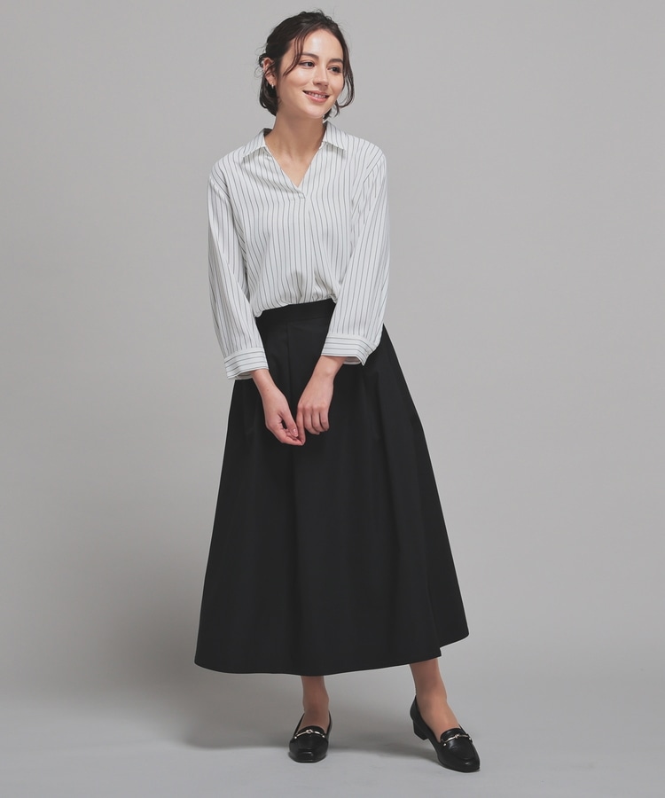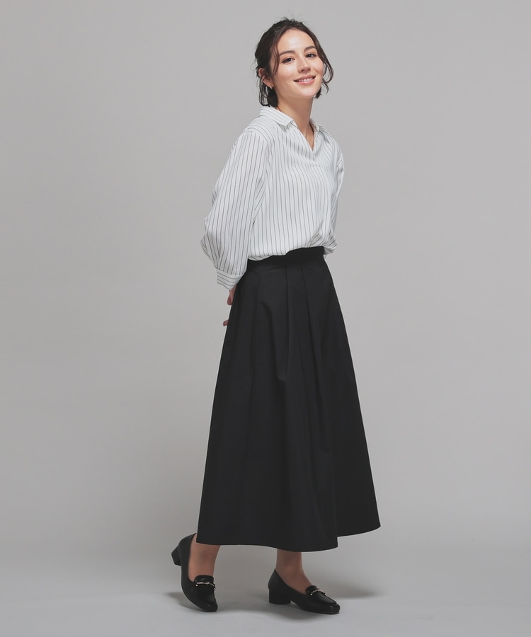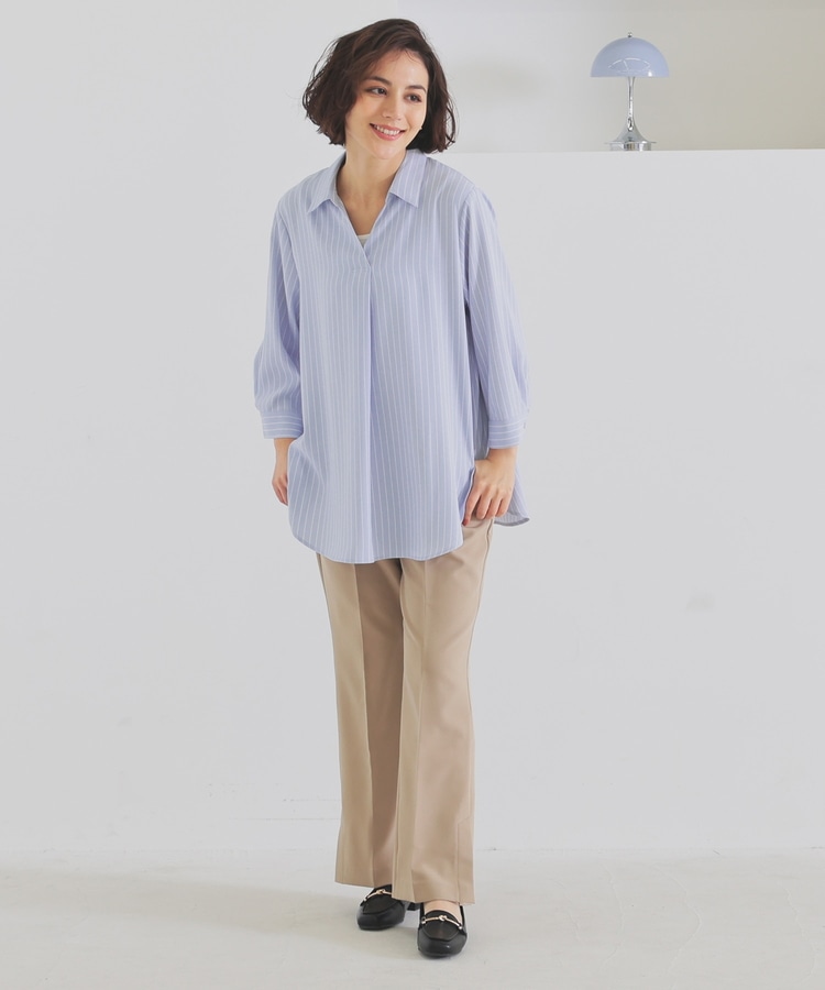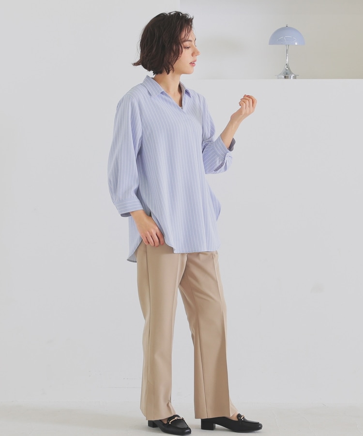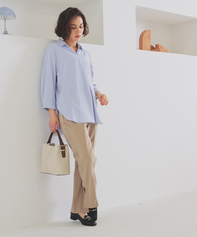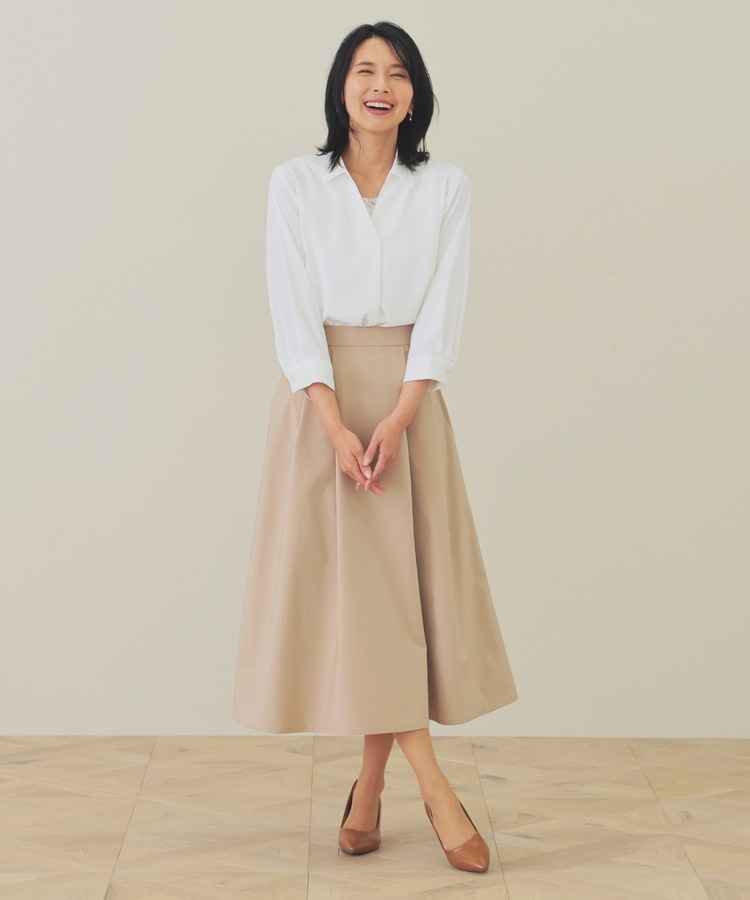 首元をすっきり見せるスキッパーで、シンプルながらさらっと着るだけでコーデ映えする、大人な抜け感のあるデザイン。