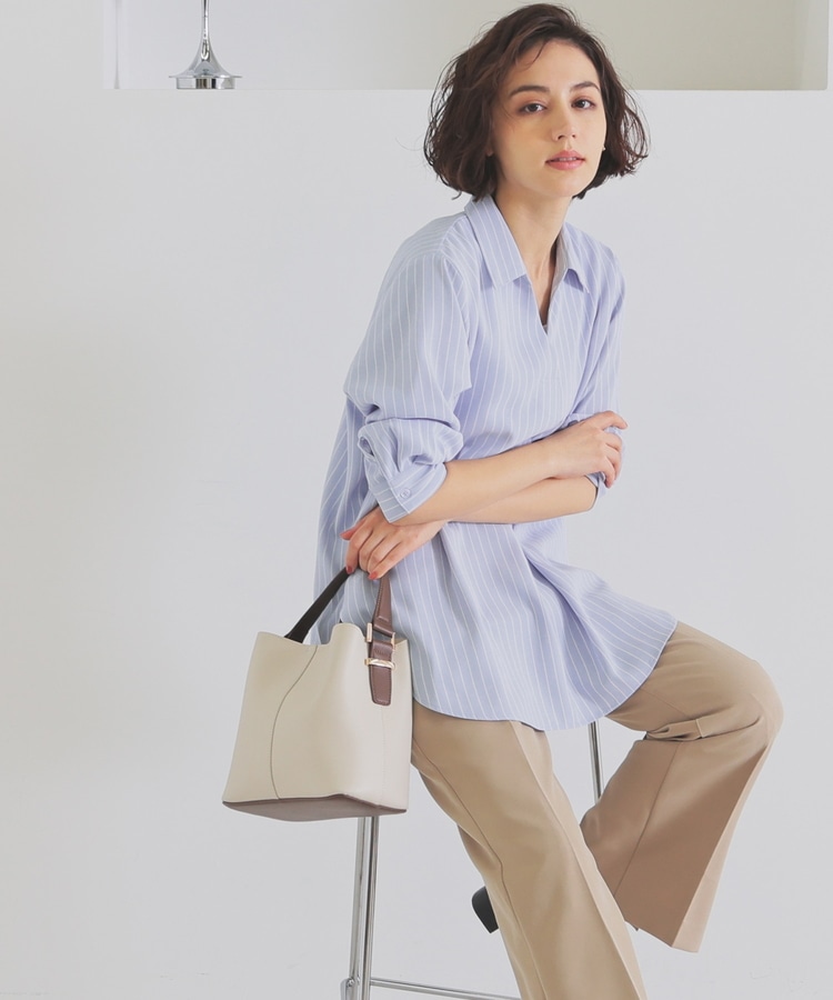 テーパードパンツやIラインスカートなど、すっきりとしたボトムスと好相性。