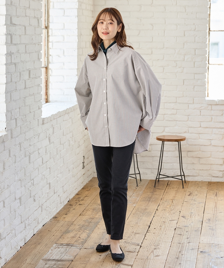 ベーシックなレギュラーカラーながら、ゆるっとした抜け感がお洒落なデザイン。