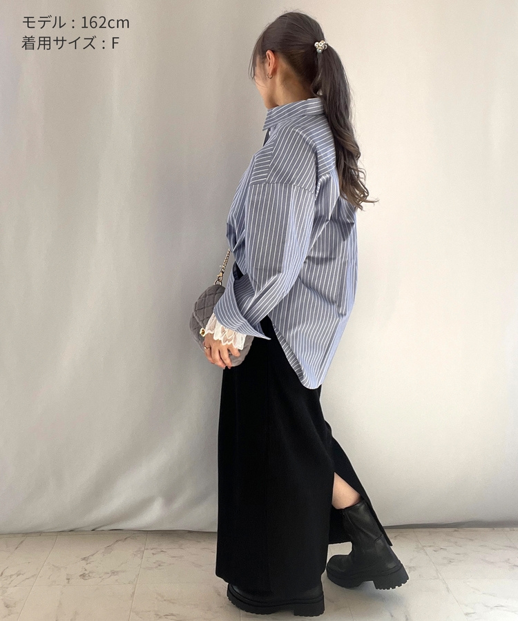 ブルーストライプ / モデル:166cm / 着用サイズF
