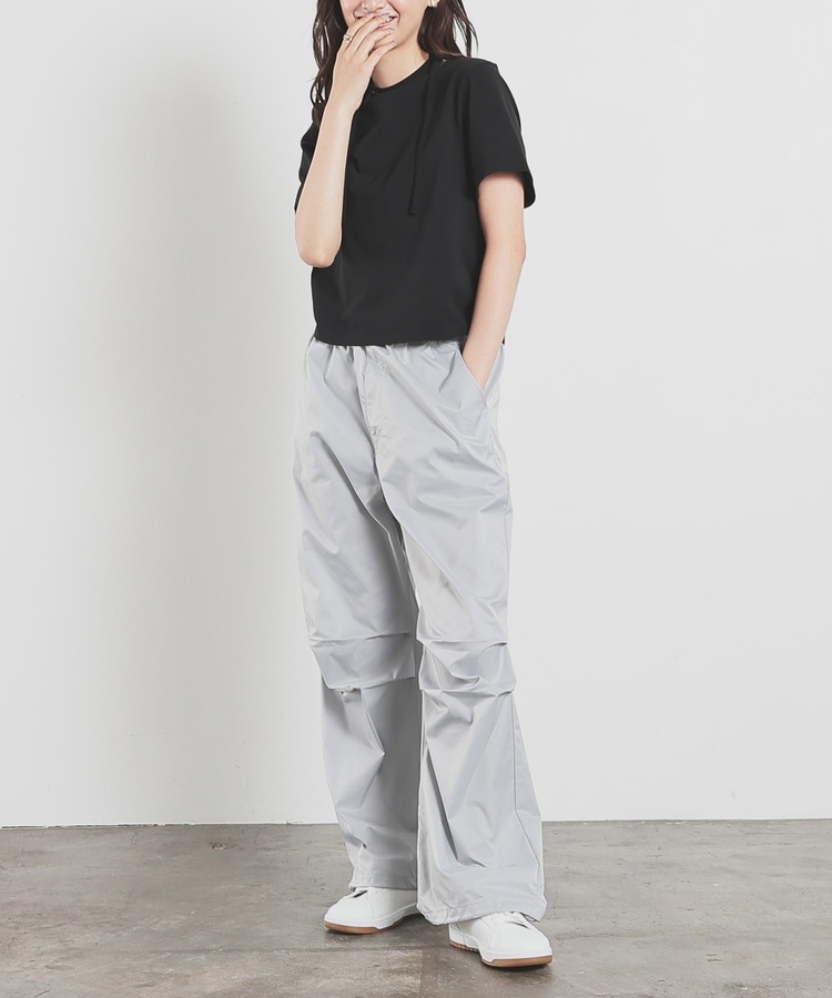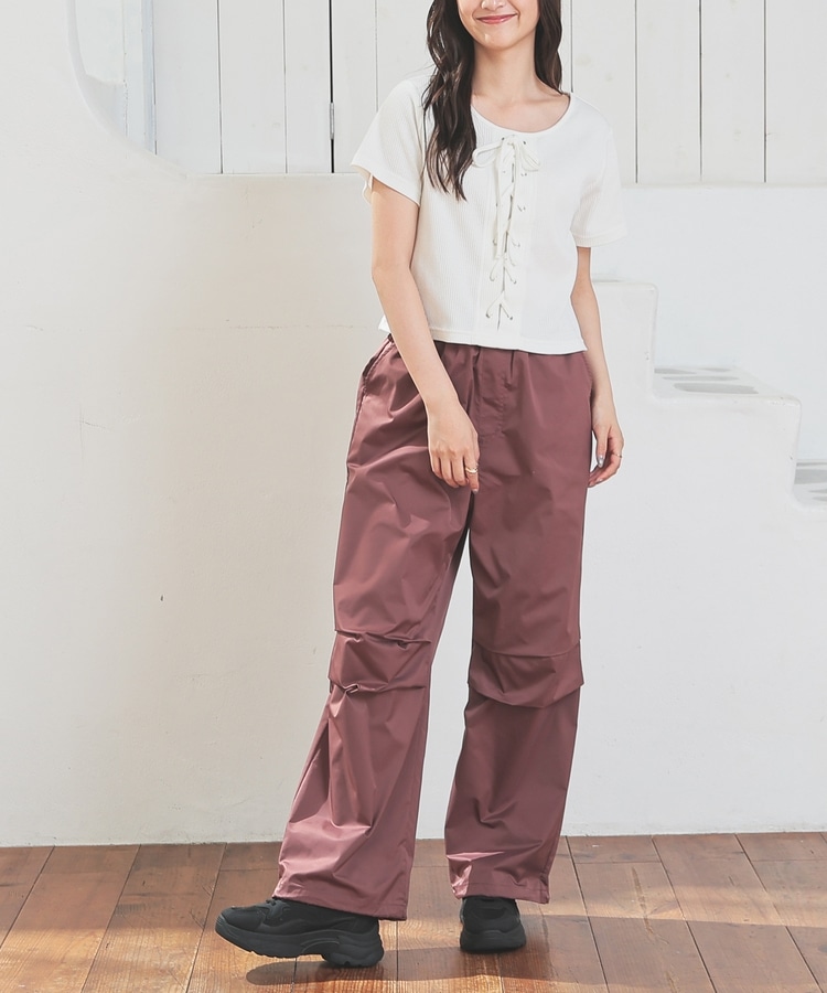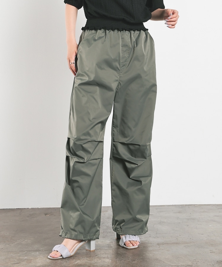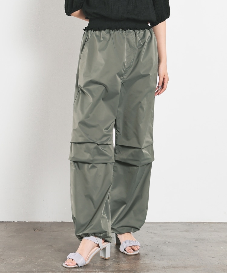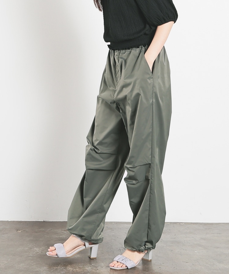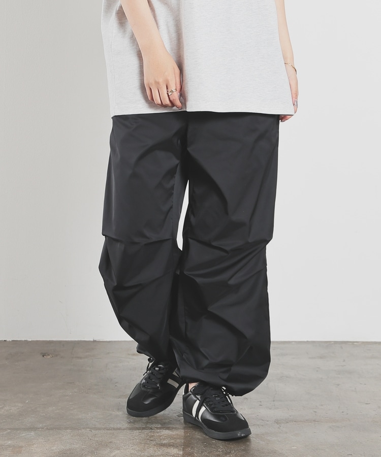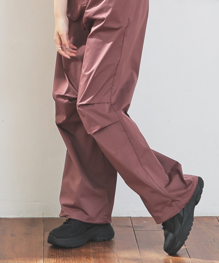 裾のドロストコードを緩めてストレートパンツとしても着用可能。