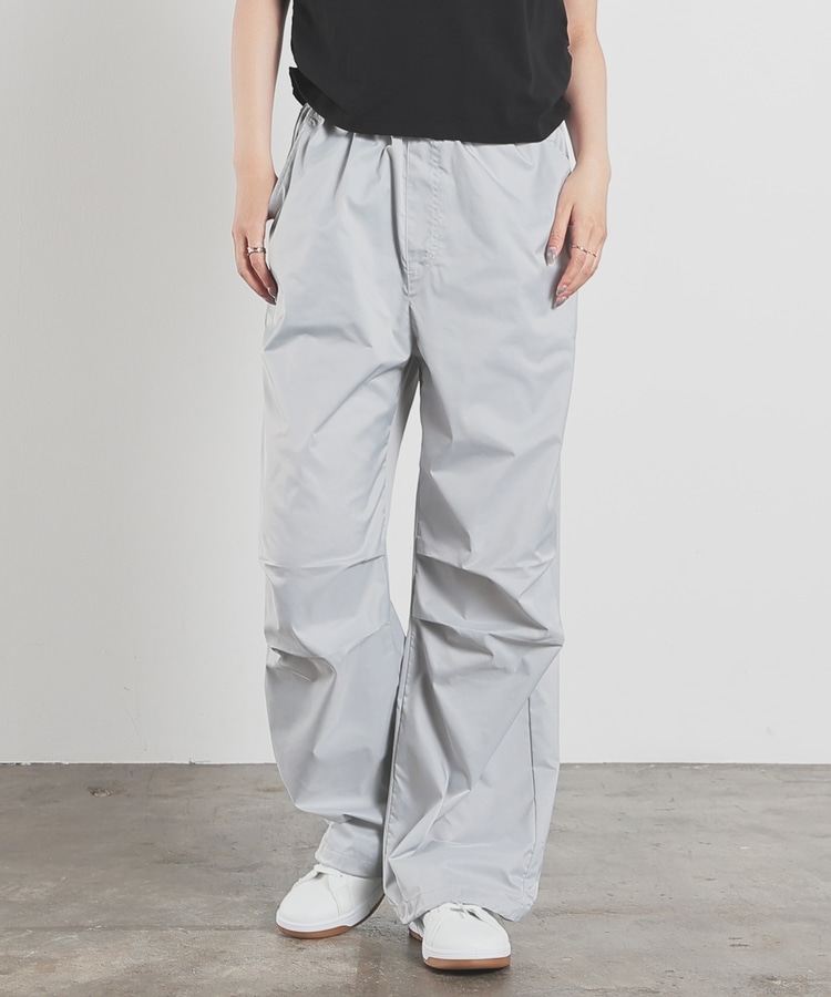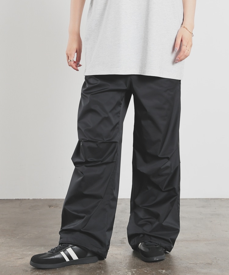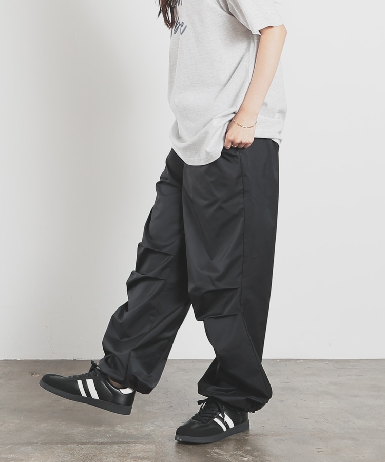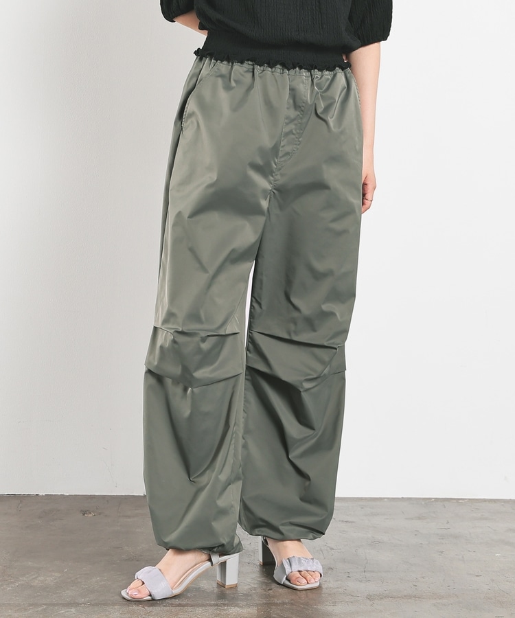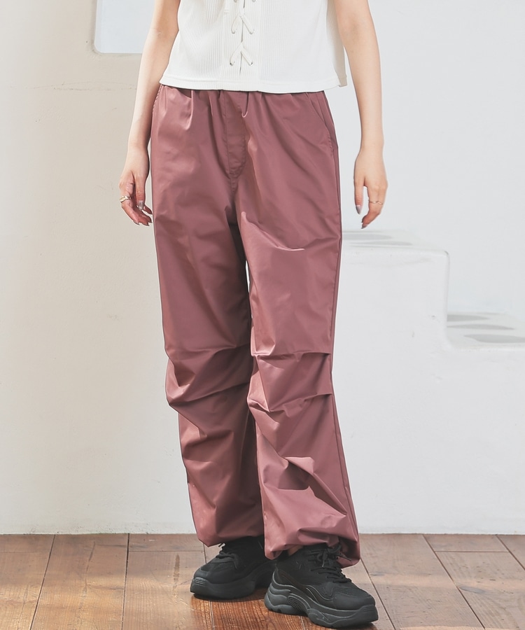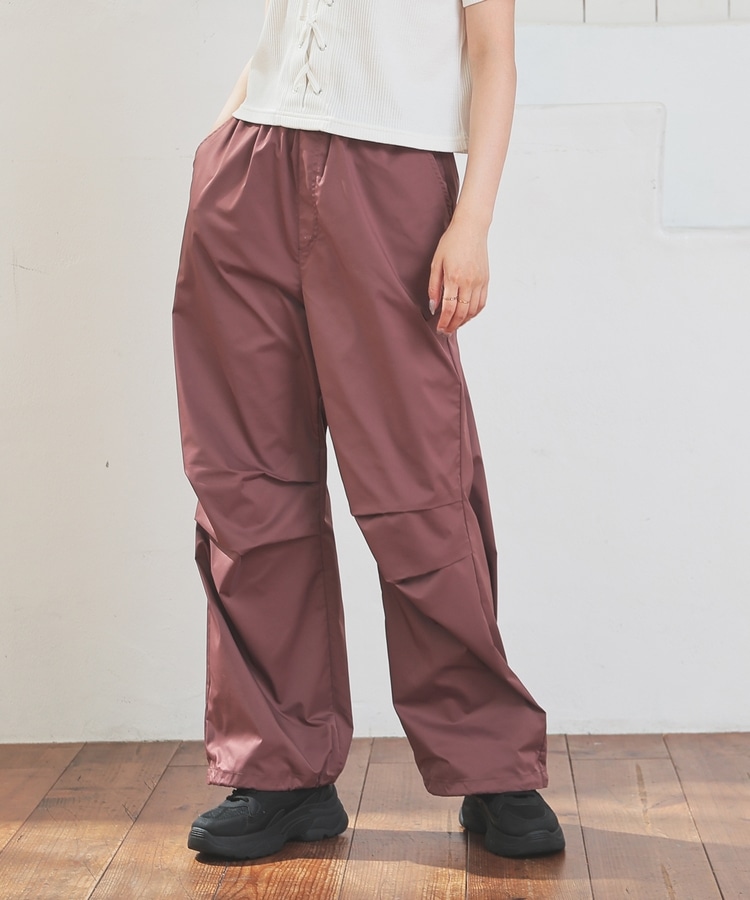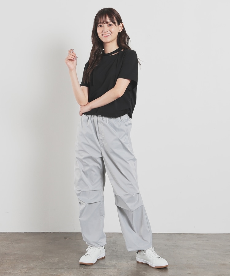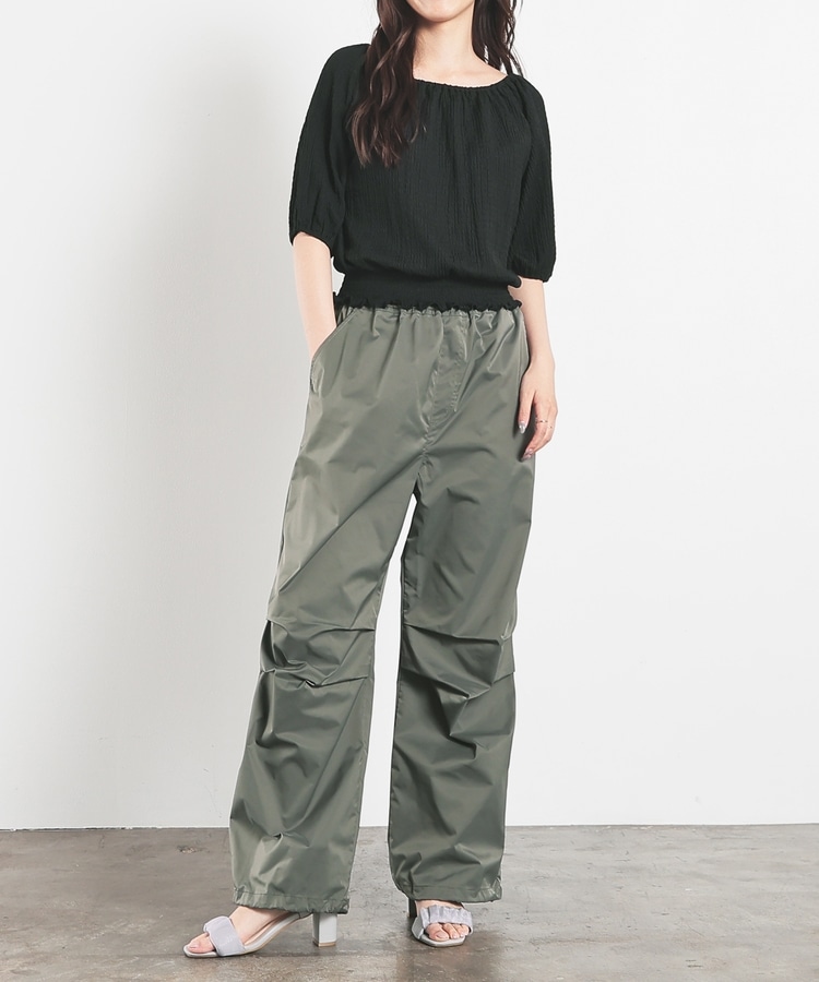 裾のドロストコードを緩めてストレートパンツとしても着用可能。