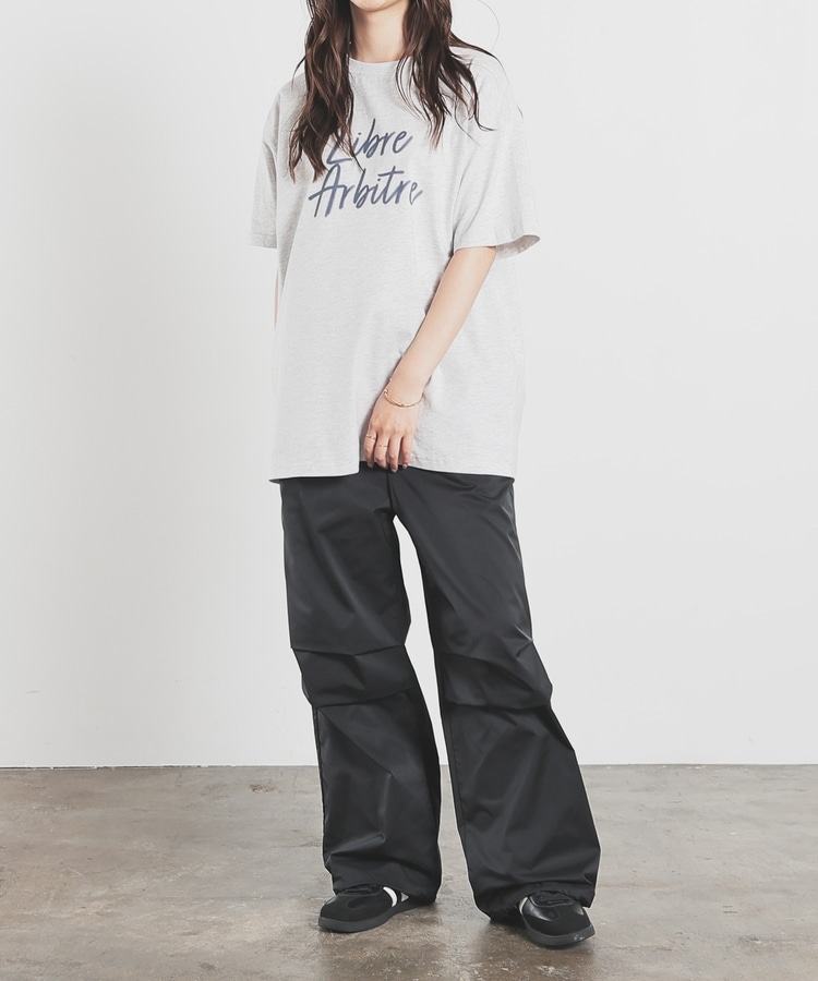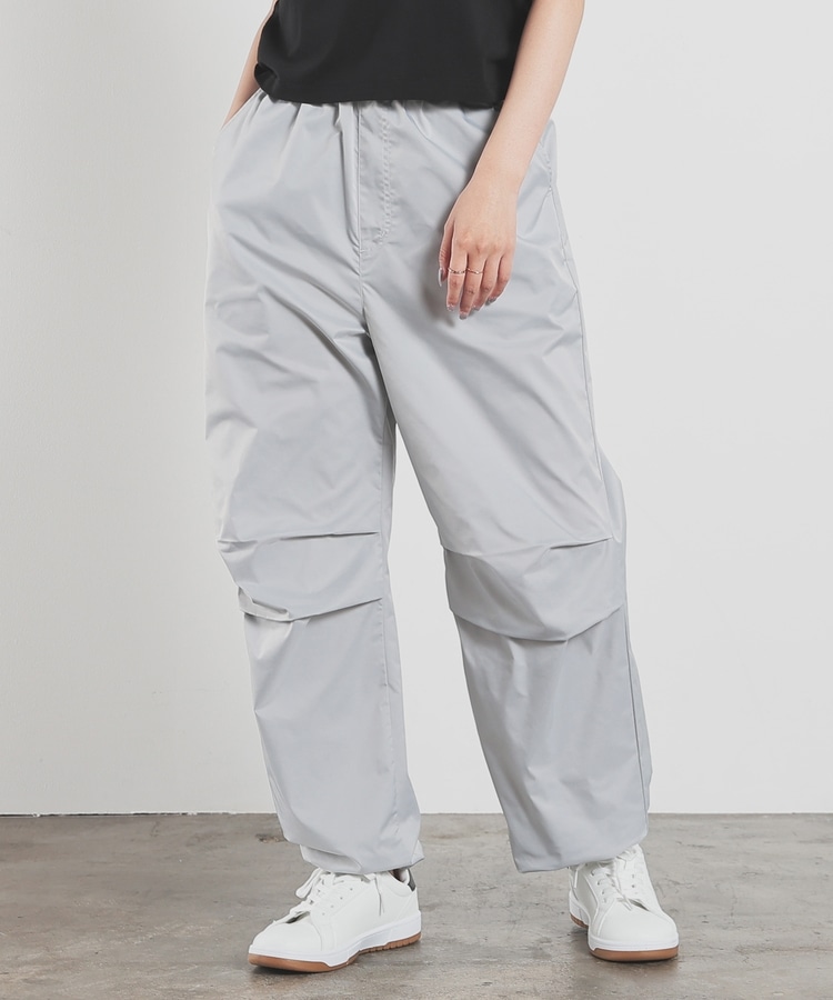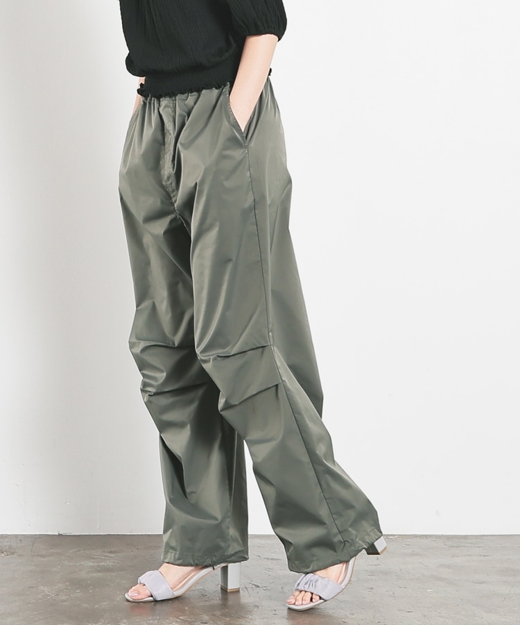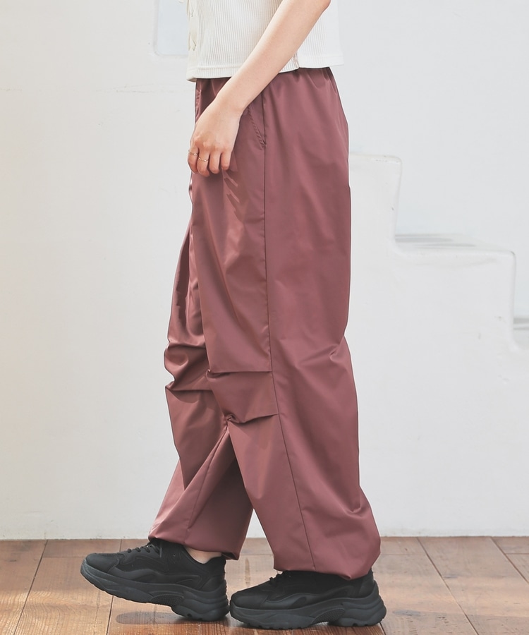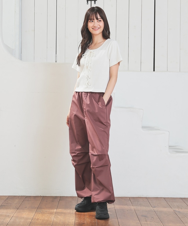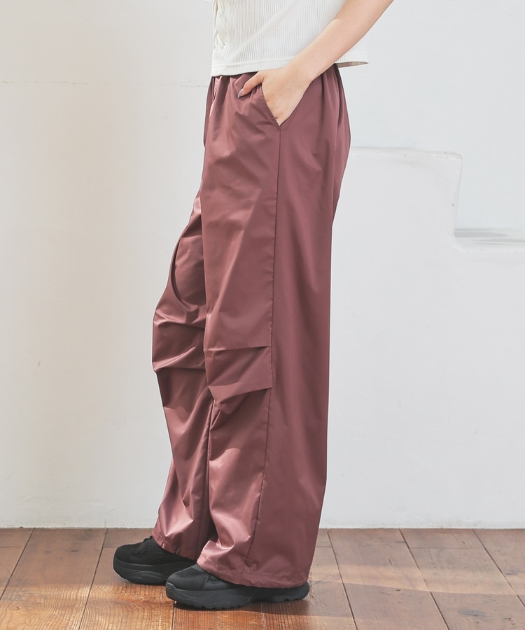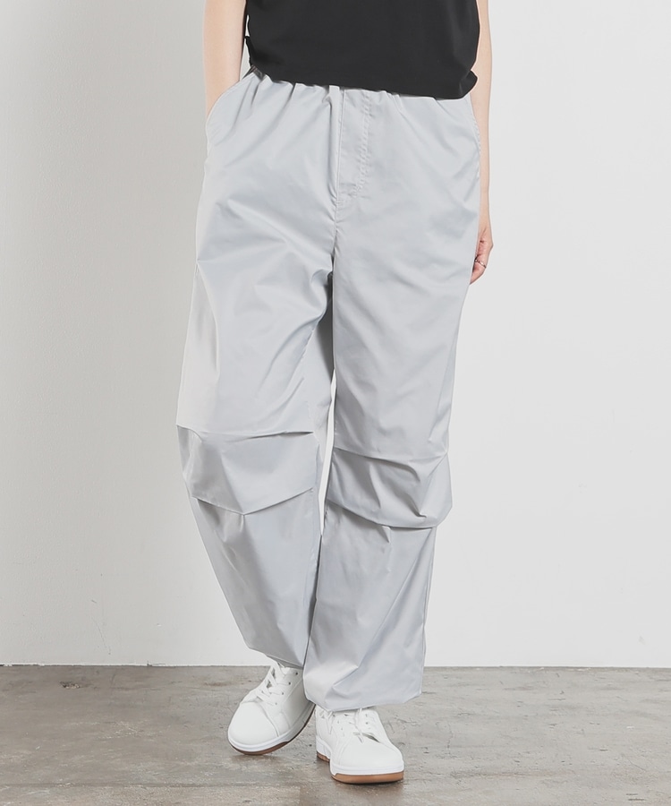 裾のドロストコードを緩めてストレートパンツとしても着用可能。