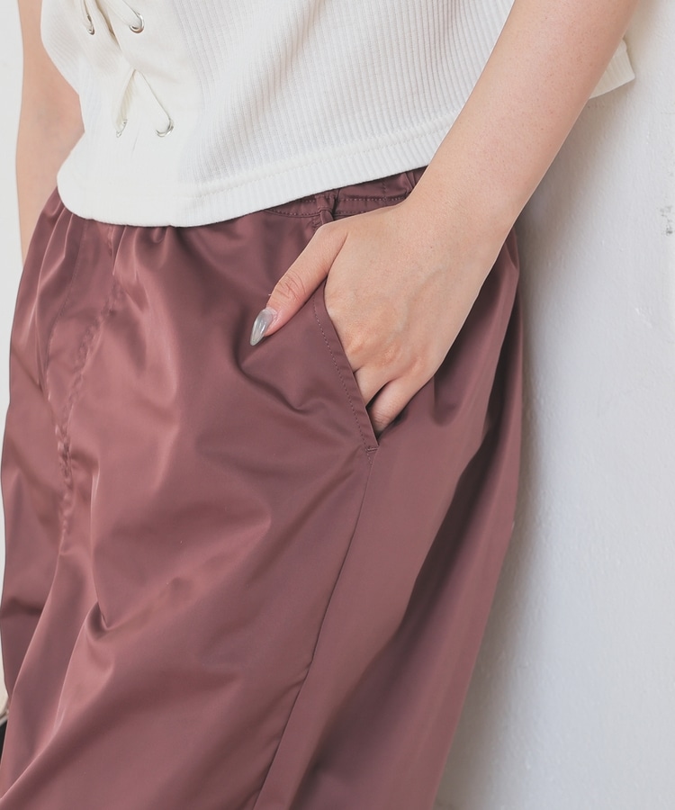 スポーティーなアイテムながら光沢感のある生地でトレンド感アップ。