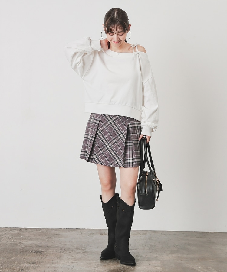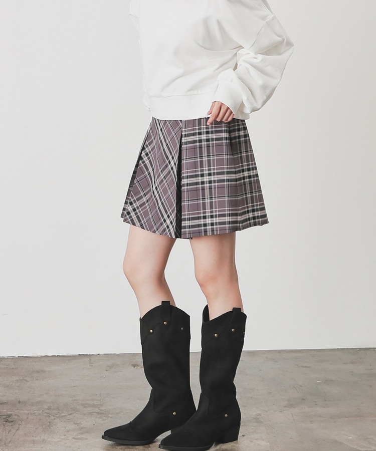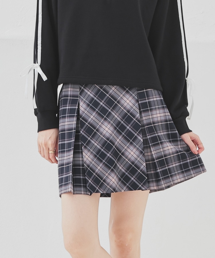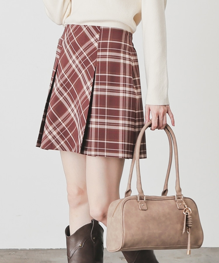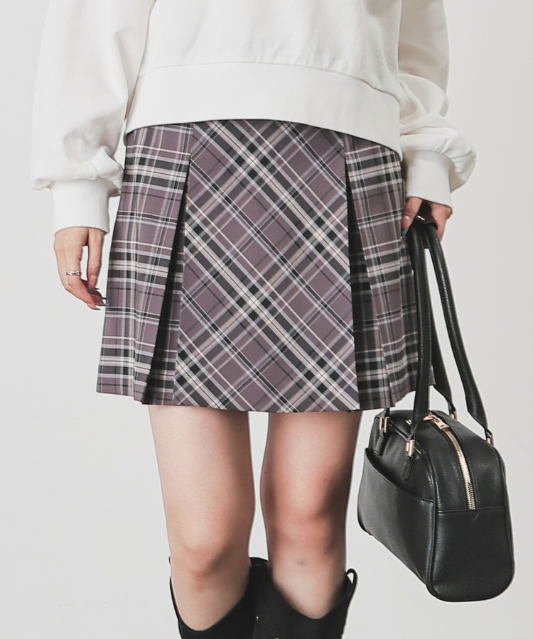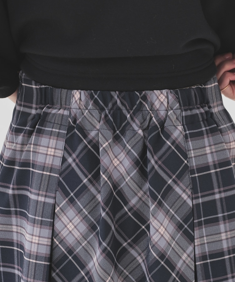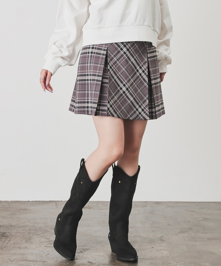 太めのボックスプリーツで広がりすぎずすっきり見え、美脚効果も期待できるデザイン。