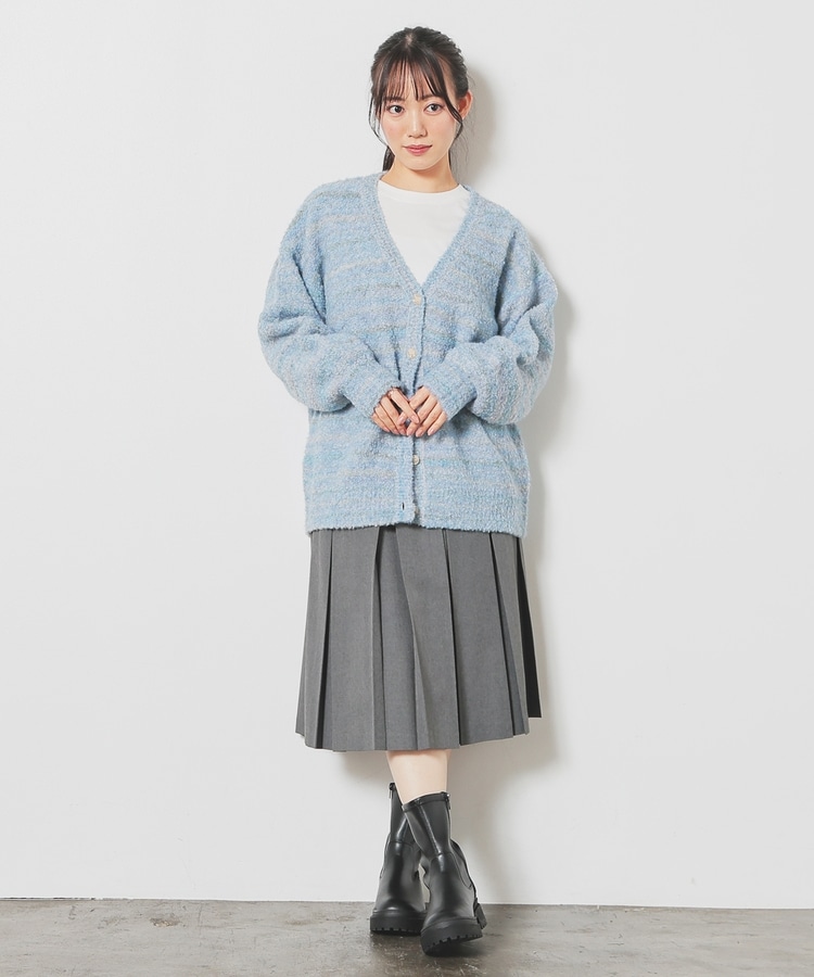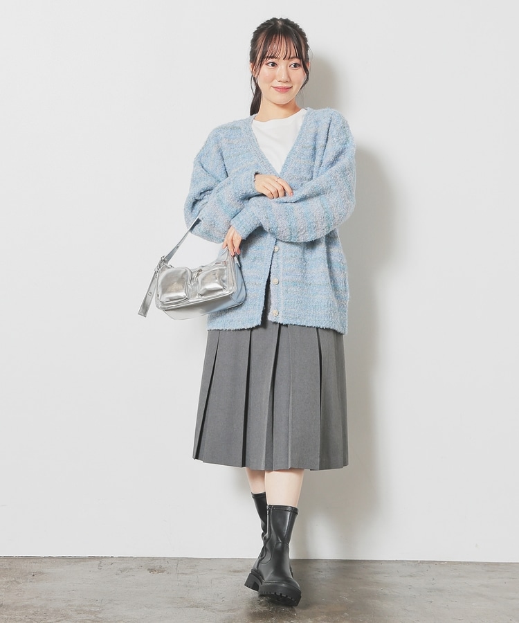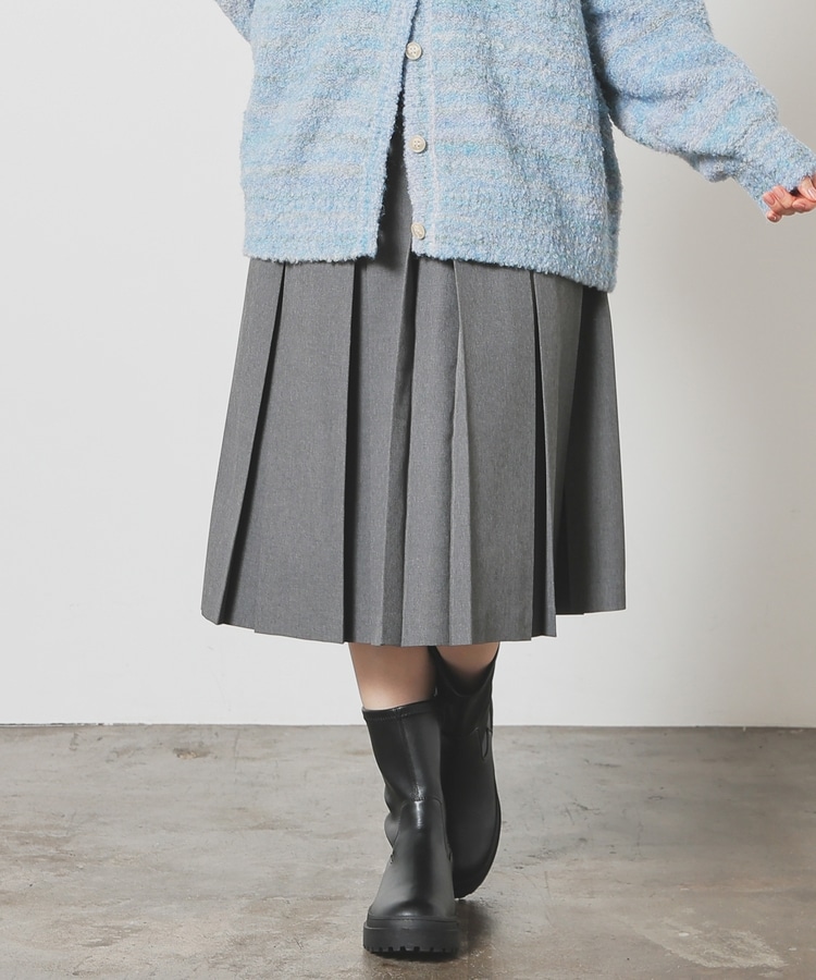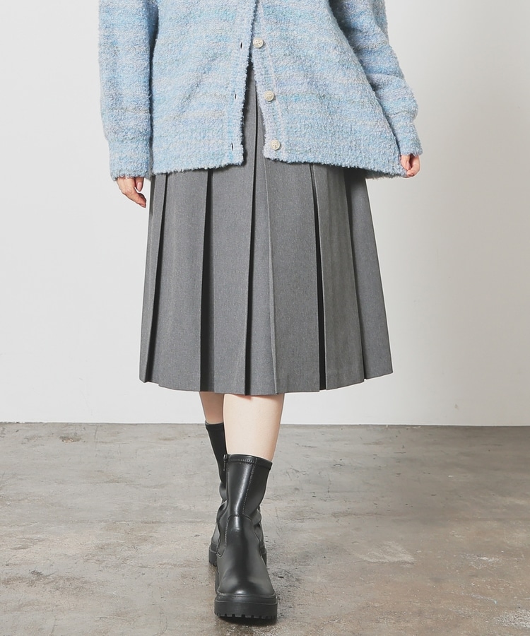 シンプルでベーシックなワンカラーながら、動くたびに揺れるプリーツがフェミニンなデザイン。
