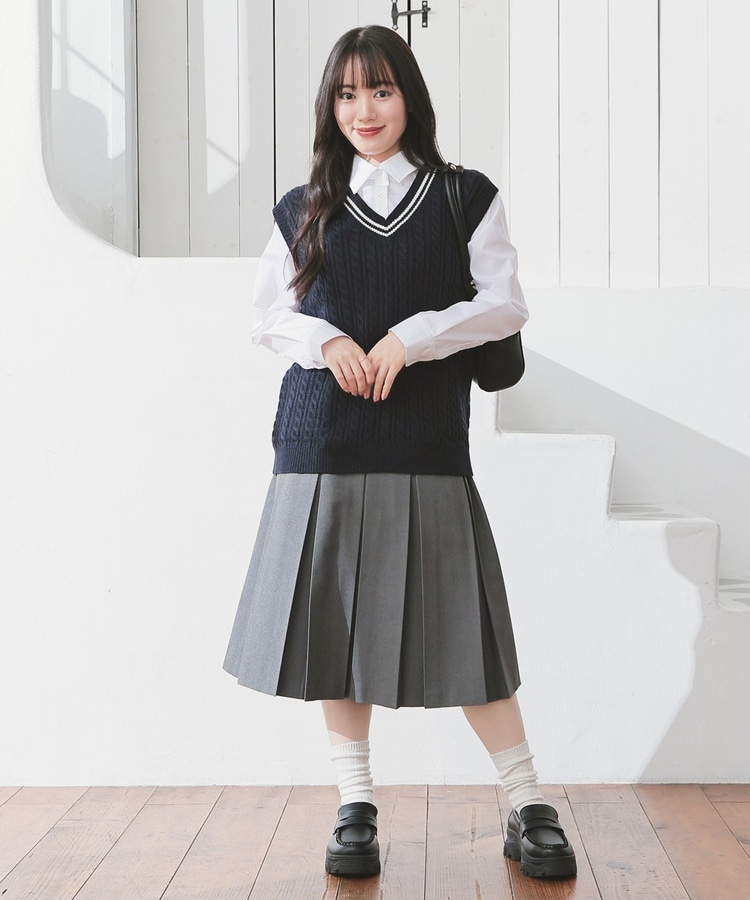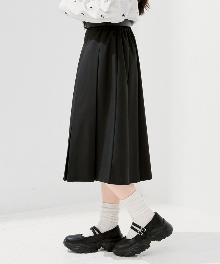 低身長の方もはきやすい、ひざ下のミディアム丈。