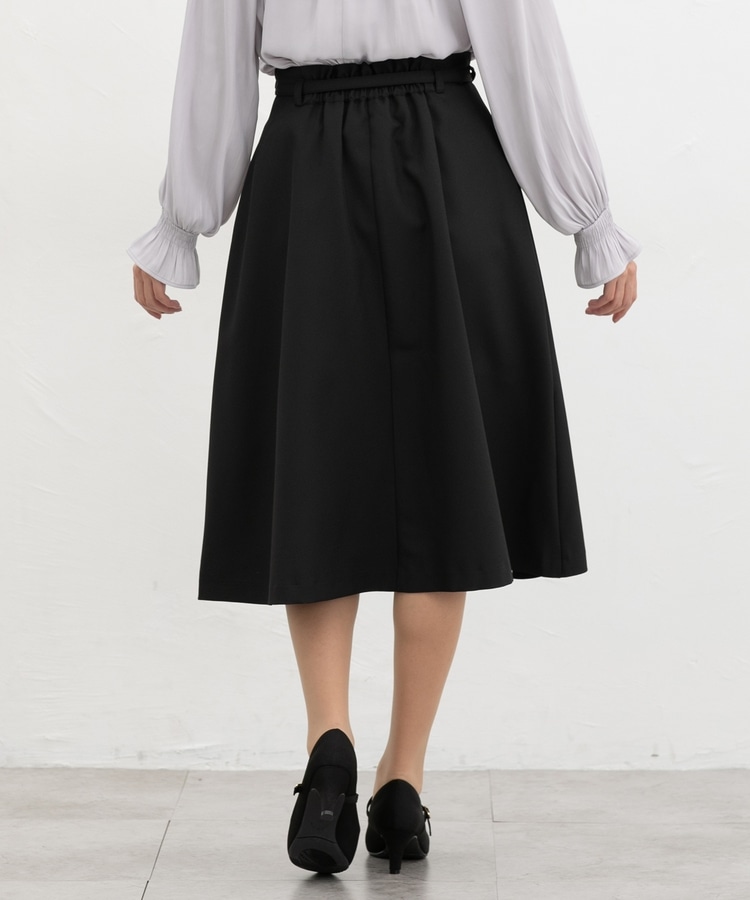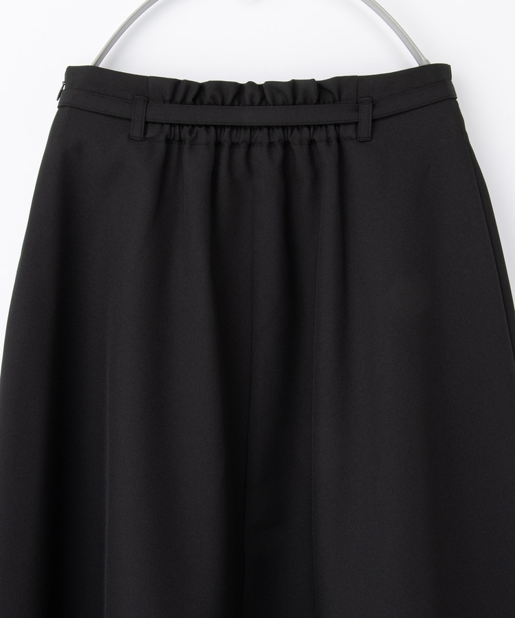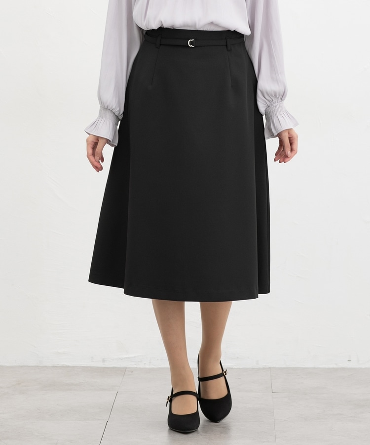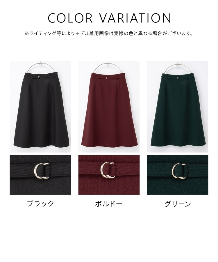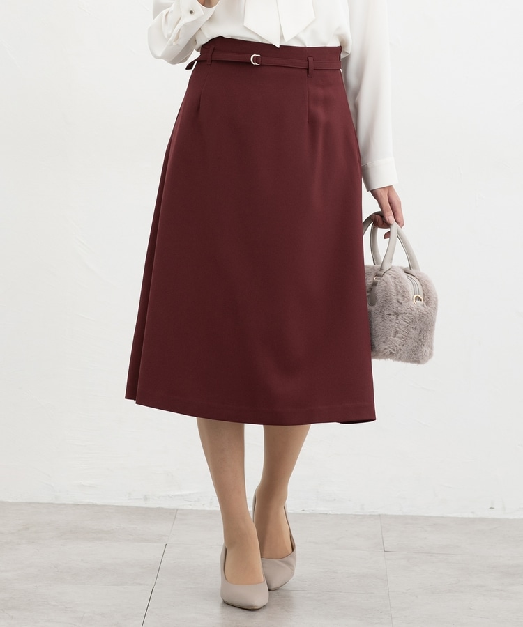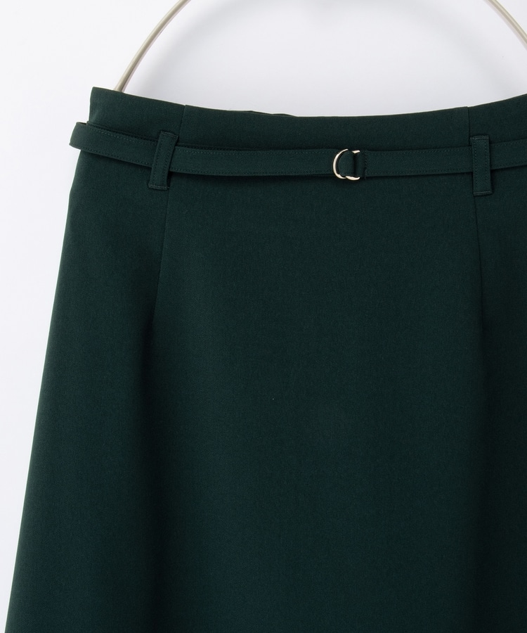 コーディネートのアクセントにもなる、ゴールドバックルの共布ベルト付き。