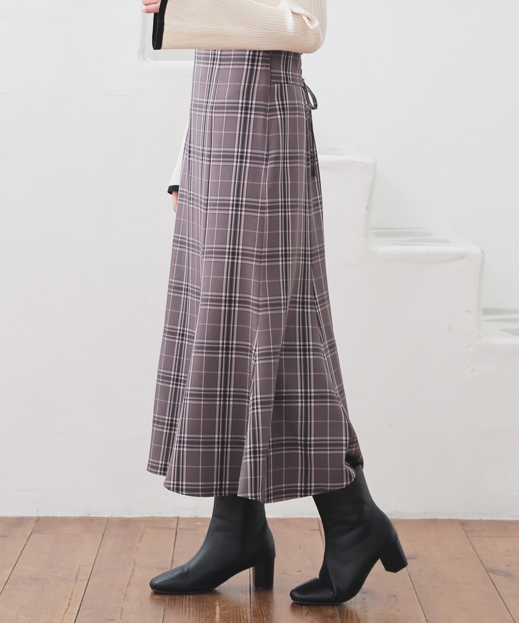サイドファスナーと後ろウエストゴムで着脱もはき心地も楽らく。