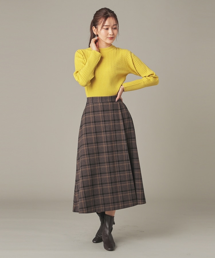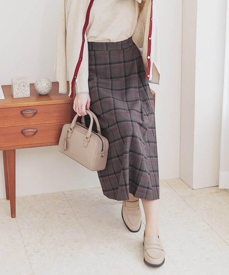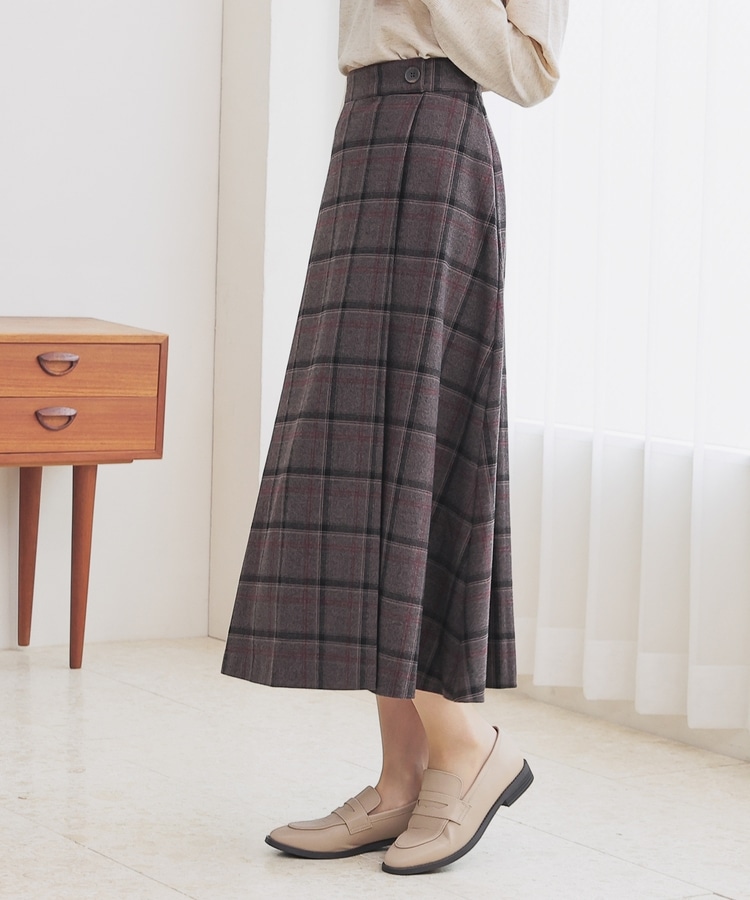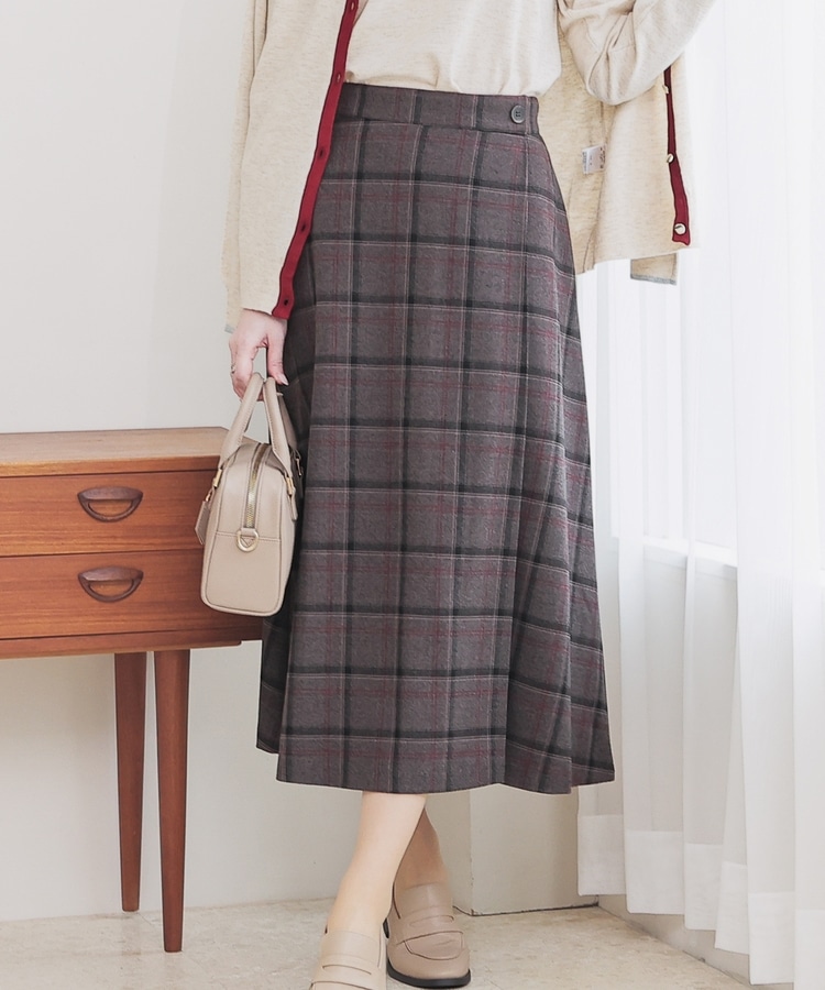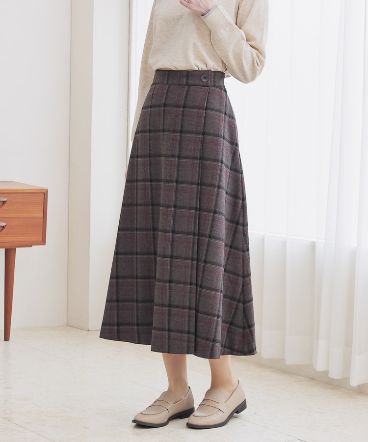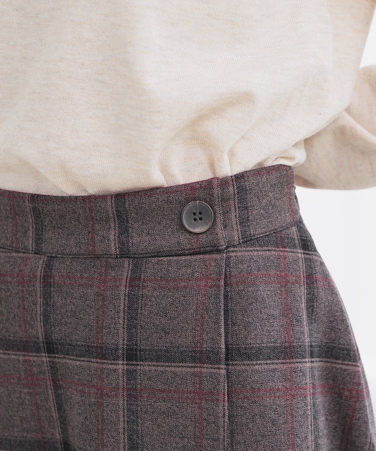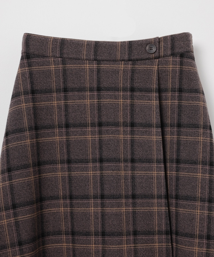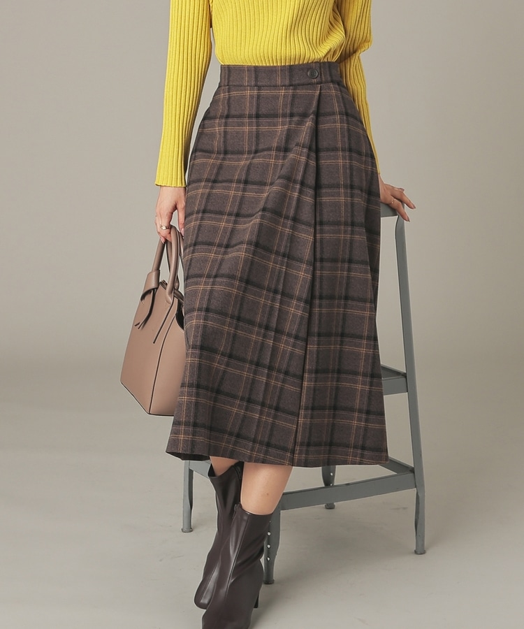 程よく広がるフレアシルエットが上品な、巻きスカート風デザイン。