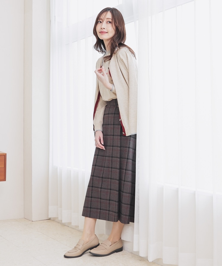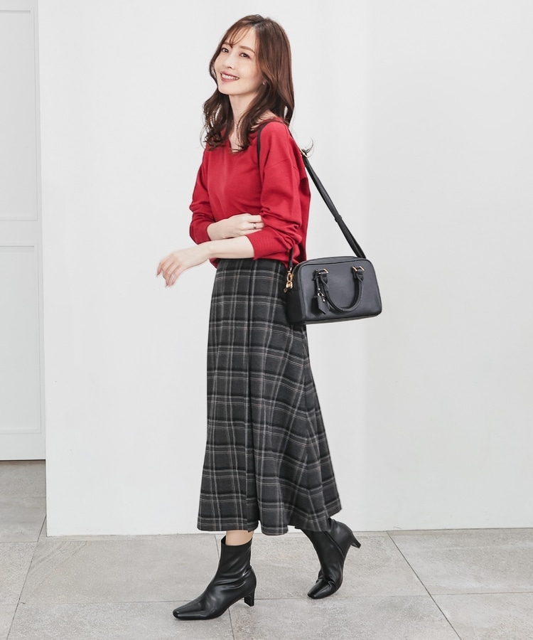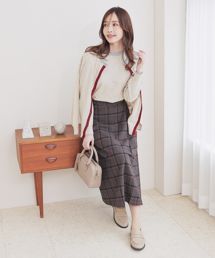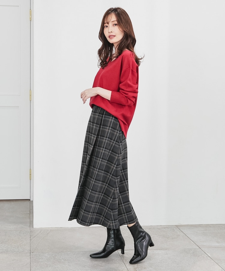 ブラウスと合わせたきれいめオフィススタイルから、コンパクトTシャツと合わせた大人カジュアルまで幅広く活躍。