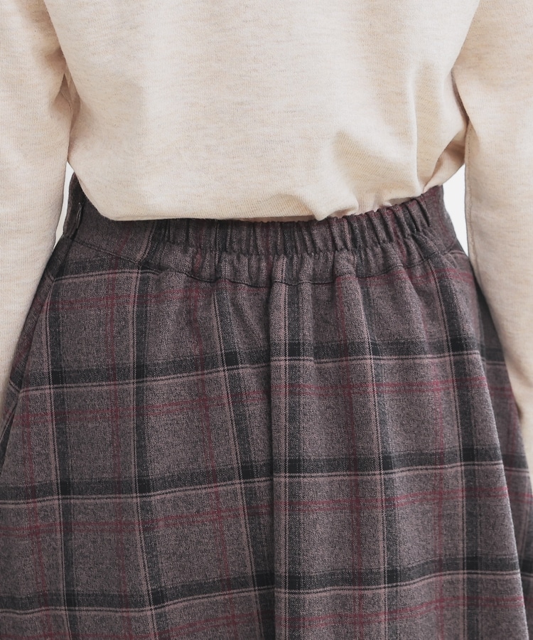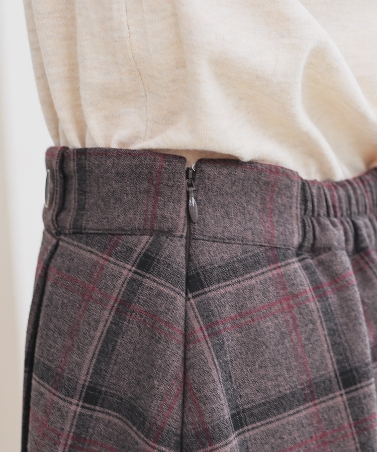 左サイドのファスナーと後ろウエストゴムで、着脱もしやすくストレスフリーなはき心地。