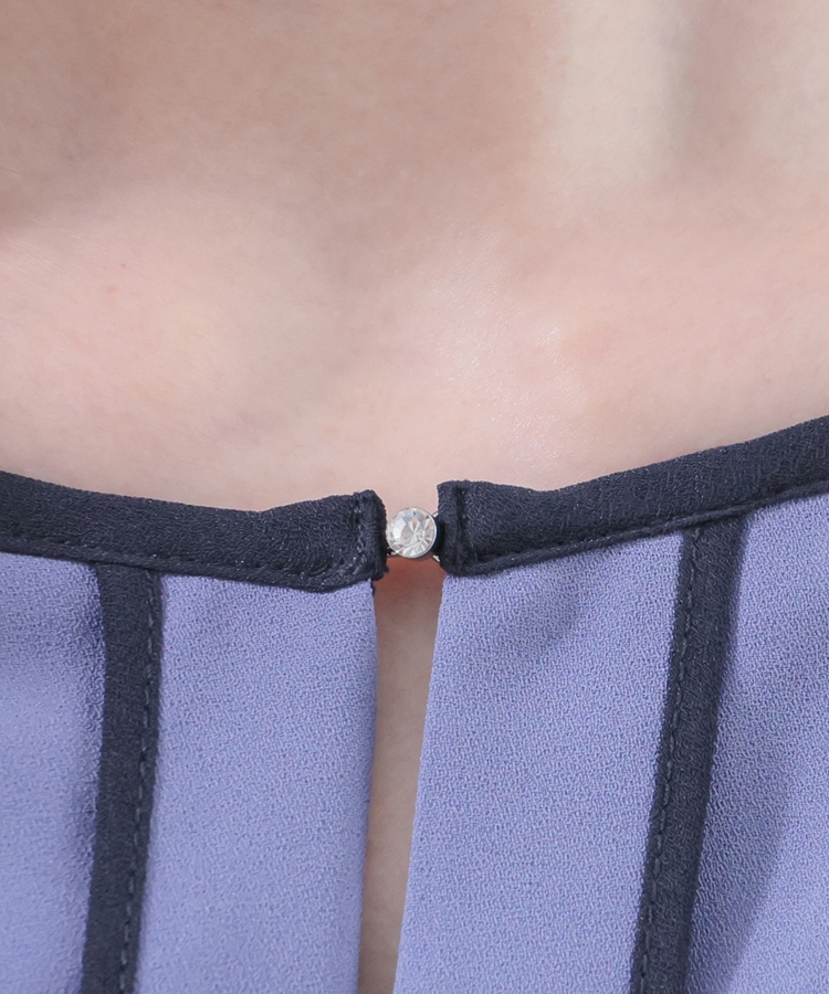 さりげなく華やかなアクセントになる、衿元のラインストーン付きホックで、着脱も楽らく。