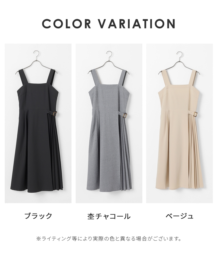 動くたびにふんわり揺れるサイドプリーツがフェミニンなデザイン。