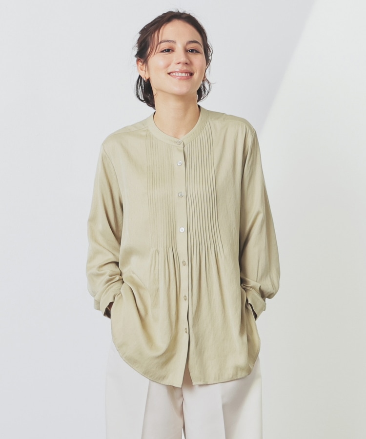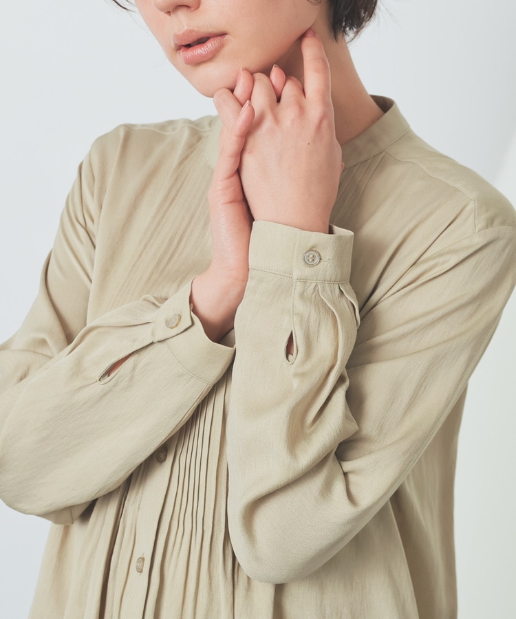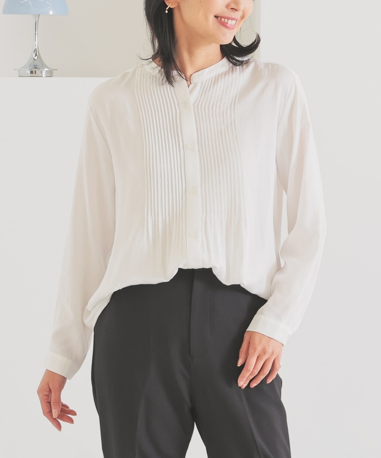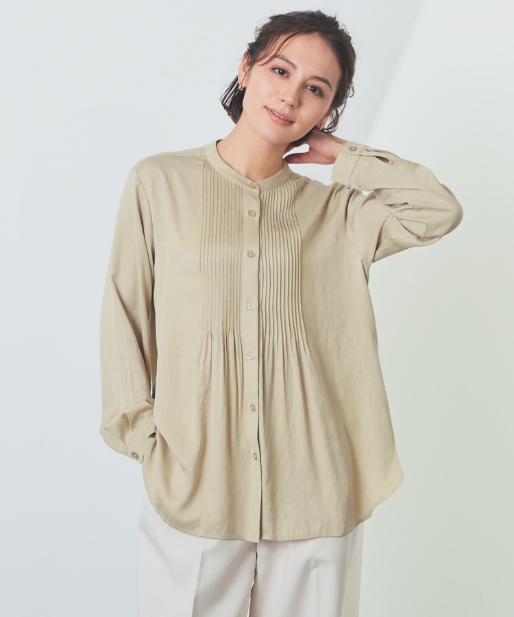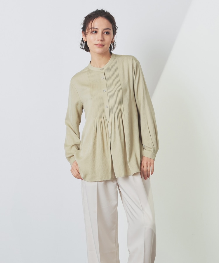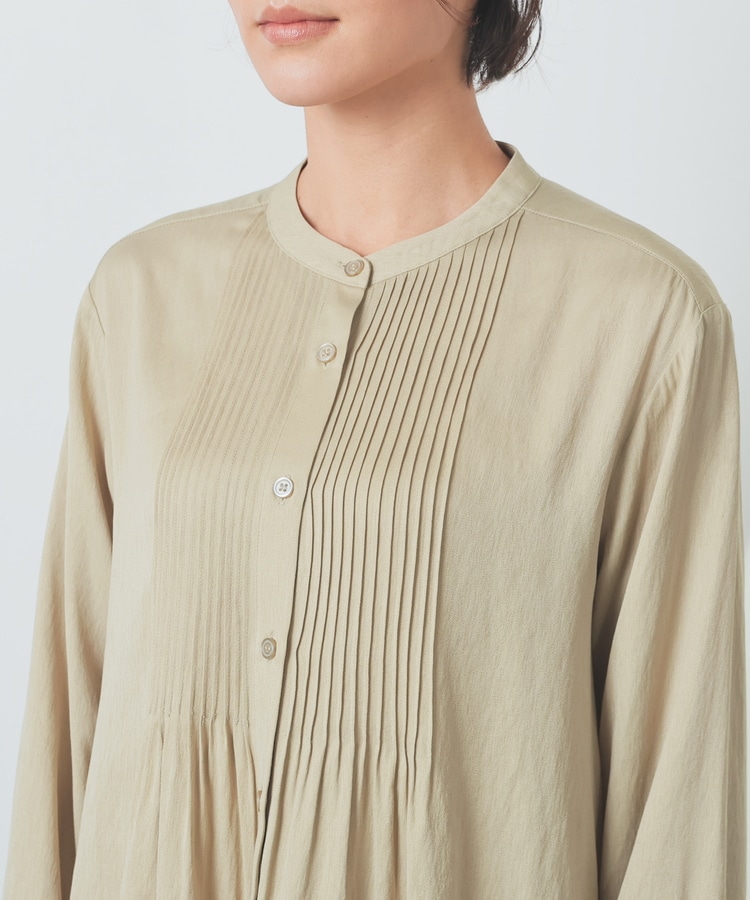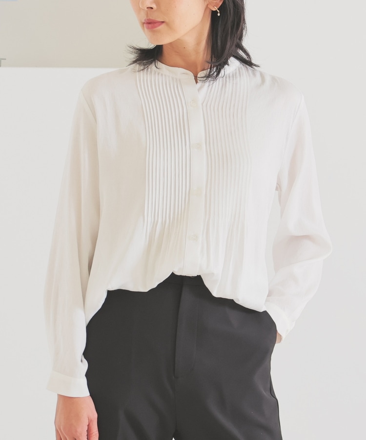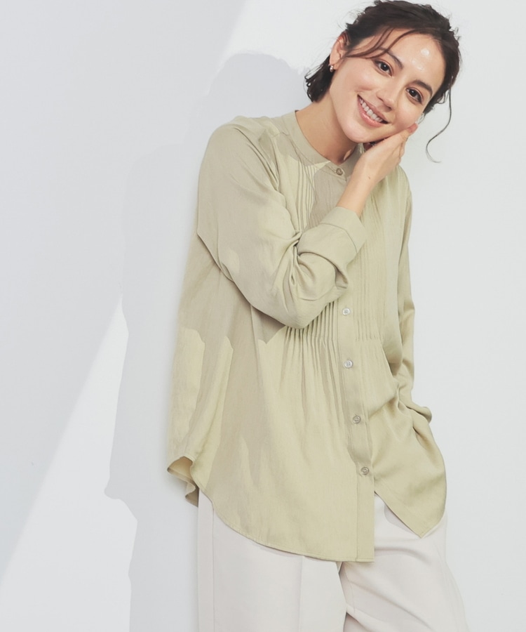 フロントのピンタックがフェミニンで華やかなデザイン。