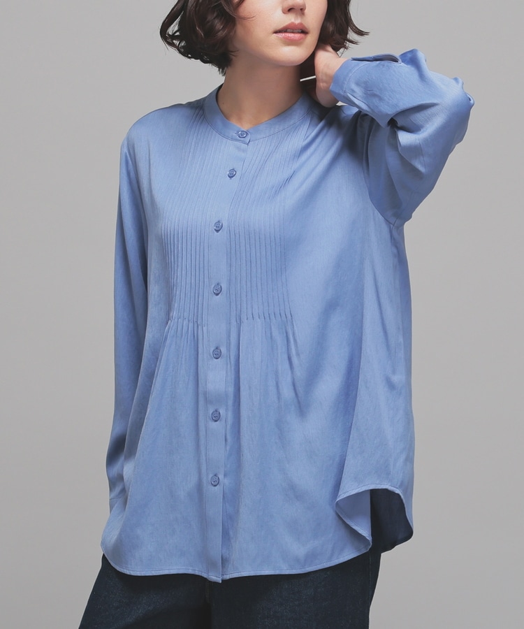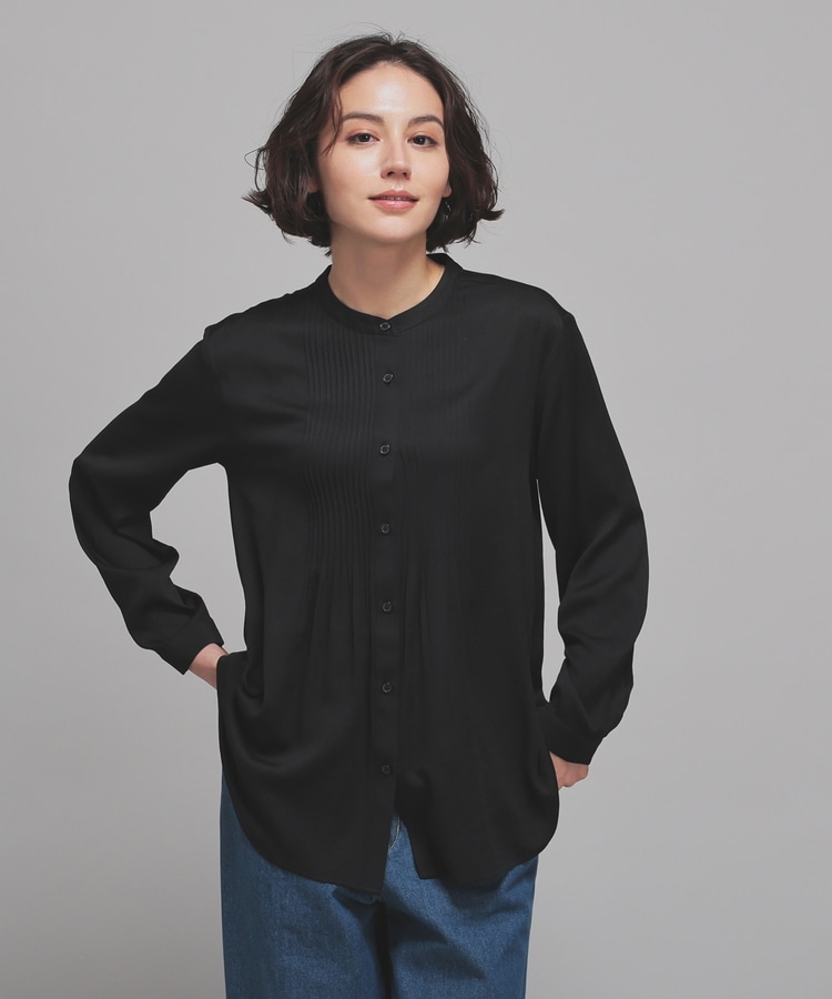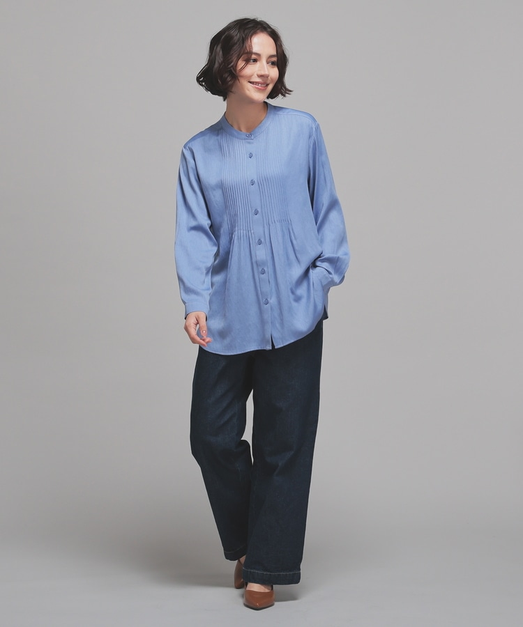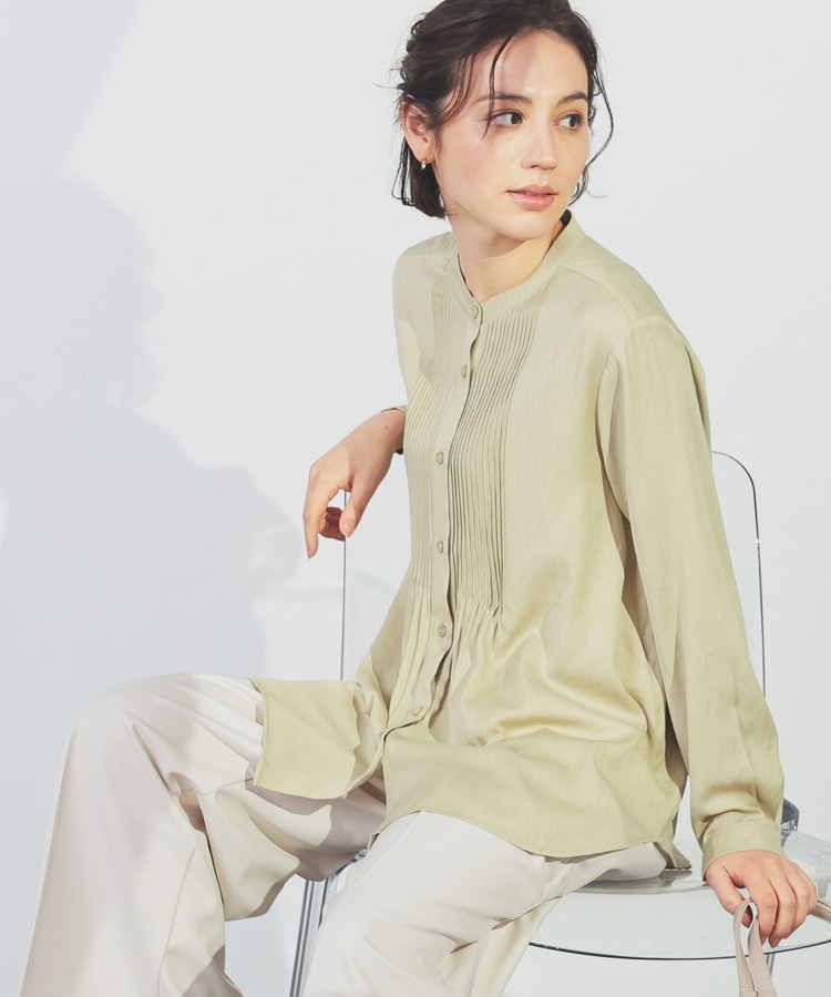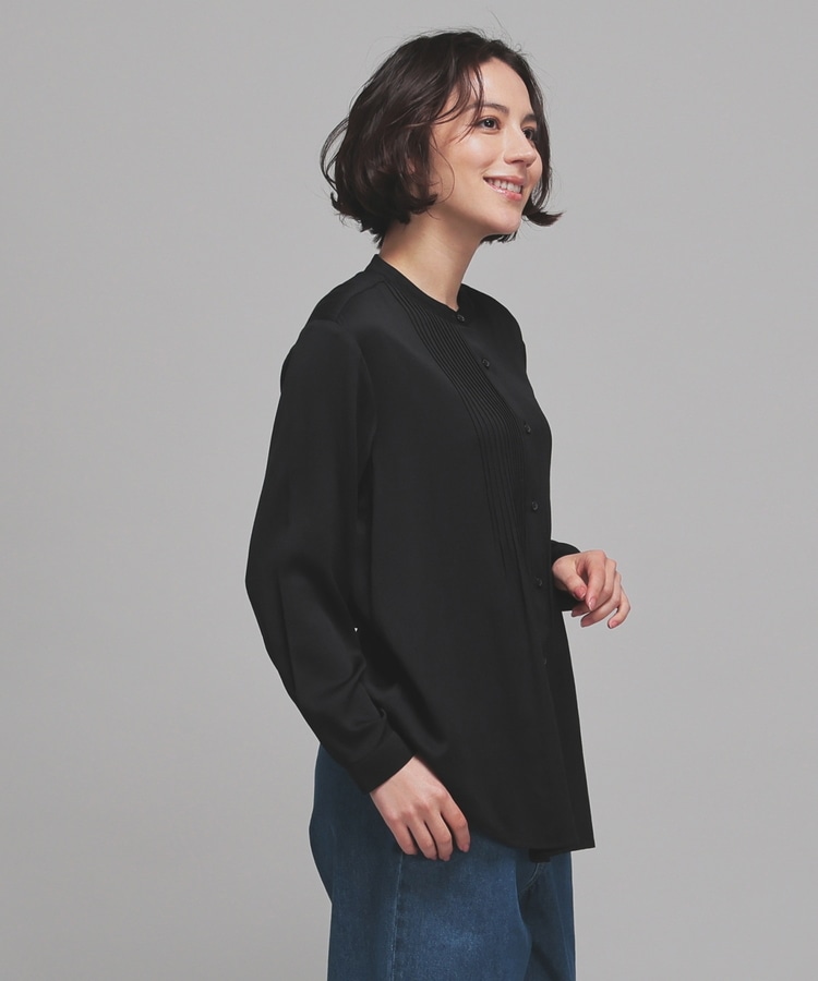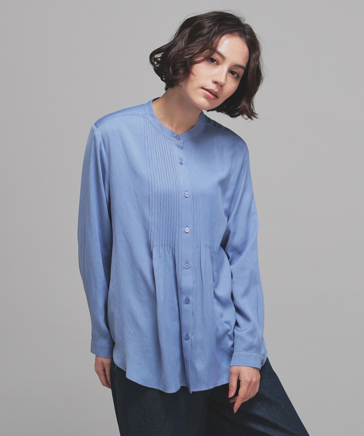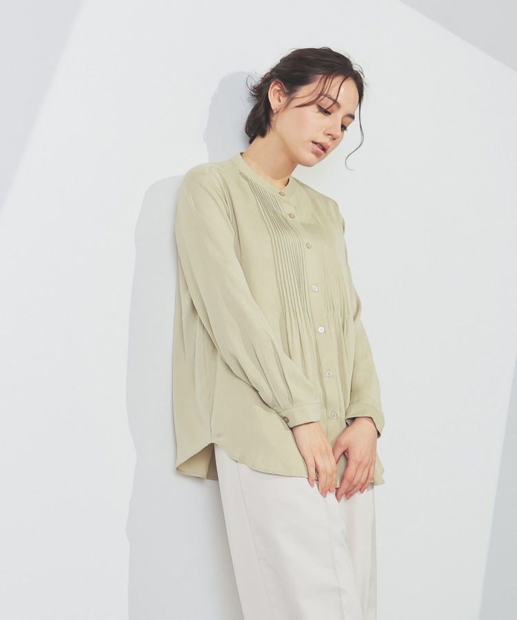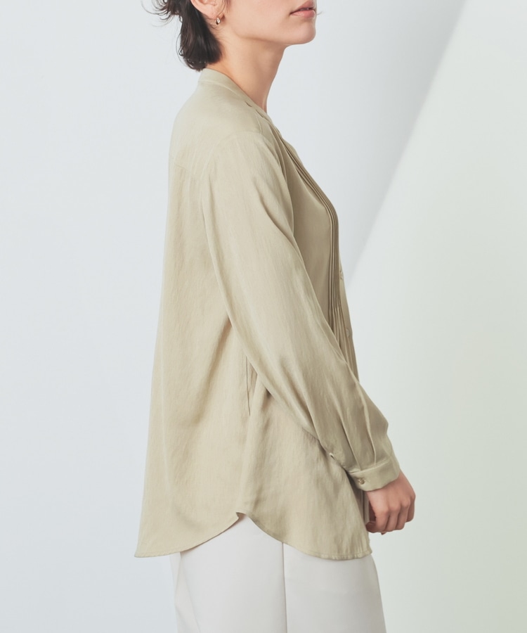 フロントのピンタックがフェミニンで華やかなデザイン。