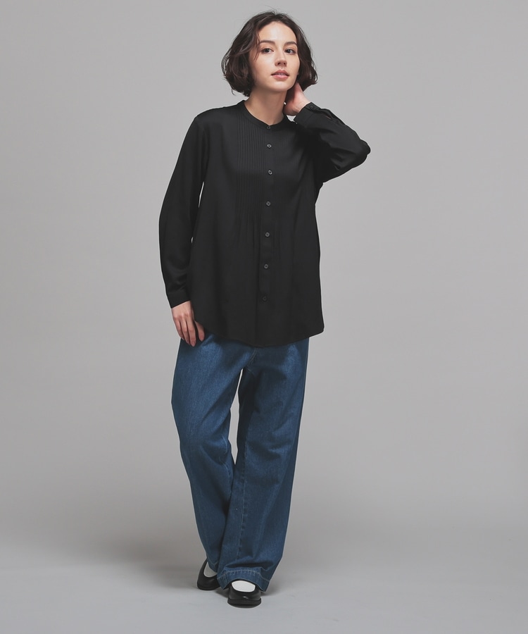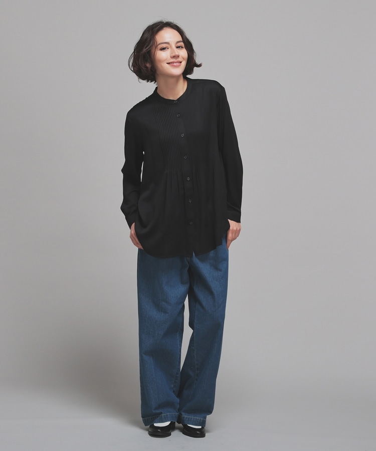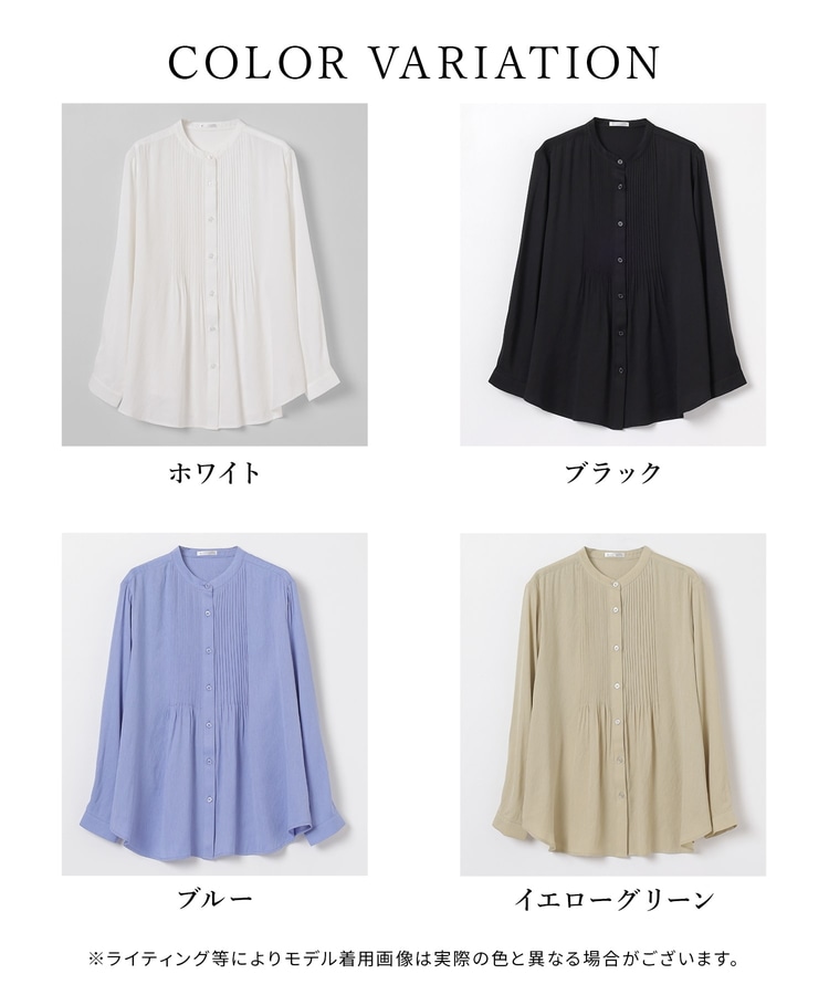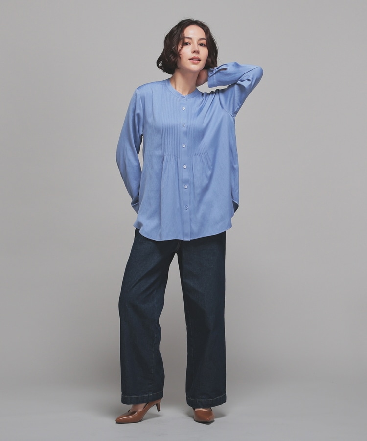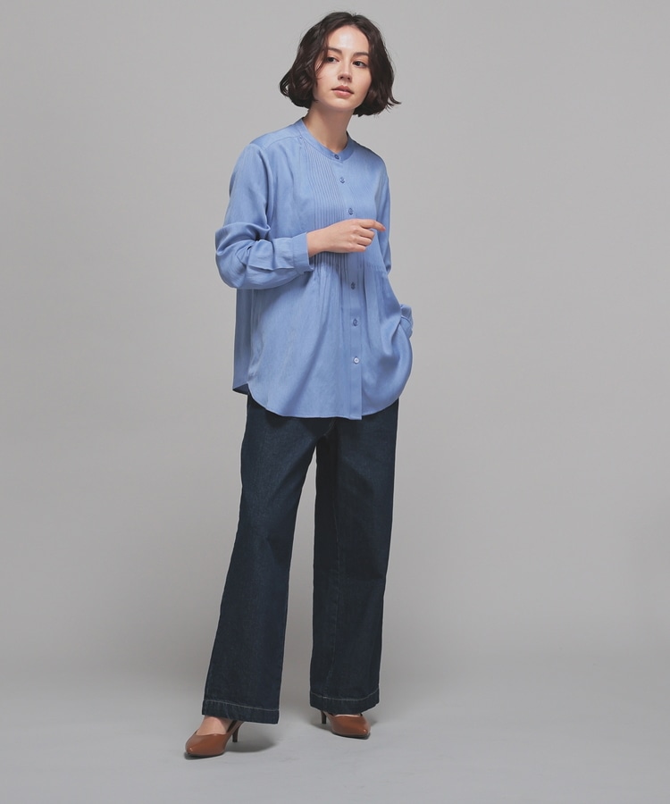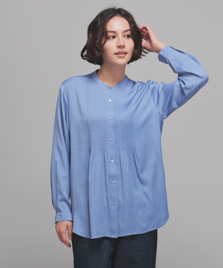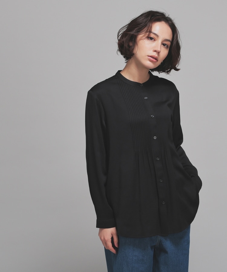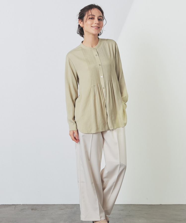 フロントのピンタックがフェミニンで華やかなデザイン。