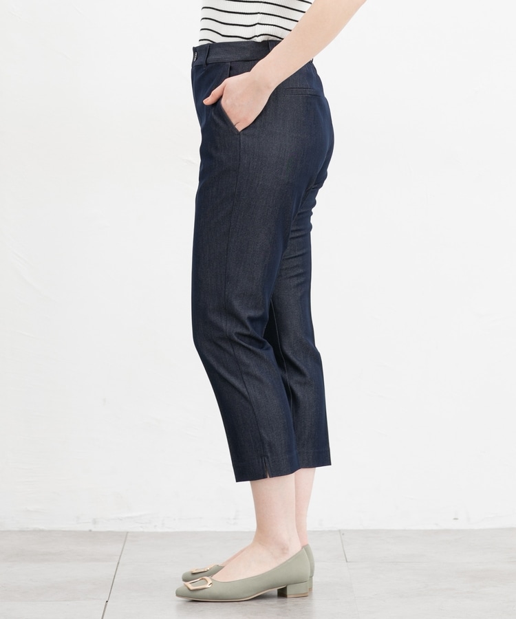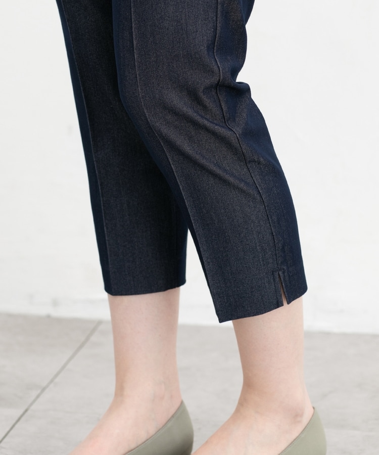 足首がすっきり見えるクロップド丈とサイドスリットで抜け感たっぷり。
