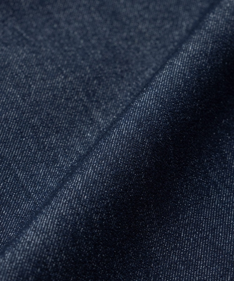 デニムに見えてデニムよりしなやかで軽やかな、レーヨン混ツイル素材。