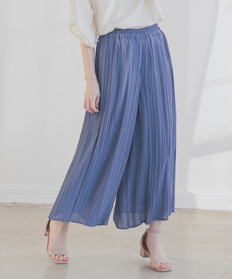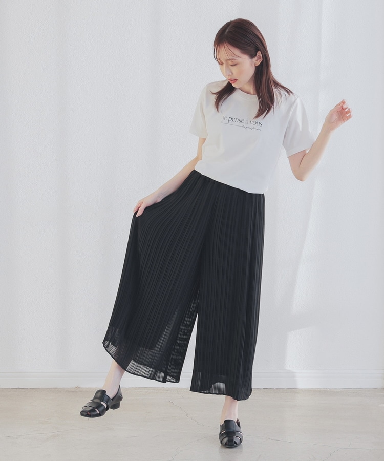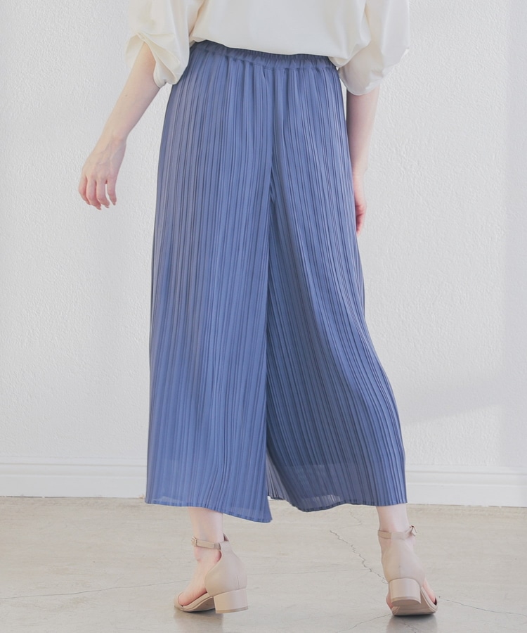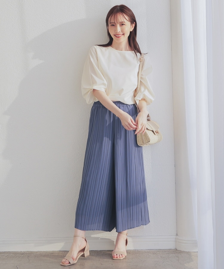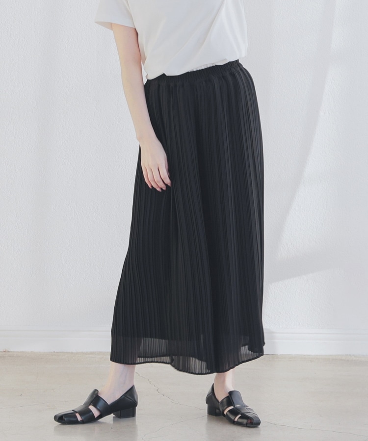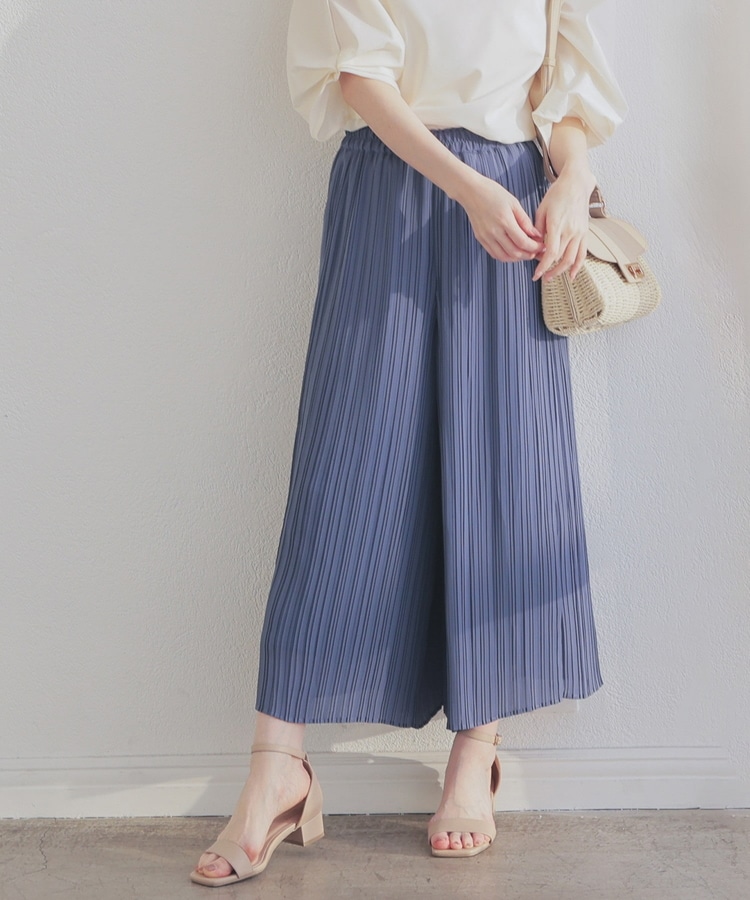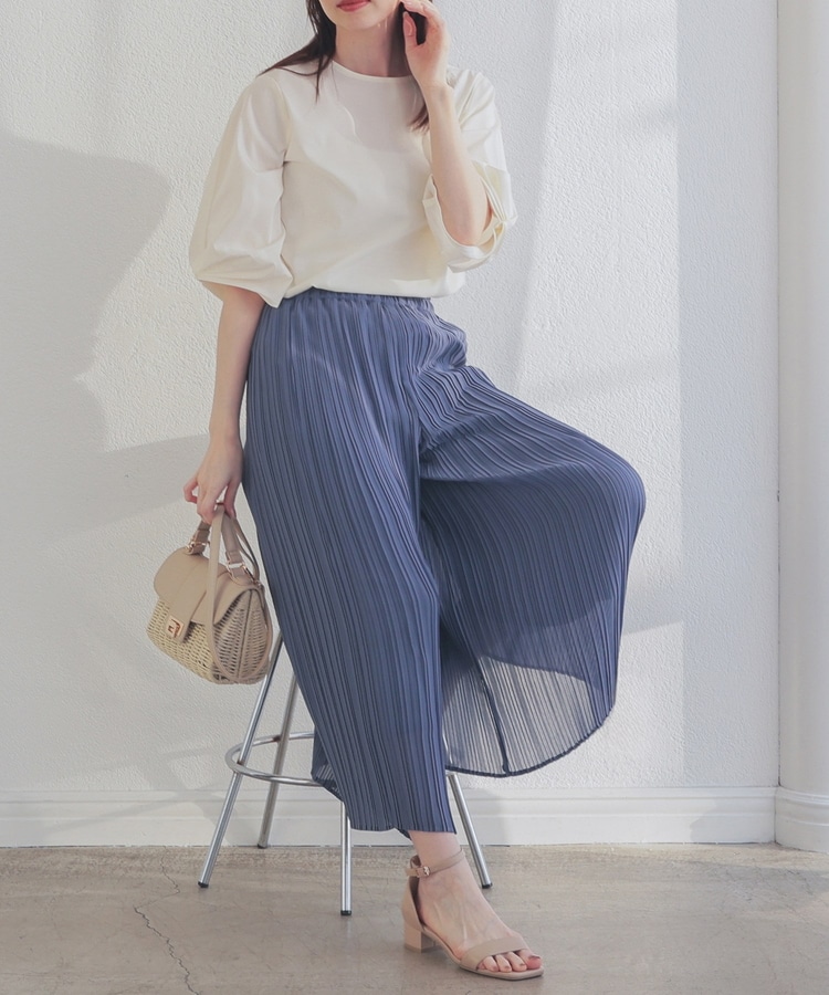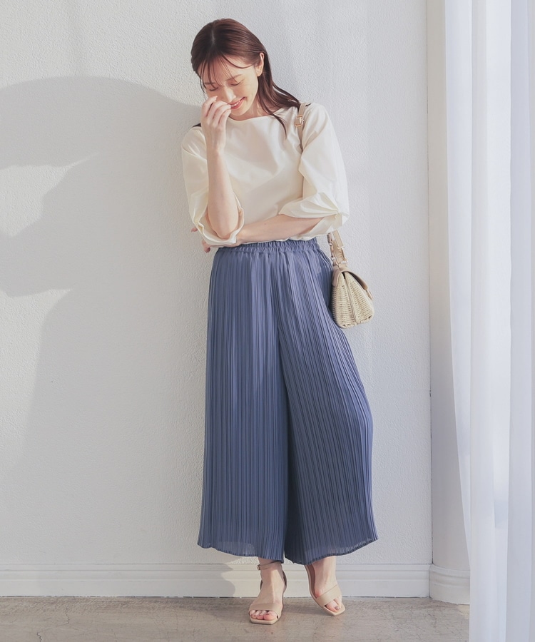 上品なプリーツのふわっと揺れるシルエットで、スカート見えするフェミニンなデザイン。