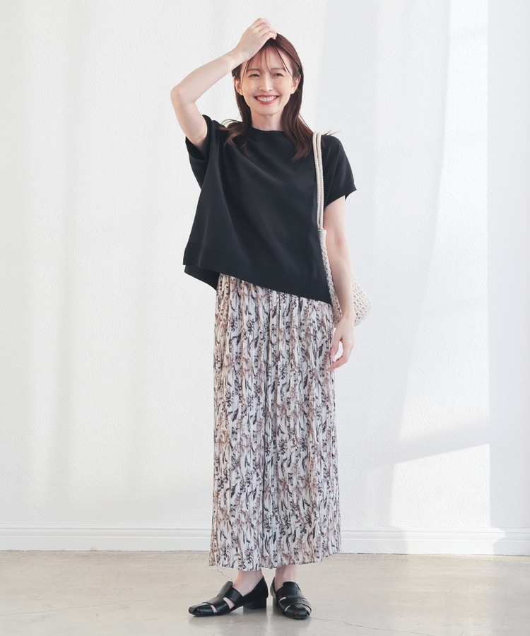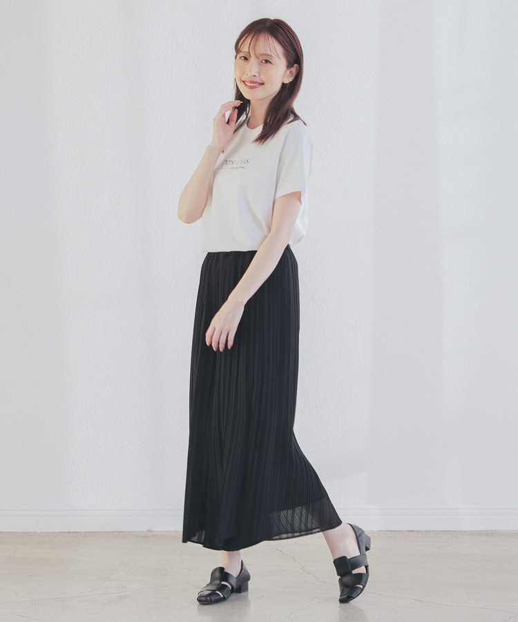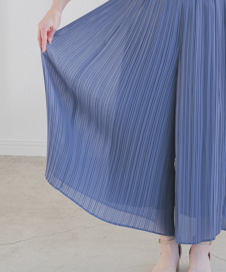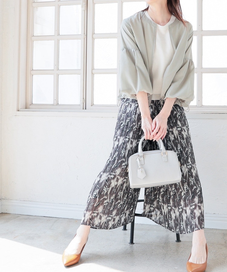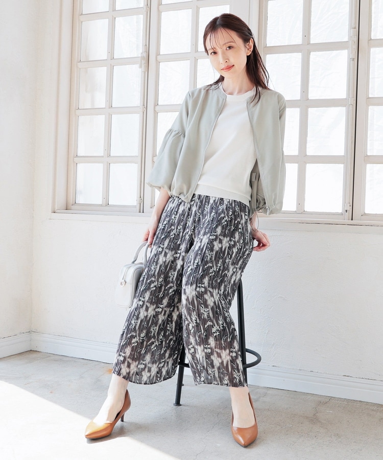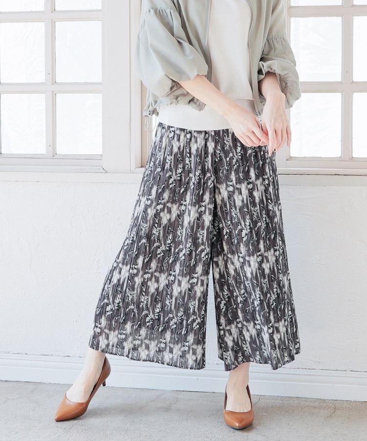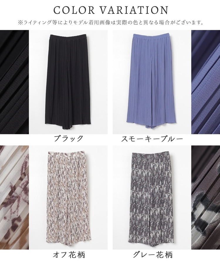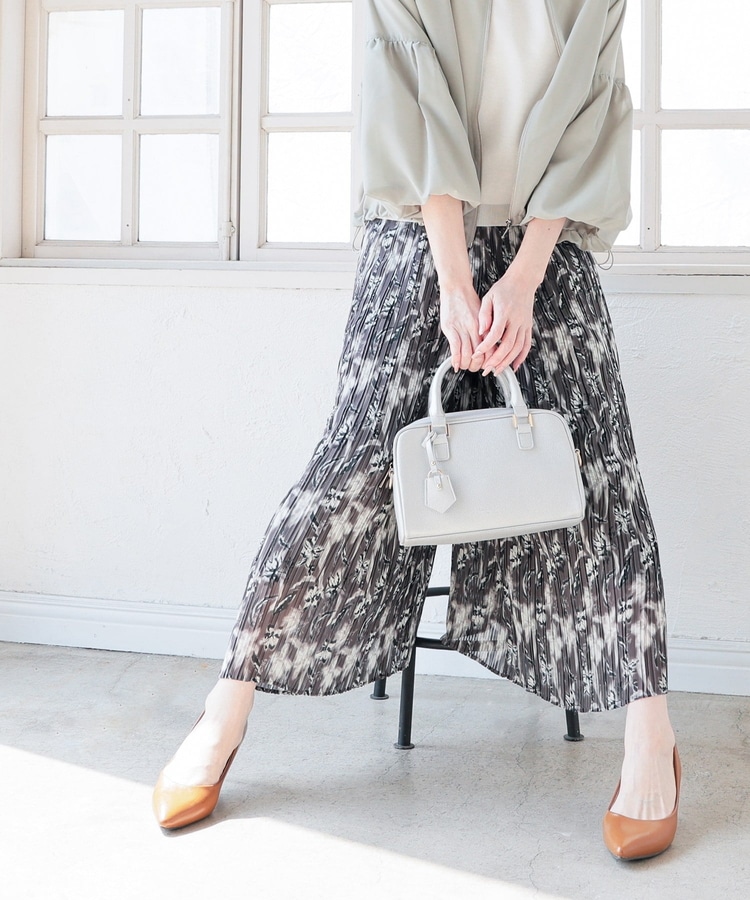 上品なプリーツのふわっと揺れるシルエットで、スカート見えするフェミニンなデザイン。