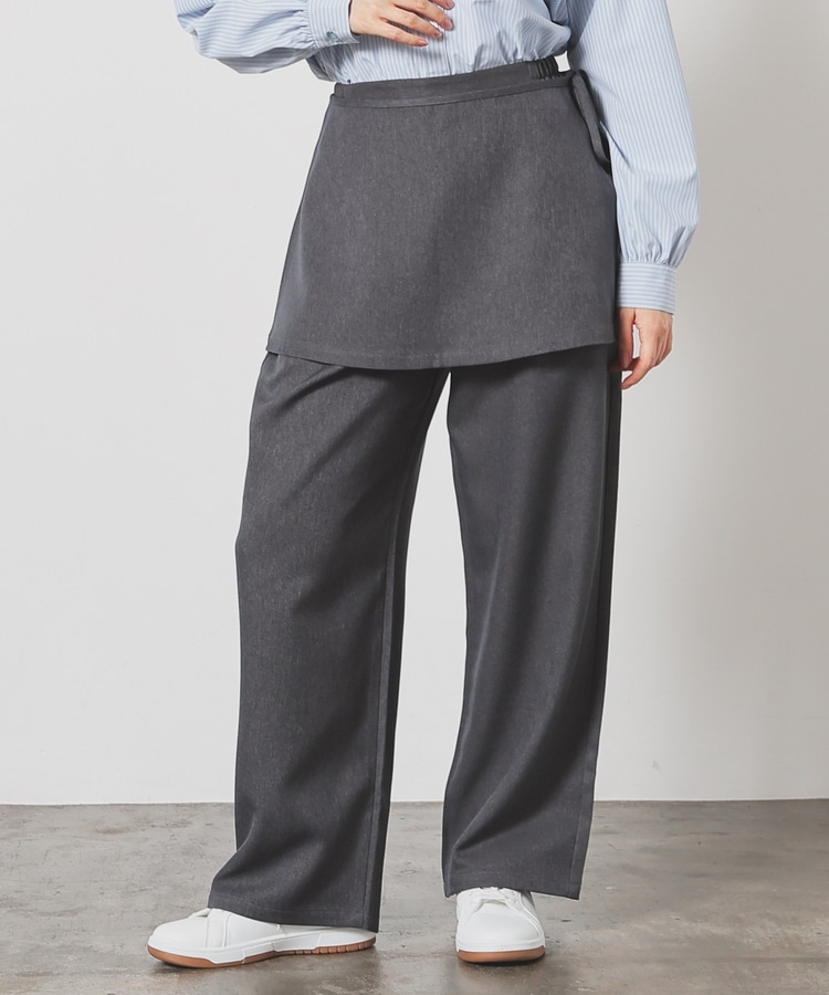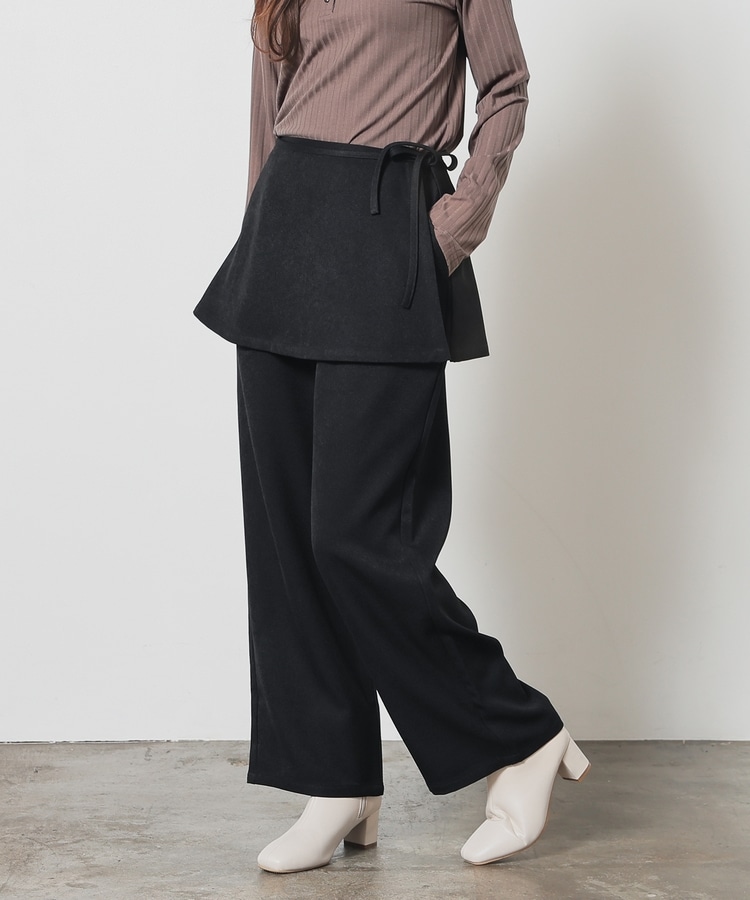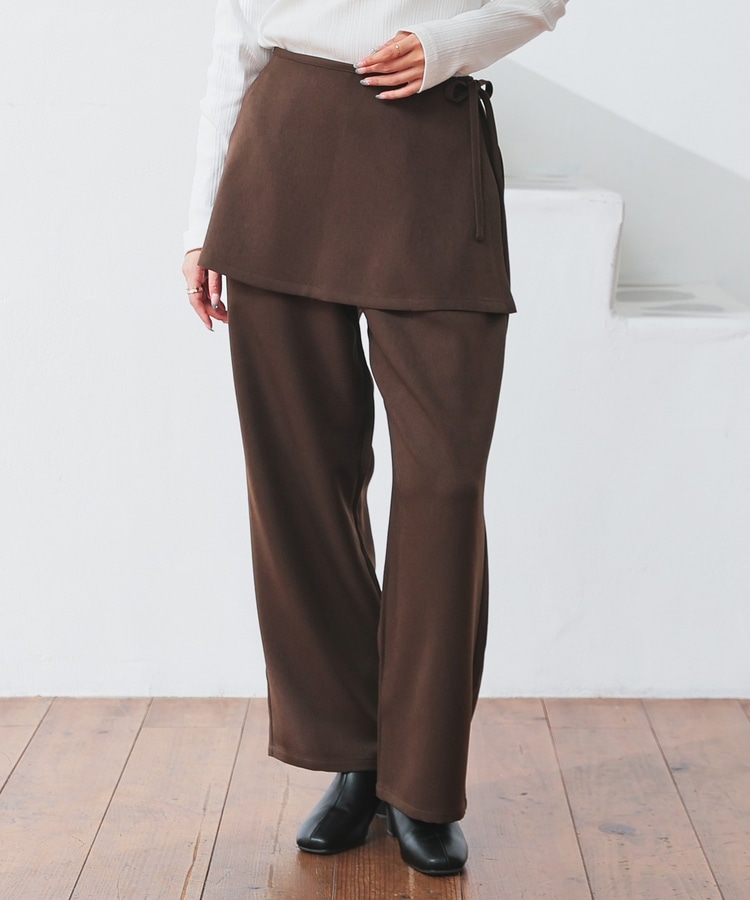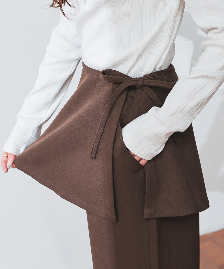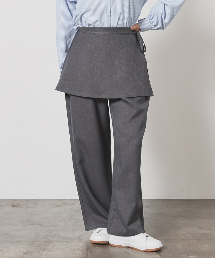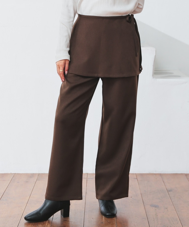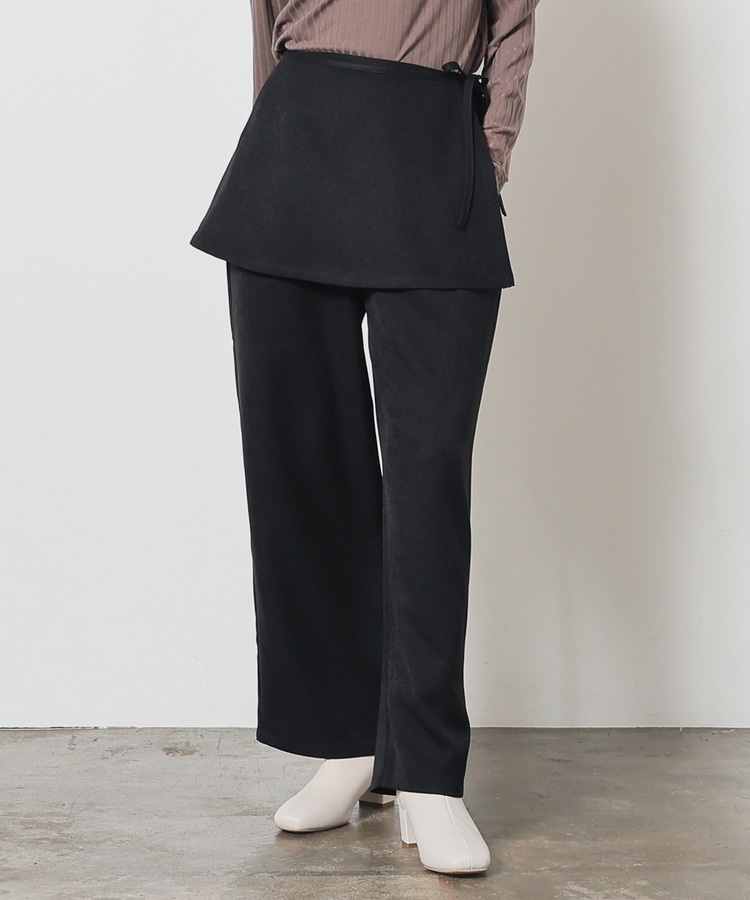 ストンとしたきれいなストレートシルエットのパンツに巻きスカートが付いたトレンドライクなデザイン。