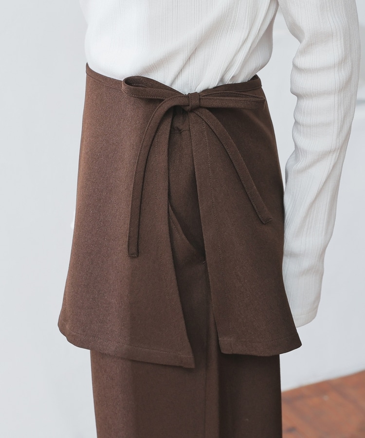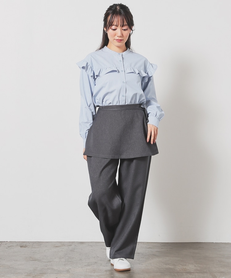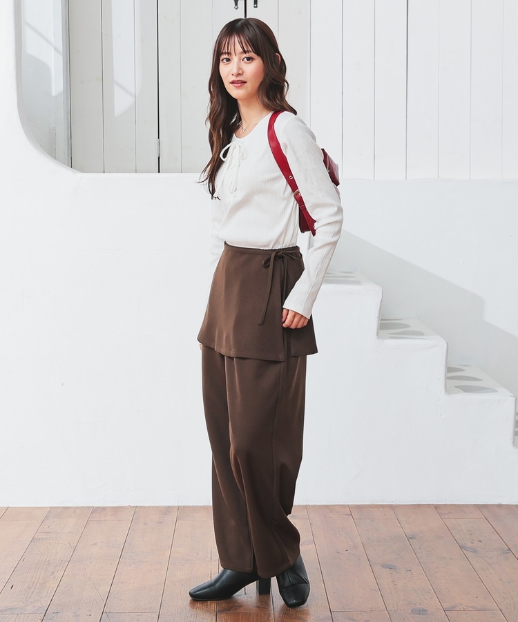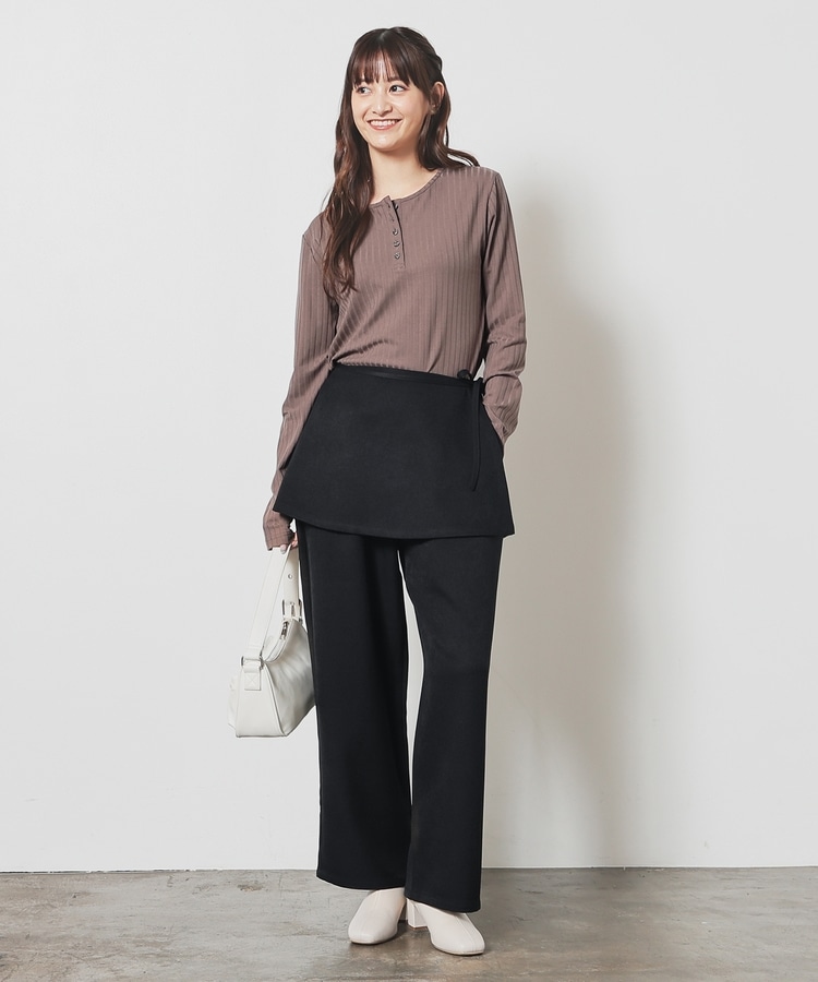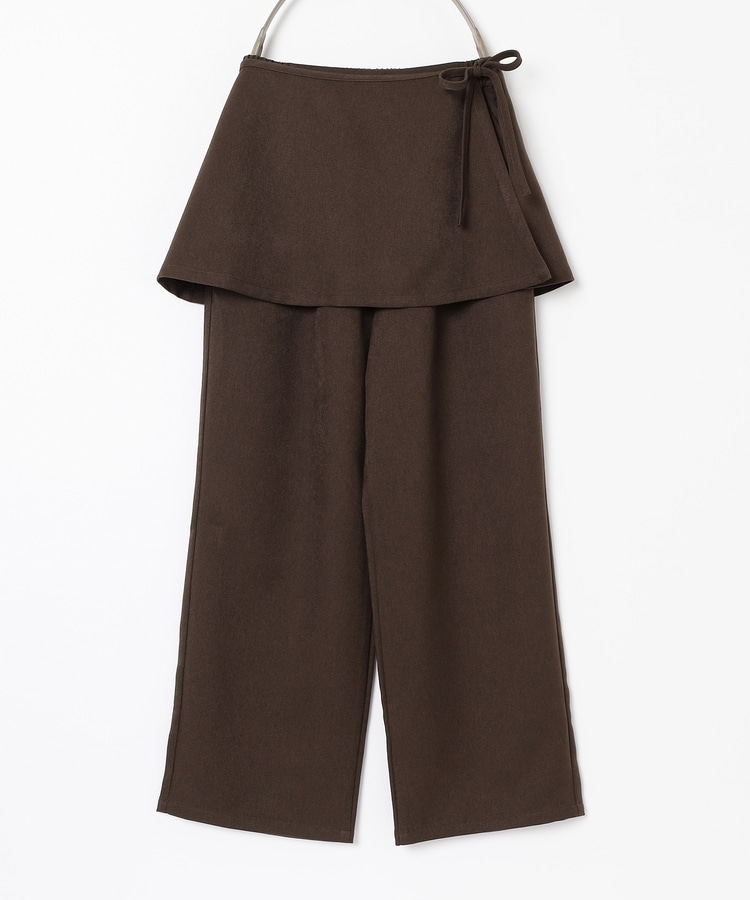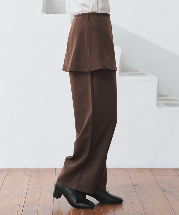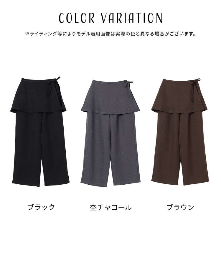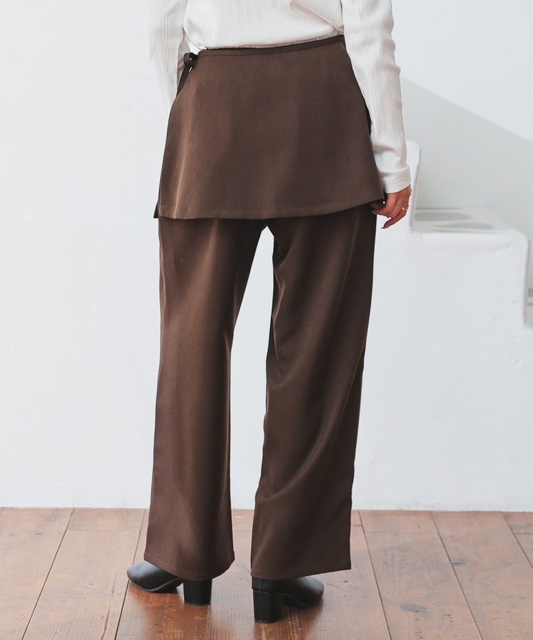 ストンとしたきれいなストレートシルエットのパンツに巻きスカートが付いたトレンドライクなデザイン。