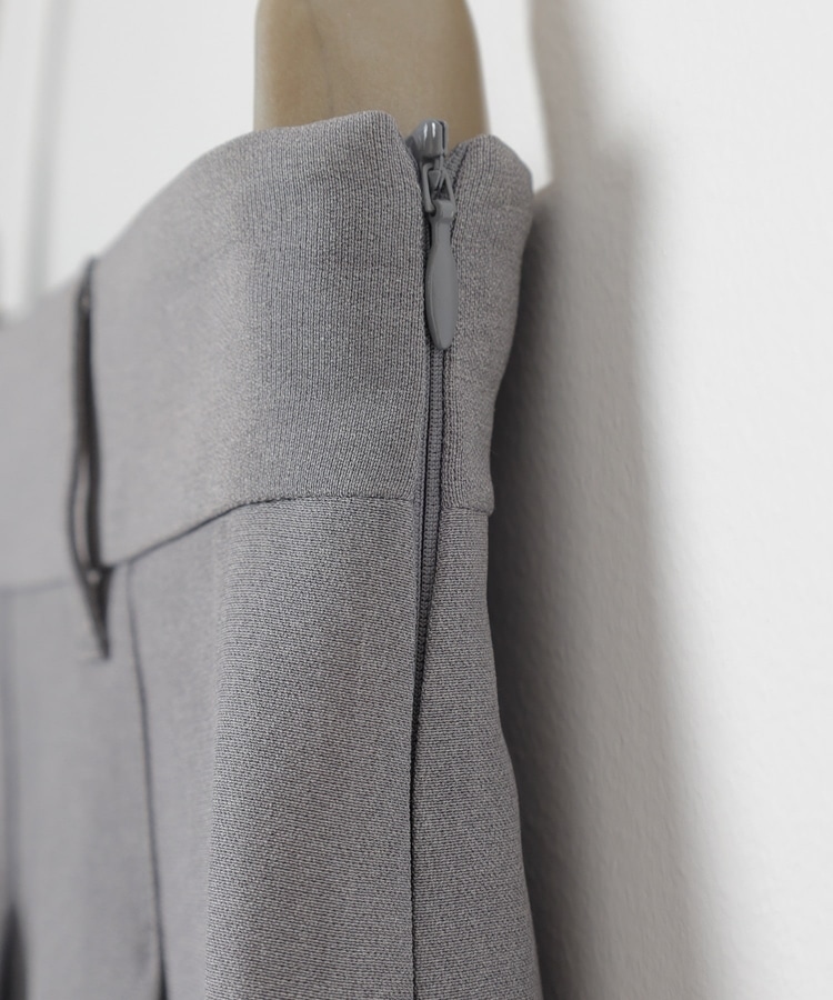 ステッチでボリュームを抑えた腰回りから、裾に向かってきれいに広がるシルエットで美脚効果抜群のデザイン。