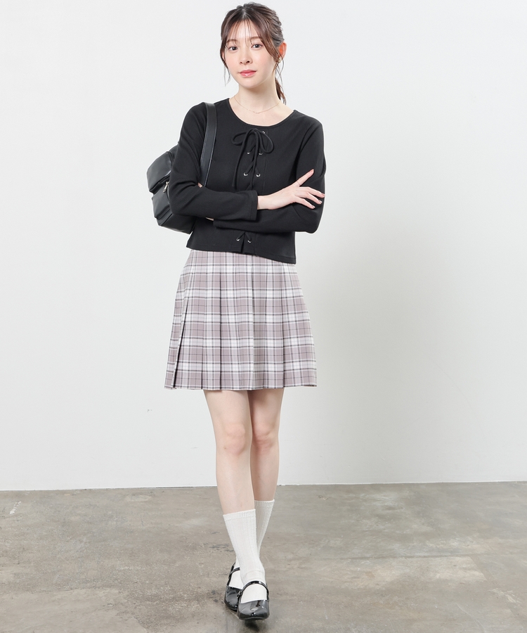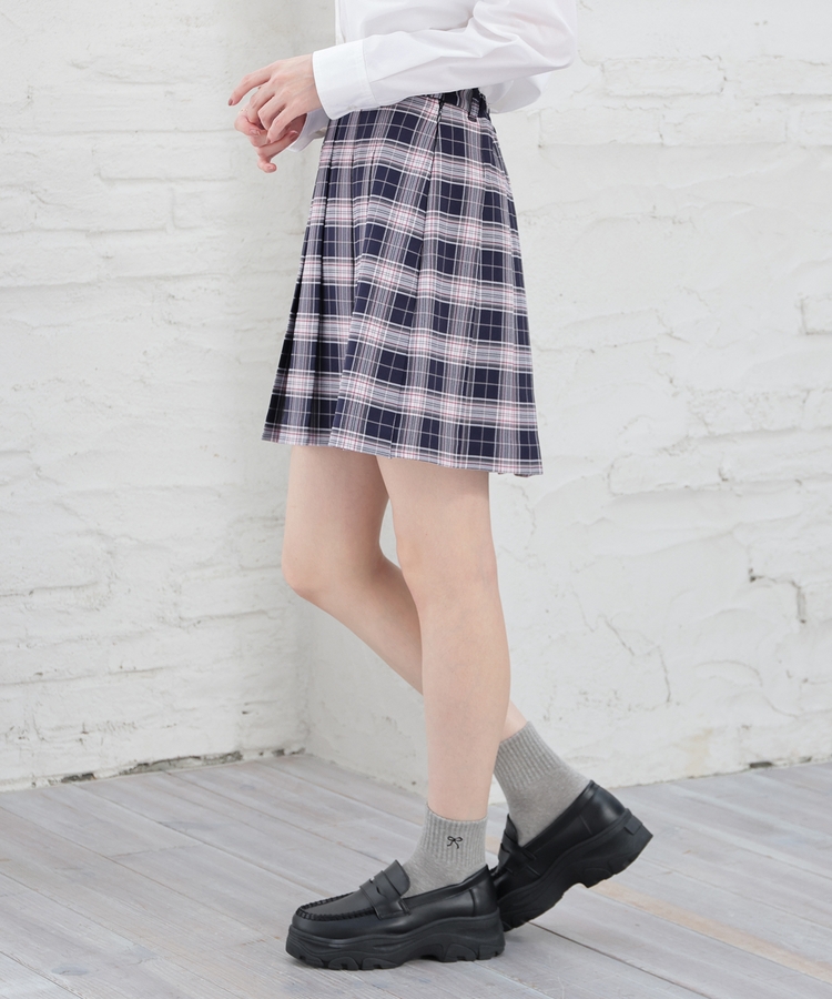 シャツとカーデに合わせてスクール風にも、スウェットやコンパクトトップス合わせで韓国ガーリーにも、ジャンルを問わず幅広いスタイルに大活躍。