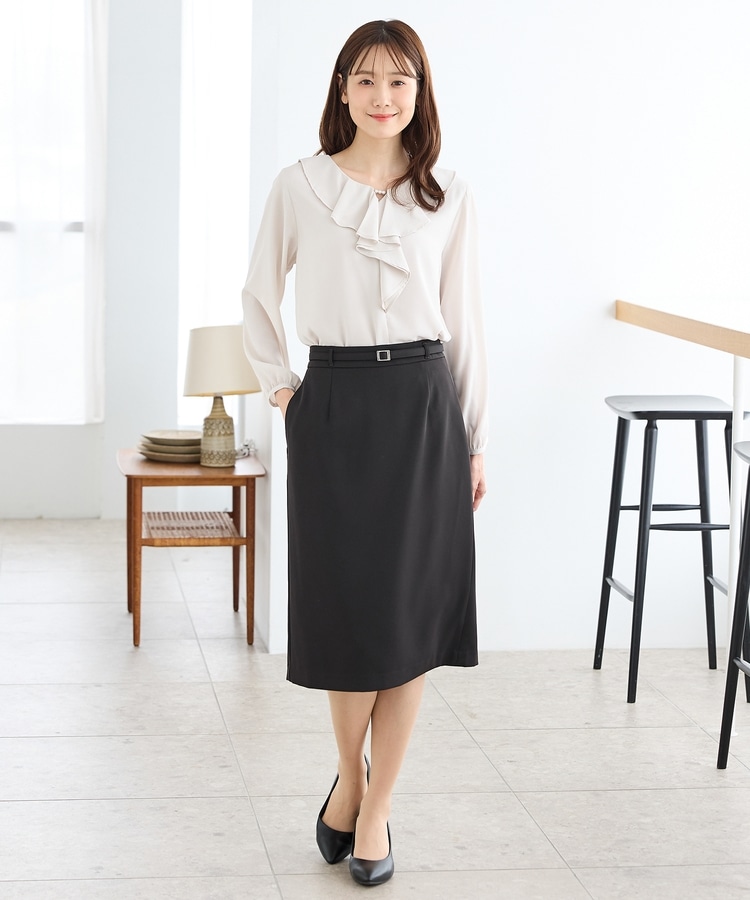 ブラウスやコンパクトトップスはもちろん、ニットカーデなどとも相性抜群。