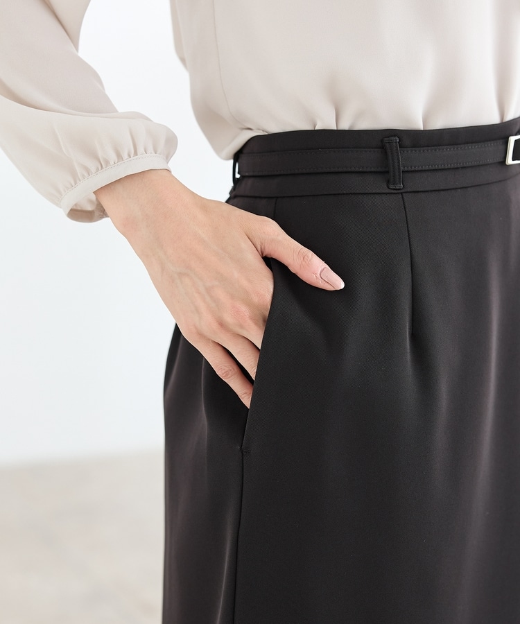 さりげないアクセントになる、シルバーバックルのベルト付き。