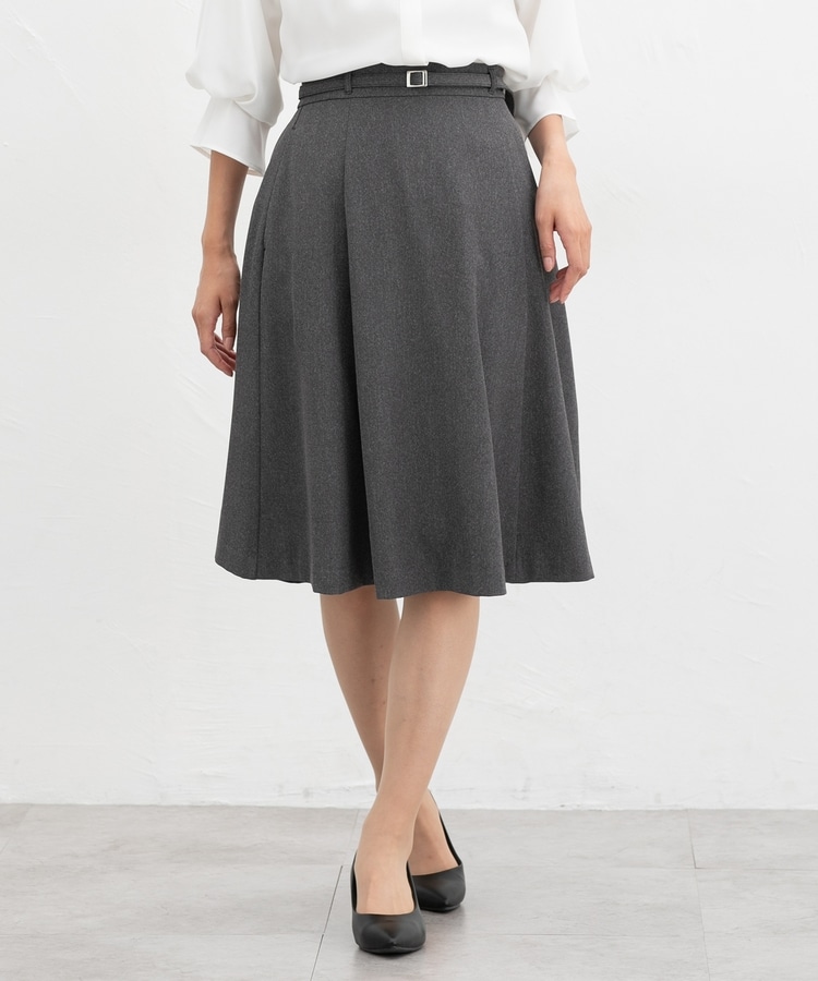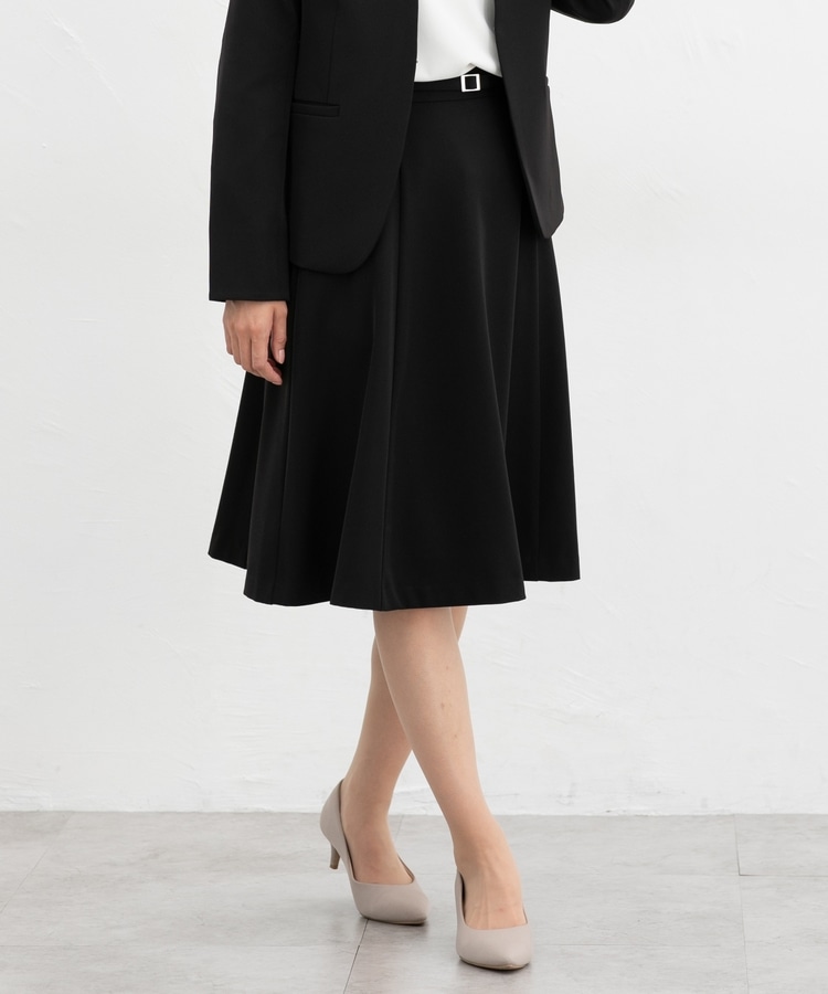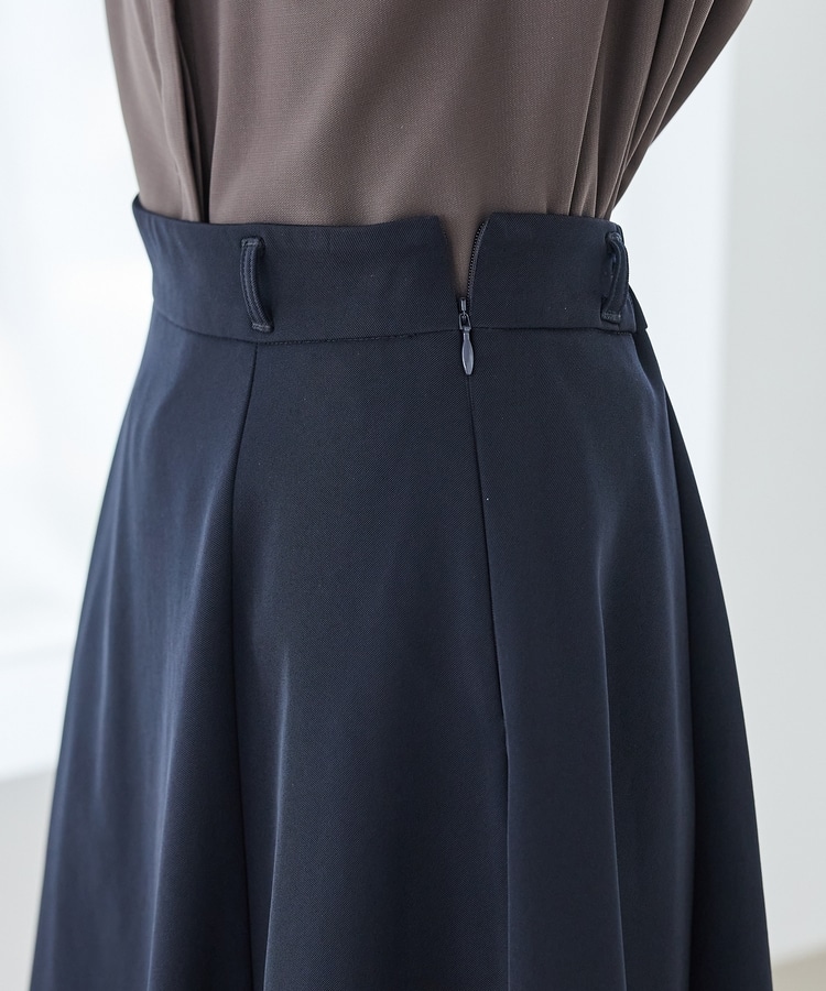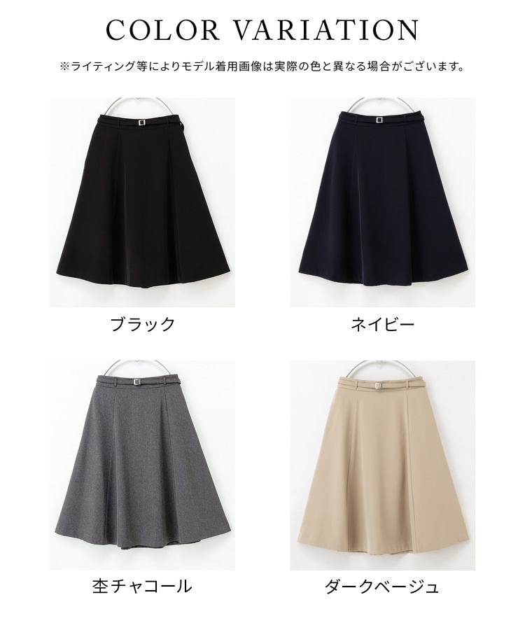 広がりすぎないフレアのきれい見えシルエット、64cm丈タイプ。